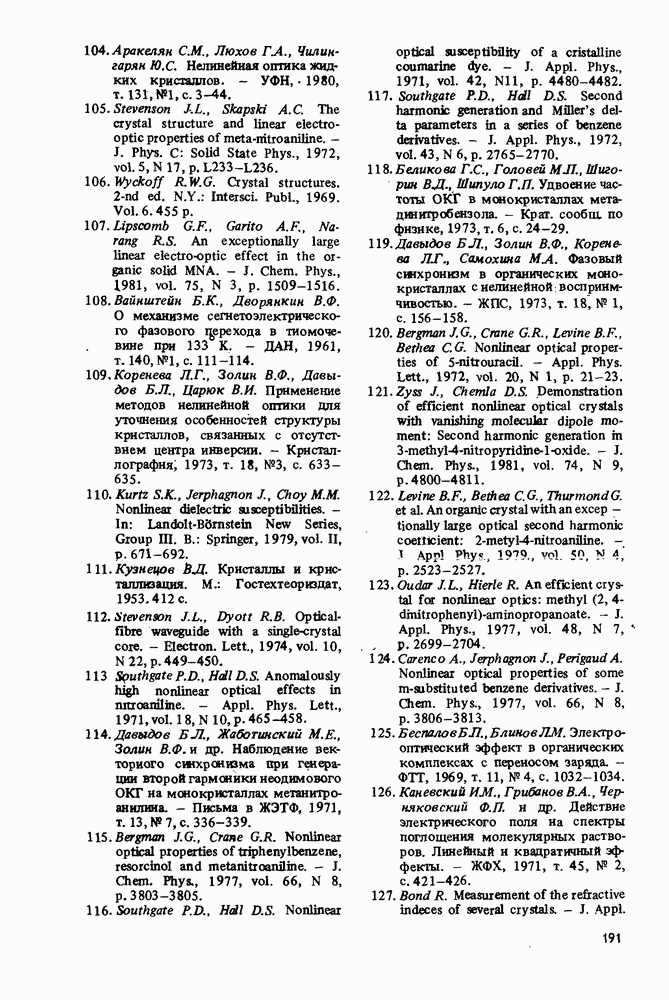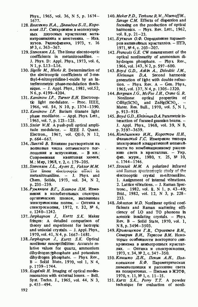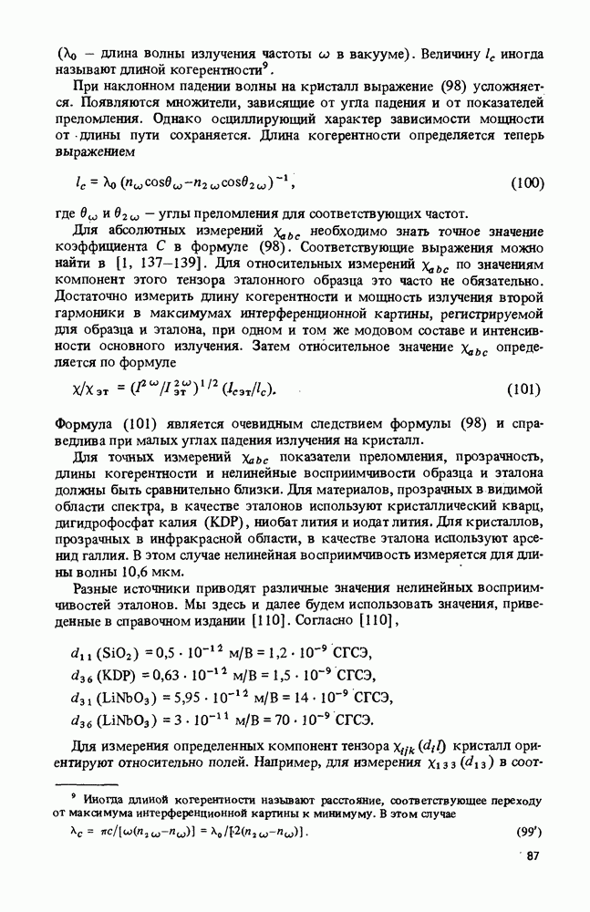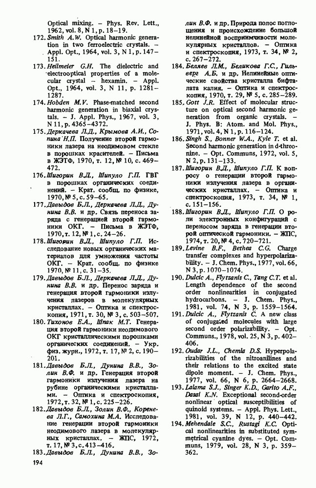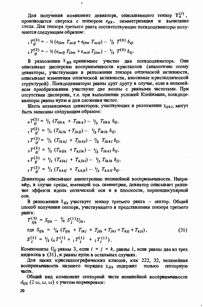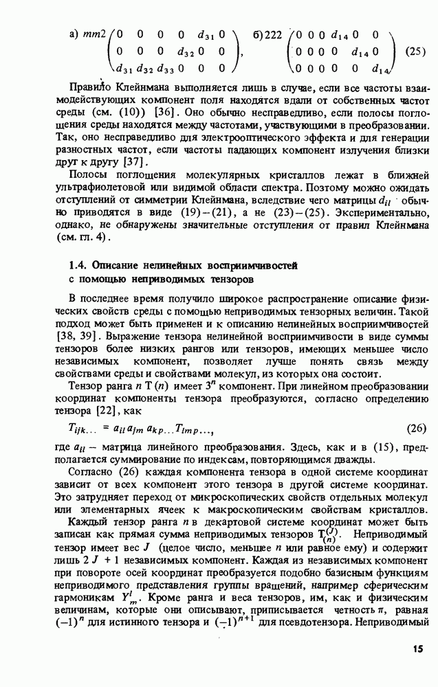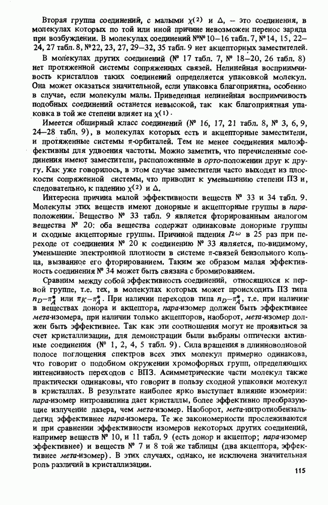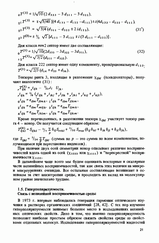 5.2. Векторный синхронизм в молекулярных кристаллахПеред тем как перейти к рассмотрению случаев выполнений условий коллинеарного синхронизма в конкретных молекулярных кристаллах, рассмотрим более общий случай синхронизма — векторный синхронизм. В случае векторного синхронизма векторы Векторный синхронизм изучен значительно меньше, чем коллинеарный. С одной стороны, направления векторного синхронизма гораздо более многочисленны, чем направления коллинеарного синхронизма, и их труднее изучать. С другой стороны, невозможно получить эффективное преобразование в режиме векторного синхронизма в кристаллах KDP и некоторых других хорошо изученных неорганических кристаллах. Последнее связано с тем, что взаимодействие основного и преобразованного излучения наблюдается лишь в области пересечения пучков, участвующих в преобразовании. Эта область определяется углом между к, и В случае молекулярных кристаллов ситуация иная. Многие Все вышеперечисленные соображения привели к тому, что векторный синхронизм в молекулярных кристаллах сравнительно часто исследуют и используют. Например, наблюдалось практически полное преобразование излучения неодимового лазера в его вторую гармонику на кристалле .мега-нитро анилина толщиной несколько миллиметров [227] при использовании режима векторного синхронизма. В режиме линейного синхронизма получили лишь 30%-ное преобразование (на кристаллах мета-нитро-анилина [228], метил-2,4-динитрофениламинопропаноата [123] и некоторых других). Рассмотрим способы расчета направлений векторного синхронизма. Выражение (2) можно переписать в виде [229]