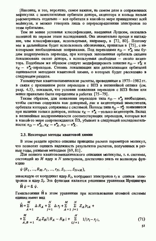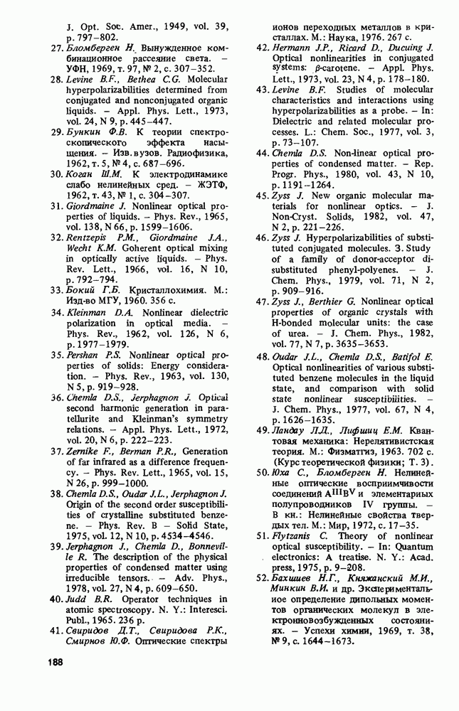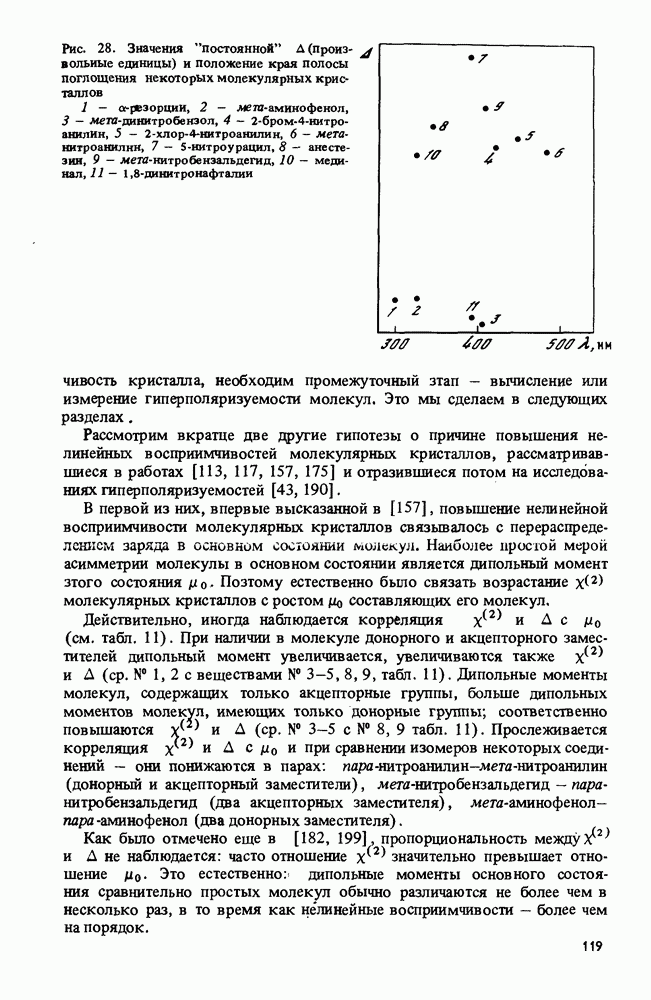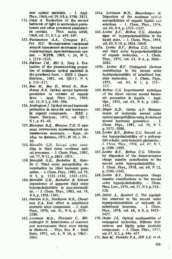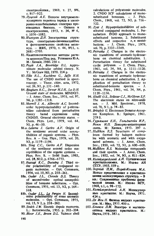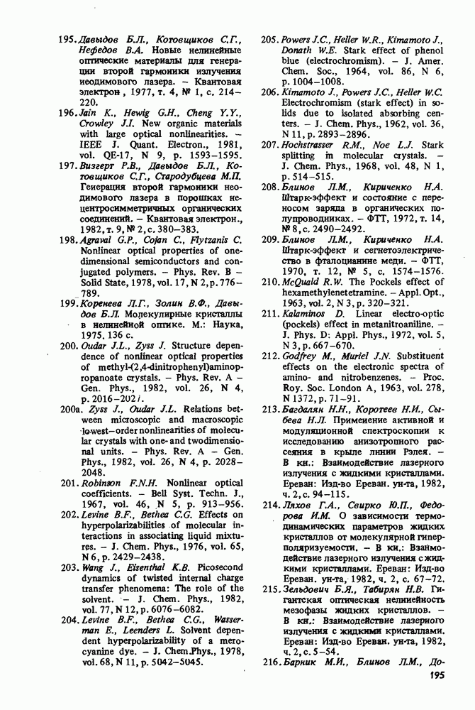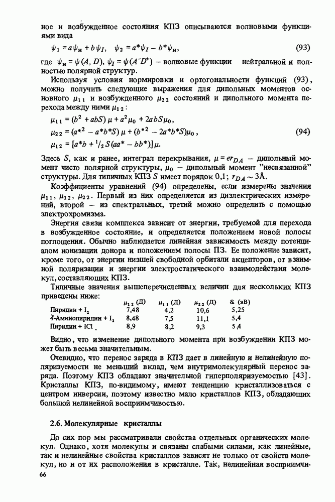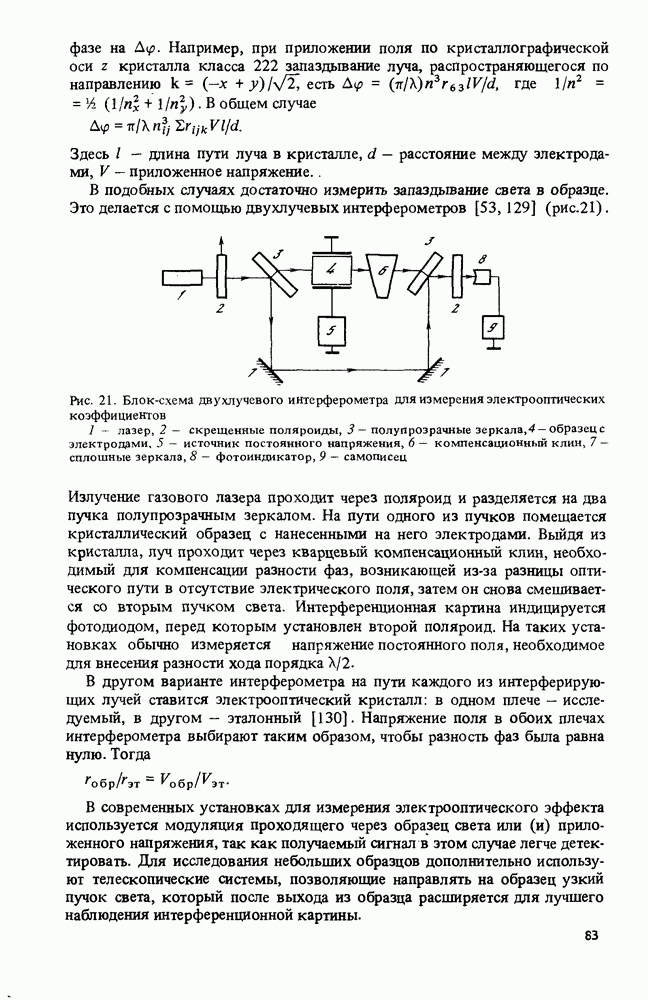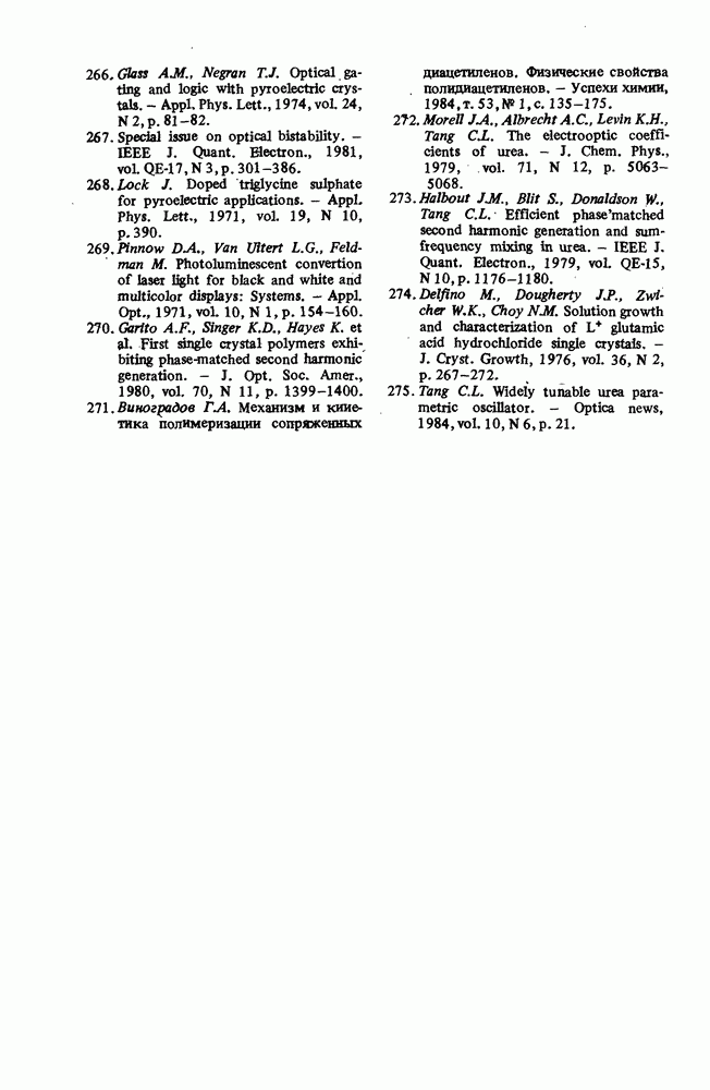 5.2. Векторный синхронизм в молекулярных кристаллахПеред тем как перейти к рассмотрению случаев выполнений условий коллинеарного синхронизма в конкретных молекулярных кристаллах, рассмотрим более общий случай синхронизма — векторный синхронизм. В случае векторного синхронизма векторы Векторный синхронизм изучен значительно меньше, чем коллинеарный. С одной стороны, направления векторного синхронизма гораздо более многочисленны, чем направления коллинеарного синхронизма, и их труднее изучать. С другой стороны, невозможно получить эффективное преобразование в режиме векторного синхронизма в кристаллах KDP и некоторых других хорошо изученных неорганических кристаллах. Последнее связано с тем, что взаимодействие основного и преобразованного излучения наблюдается лишь в области пересечения пучков, участвующих в преобразовании. Эта область определяется углом между к, и В случае молекулярных кристаллов ситуация иная. Многие Все вышеперечисленные соображения привели к тому, что векторный синхронизм в молекулярных кристаллах сравнительно часто исследуют и используют. Например, наблюдалось практически полное преобразование излучения неодимового лазера в его вторую гармонику на кристалле .мега-нитро анилина толщиной несколько миллиметров [227] при использовании режима векторного синхронизма. В режиме линейного синхронизма получили лишь 30%-ное преобразование (на кристаллах мета-нитро-анилина [228], метил-2,4-динитрофениламинопропаноата [123] и некоторых других). Рассмотрим способы расчета направлений векторного синхронизма. Выражение (2) можно переписать в виде [229]