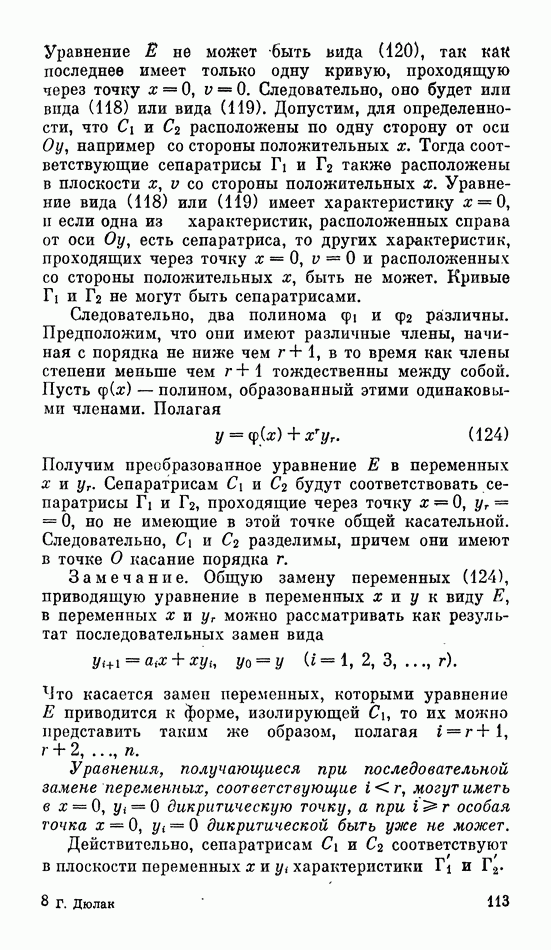 уравнение преобразуется к типу (118), (119) или (120). Характеристике С соответствует характеристика уравнения в переменных Наконец, может встретиться случай 2, который будем называть неприводимым случаем. Обозначим