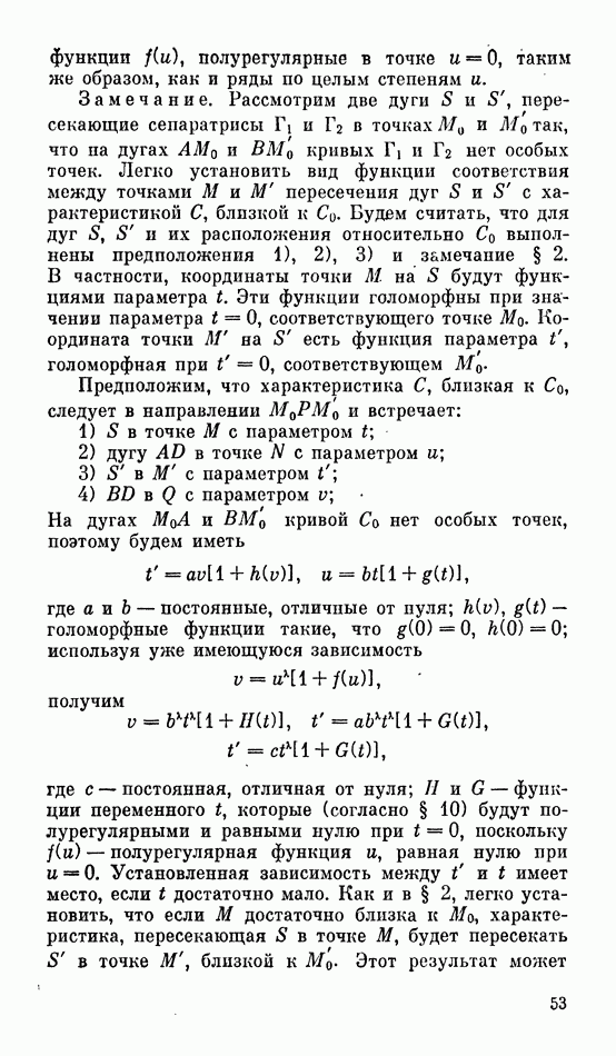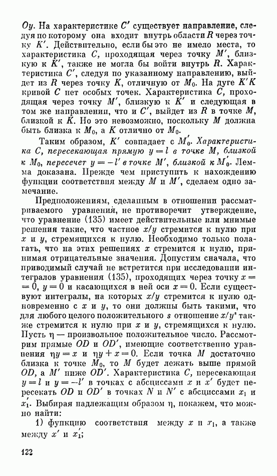 где уравнения к простой форме требует конечного числа замен переменных. Осуществляя конечное число подстановок вида Совокупность подстановок типа (122) эквивалентна одному преобразованию Допустим, что существует характеристика С, проходящая через точку О, такая, что отношение