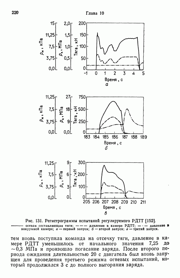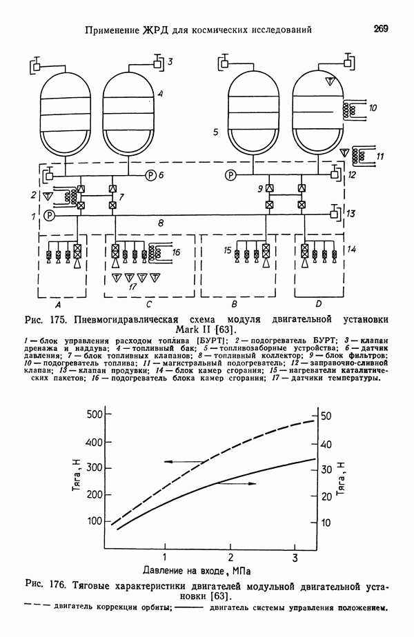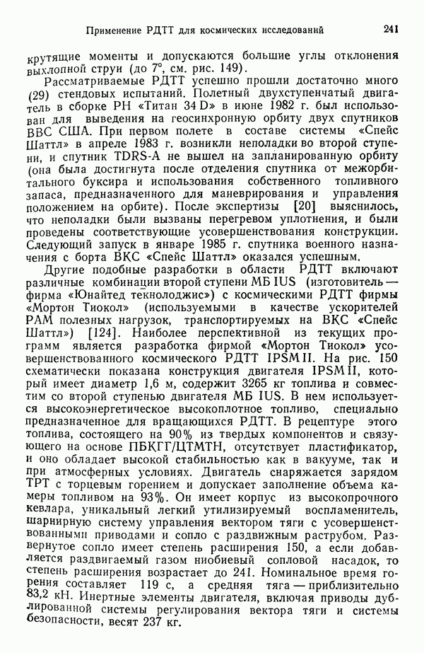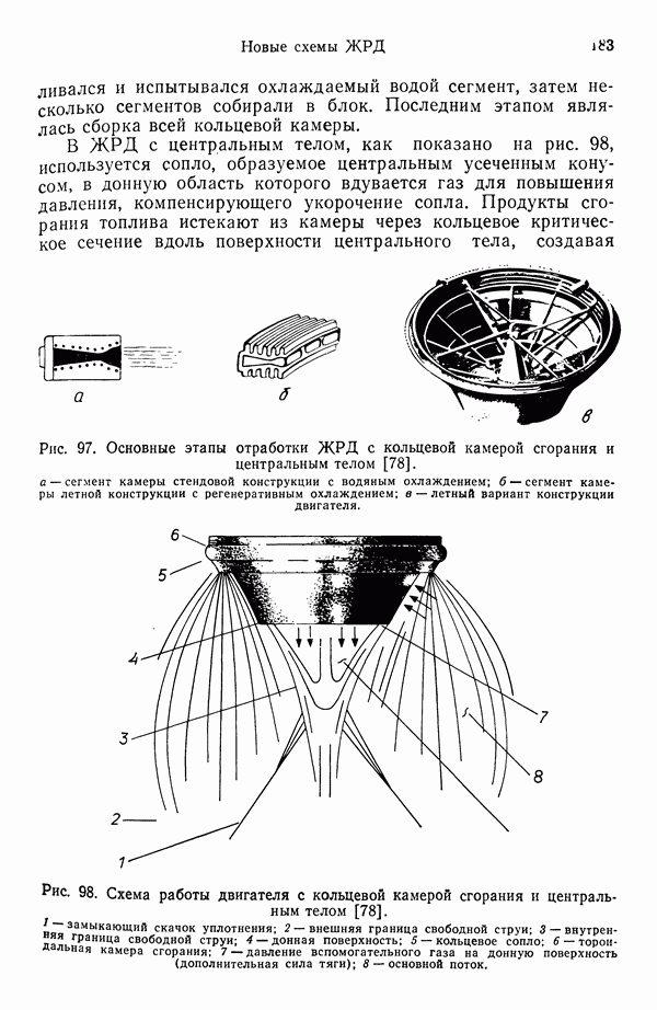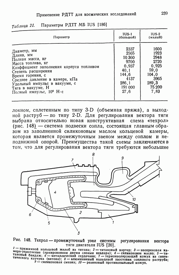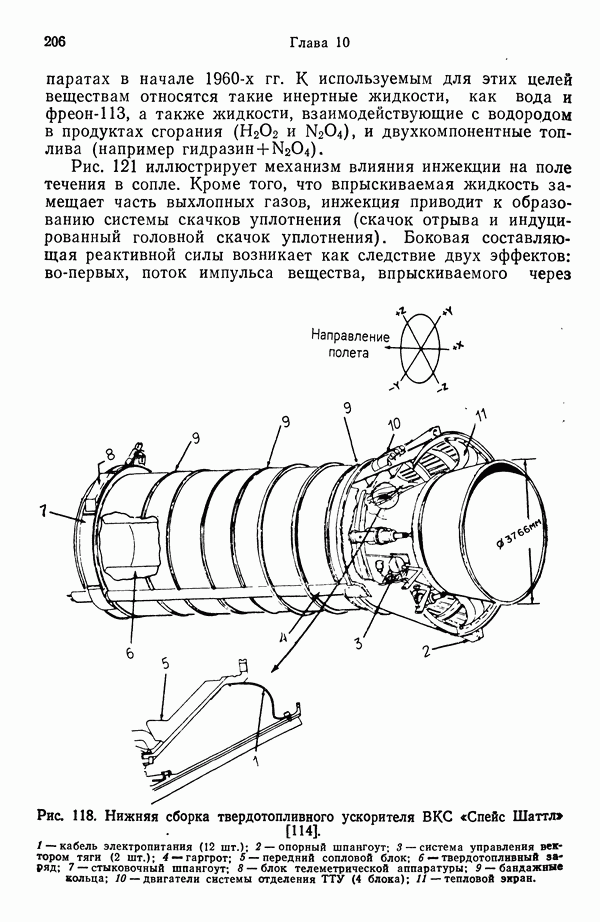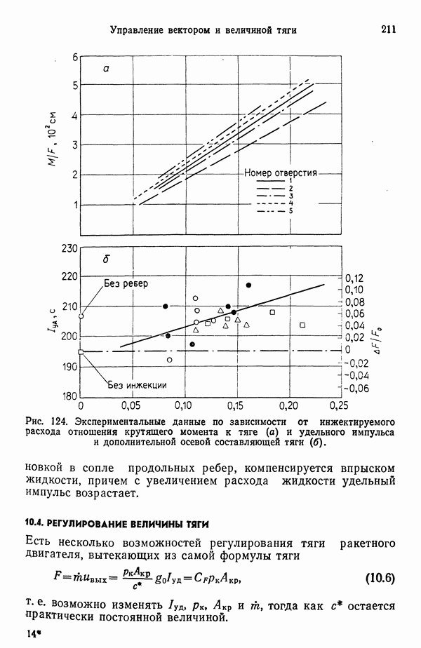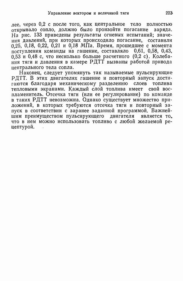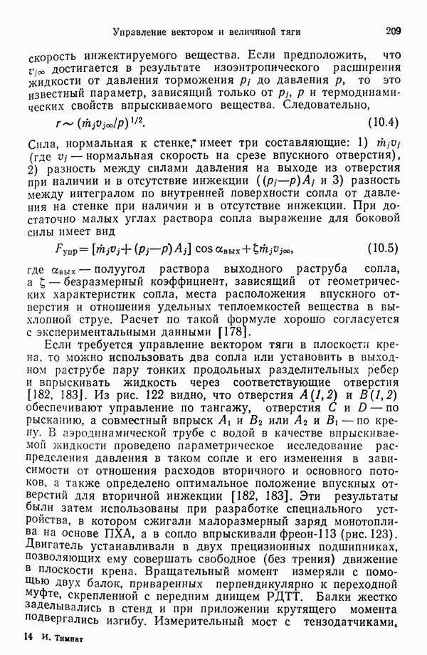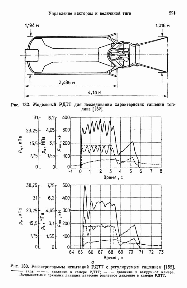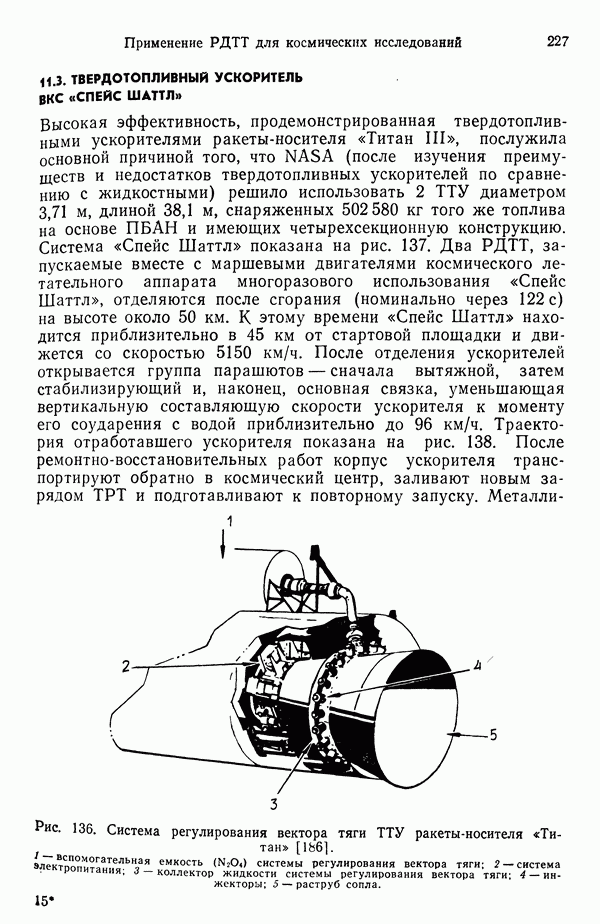 Ниже рассмотрены способы управления вектором и величин ной тяги для ЖРД и РДТТ с приведением примеров работающих систем. Среди последних — поворотное сопло твердотой ливного ускорителя ВКС «Спейс Шаттл» [186], система вторич ного впрыска рабочего тела в сопло РДТТ [182, 183] и регули руемый дросселирующей иглой РДТТ антиракеты [152].