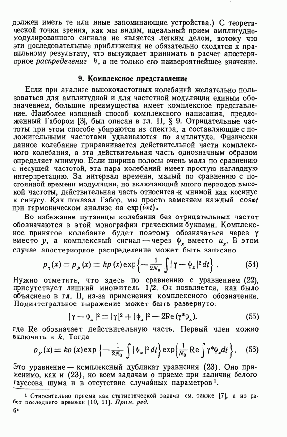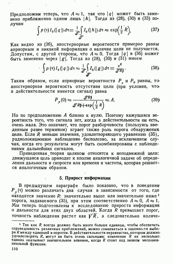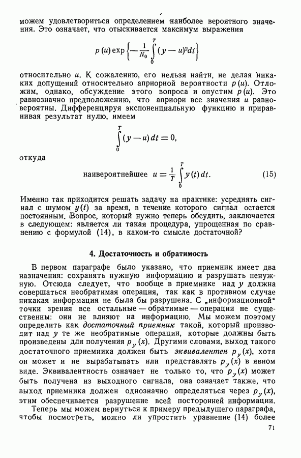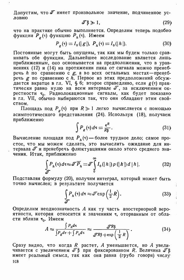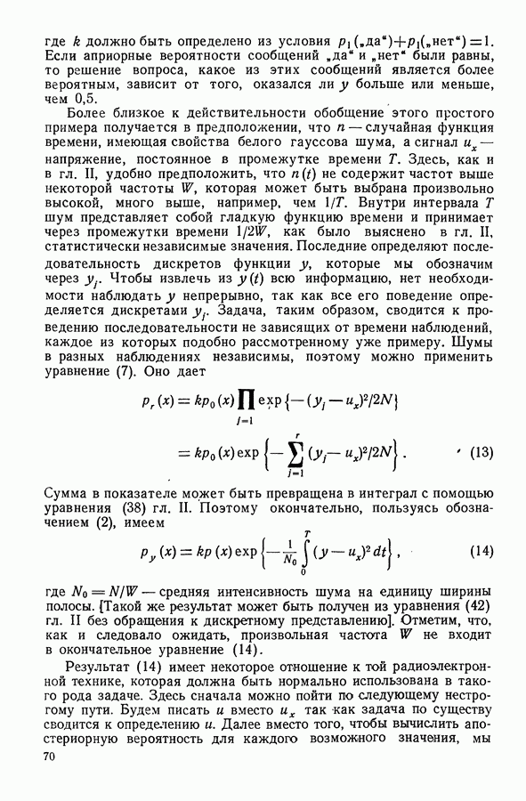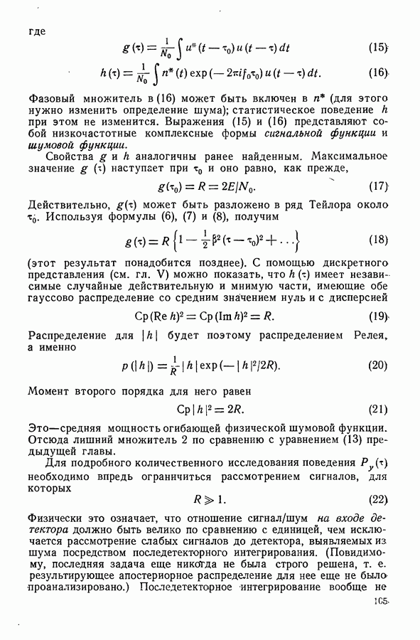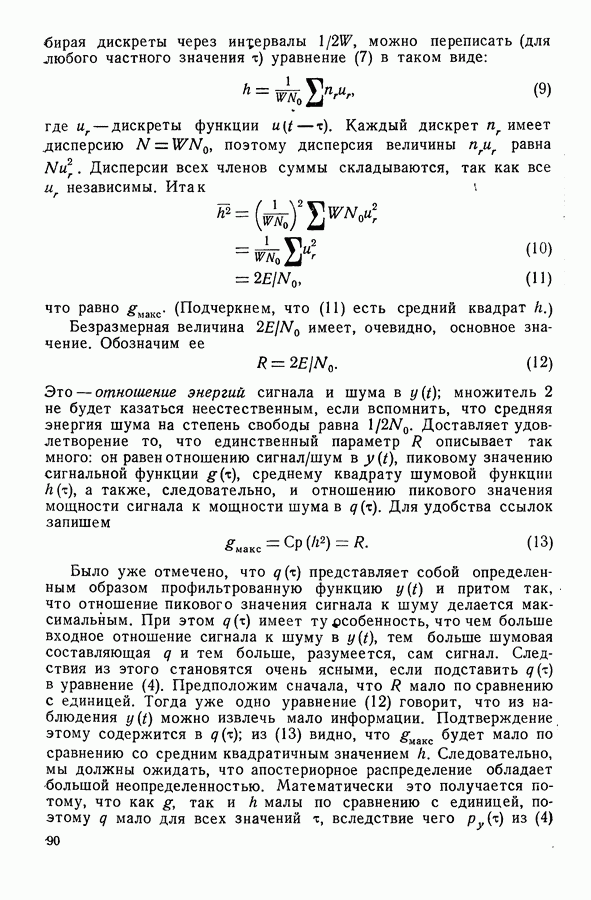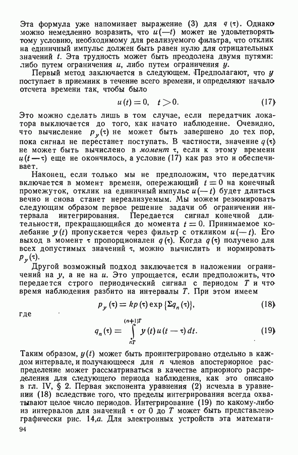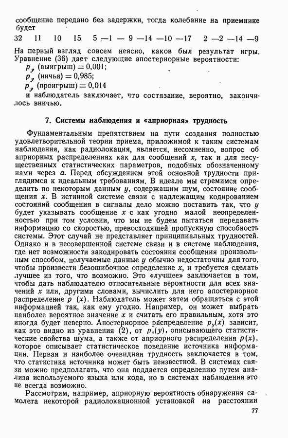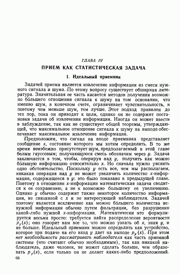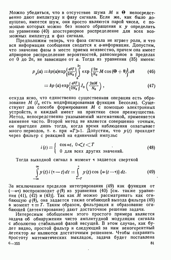 -характеристика, входящая в уравнение (35), идеальна лишь в том смысле, что она дает апостериорное распределение непосредственно, без дальнейших преобразований. Но если выход детектора подвергается необратимым операциям, как, например, сложение с другими развертками, различные характеристики перестают, очевидно, быть эквивалентными. Если выходы, соответствующие последовательным разверткам, перемножаются, идеальной будет
