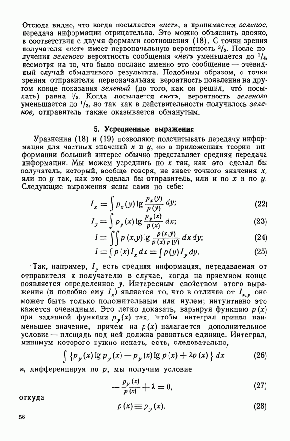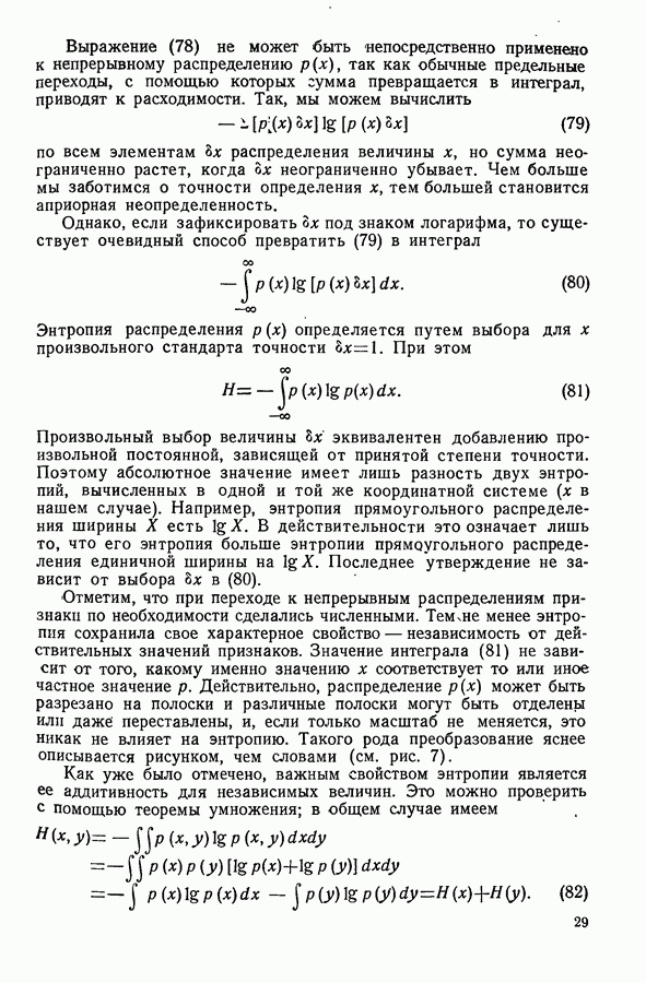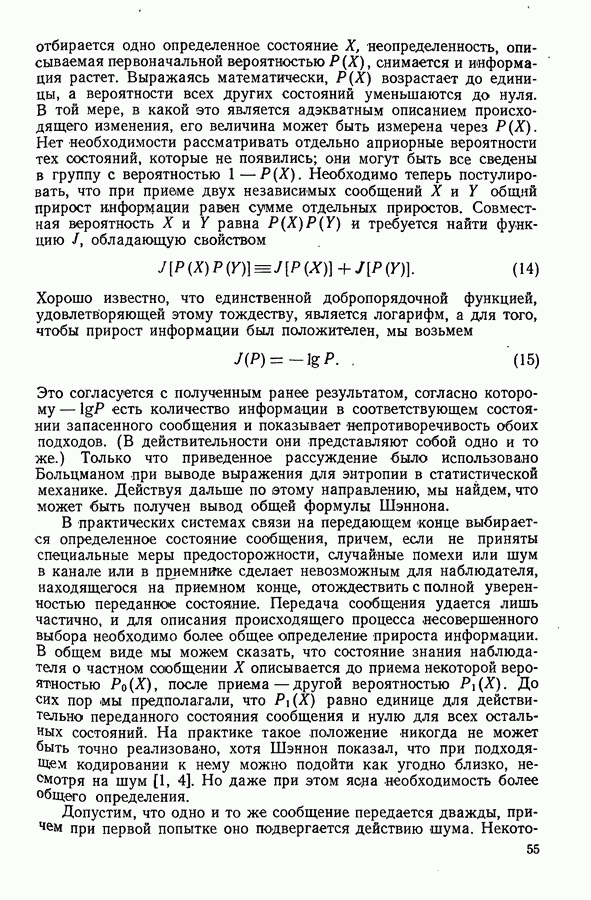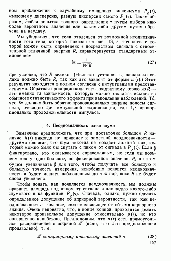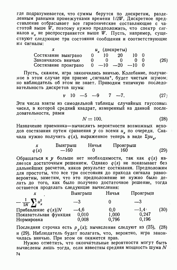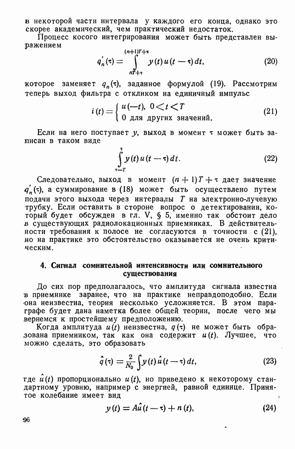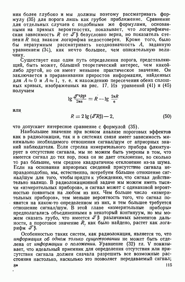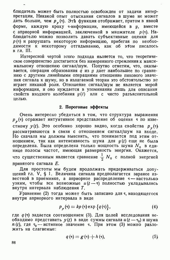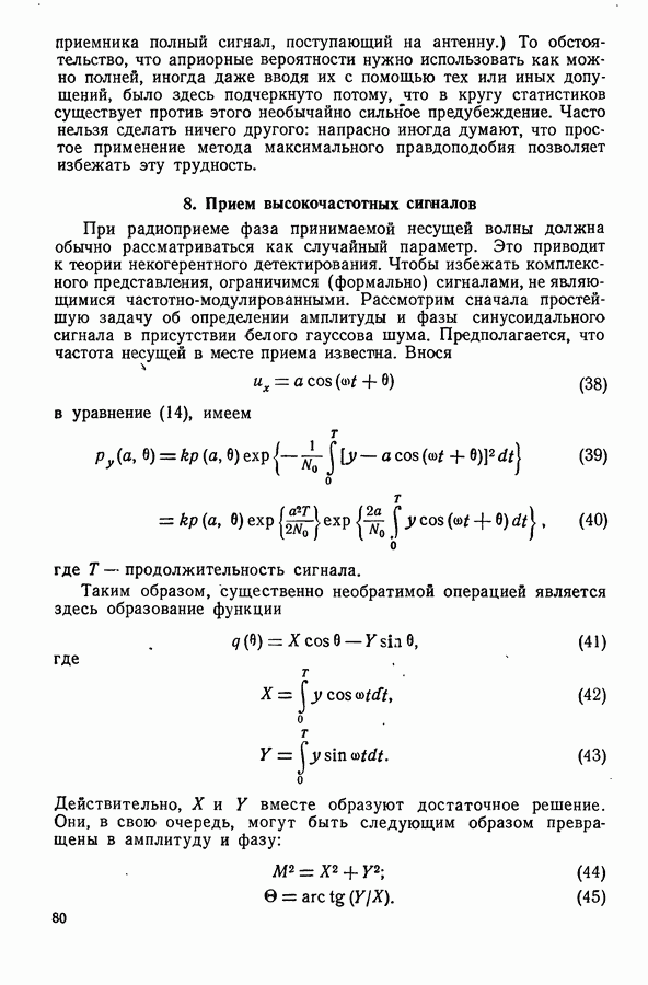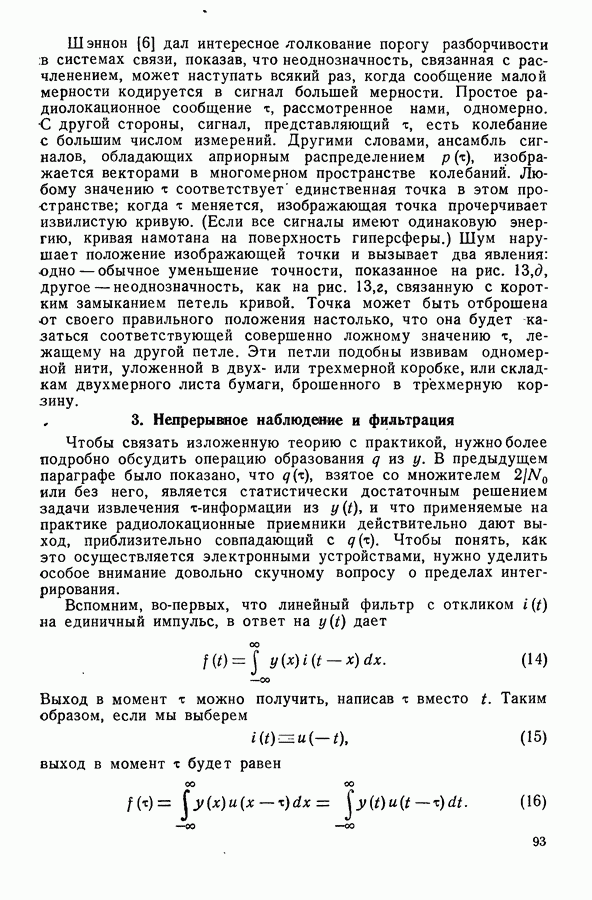 -характеристика, входящая в уравнение (35), идеальна лишь в том смысле, что она дает апостериорное распределение непосредственно, без дальнейших преобразований. Но если выход детектора подвергается необратимым операциям, как, например, сложение с другими развертками, различные характеристики перестают, очевидно, быть эквивалентными. Если выходы, соответствующие последовательным разверткам, перемножаются, идеальной будет