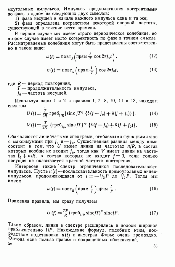 Из приведенной теории следует интересный вывод. Предположим, что, наблюдая последовательные импульсы и фильтруя их так, как описано в гл. V, § 3, мы получим последовательность разверток