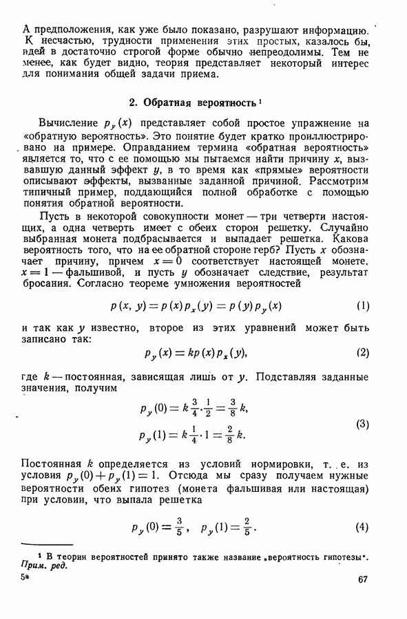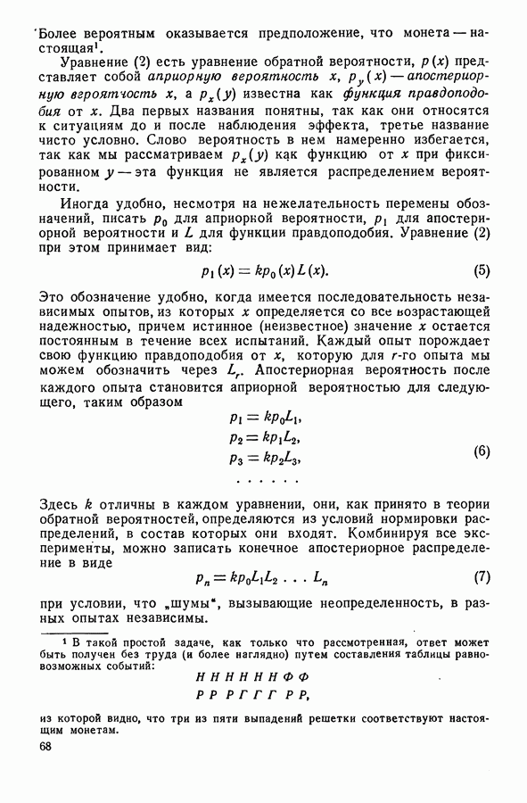 где апостериорное распределение на каждой ступени рассматривается как априорное для следующей, как это было объяснено в гл. IV, § 2. В другой форме (37) может быть записано так