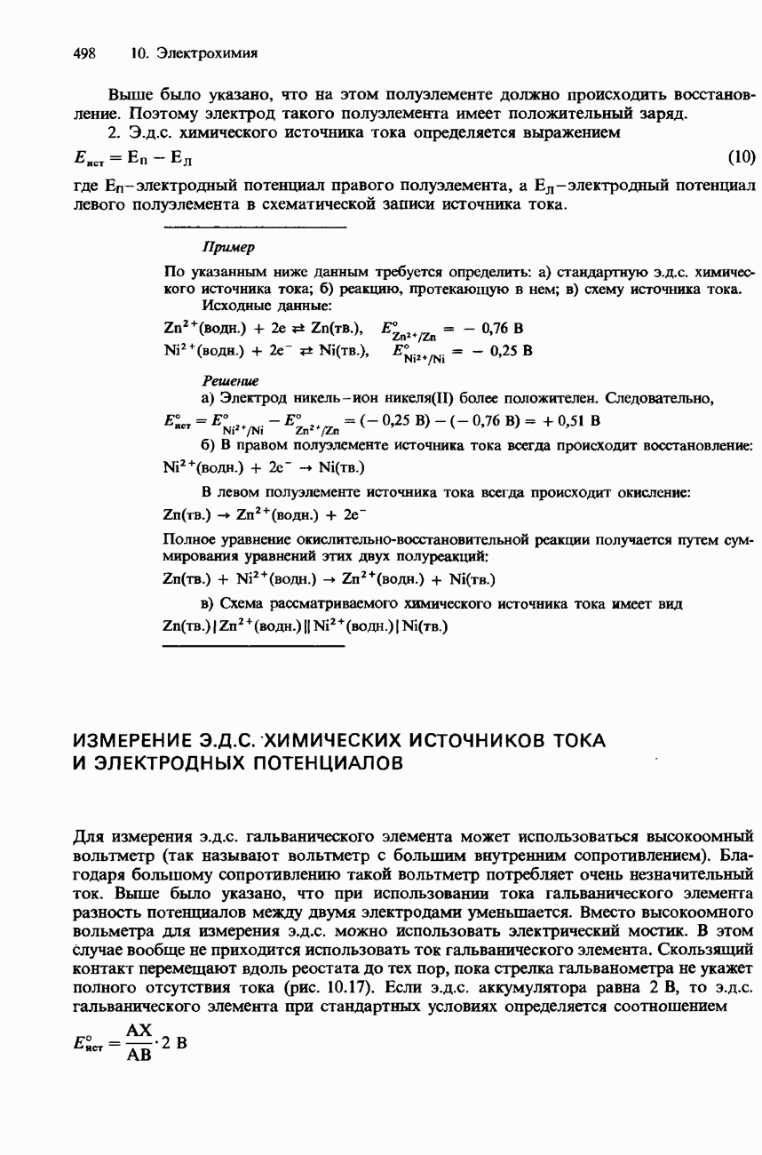 более положительный электродный потенциал, он должен рассматриваться как правый полуэлемент в схеме источника тока. Это позволяет записать схему источника тока следующим образом: