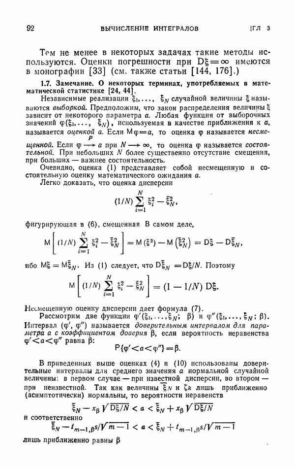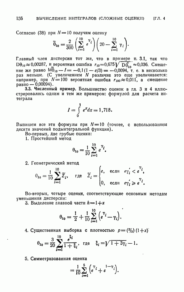 Впрочем, п. 1.1 гл. 4 мог бы быть отнесен к гл. 3: выборка по группам не раз использовалась в практических вычислениях. Численный пример, приведенный в конце гл. 4 (п. 3.3), относится к оценкам, рассмотренным в обеих главах.
