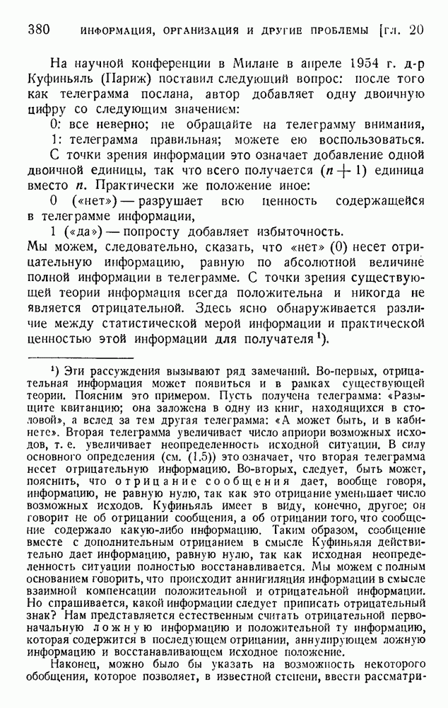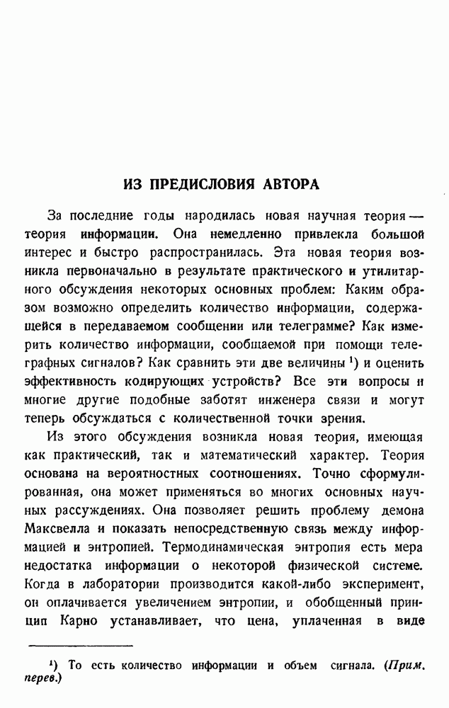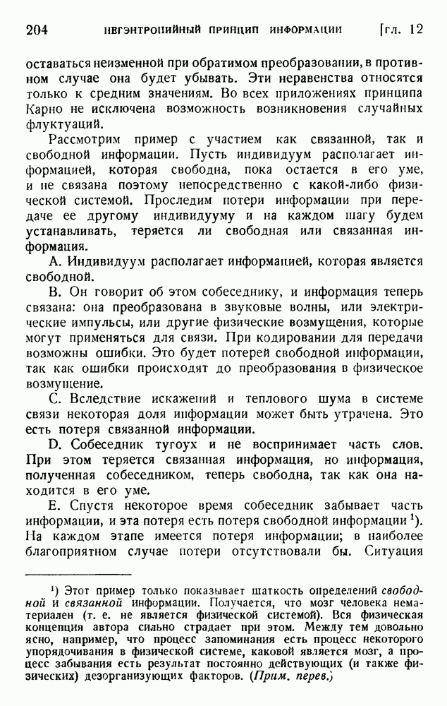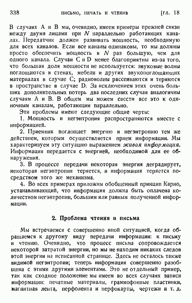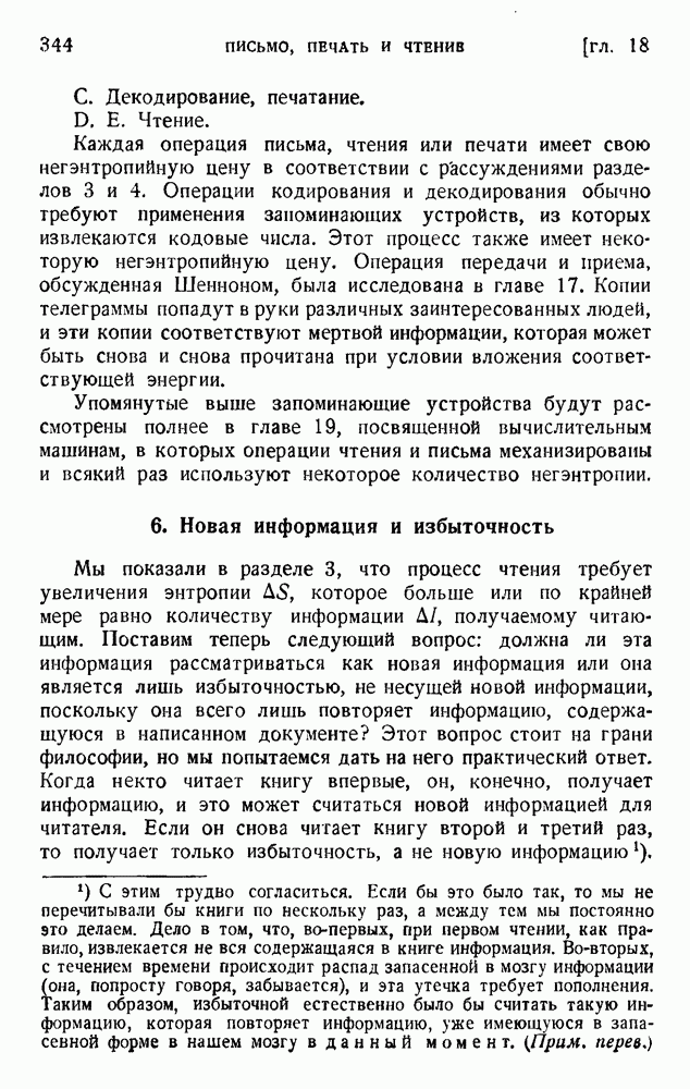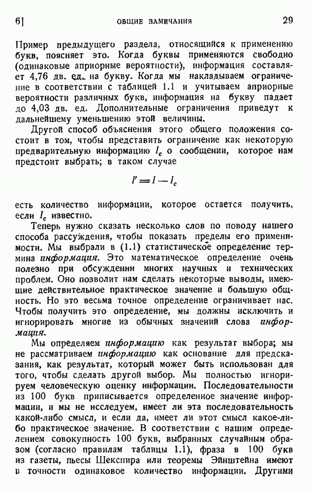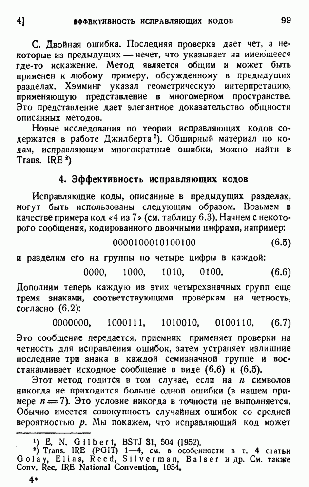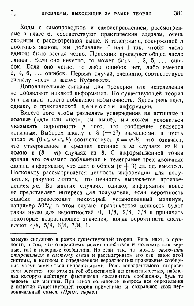 сохраняется, и при кодировании не происходит потери информации. Аналогичный преобразователь (действующий в обратном направлении) может применяться для декодирования сообщения и превращения его снова в письменный текст. Если наш преобразователь необратим, он может потерять часть информации, что поведет к ошибкам и недоразумениям. Итак, первое требование к преобразователю состоит в том, что он должен быть обратимым.