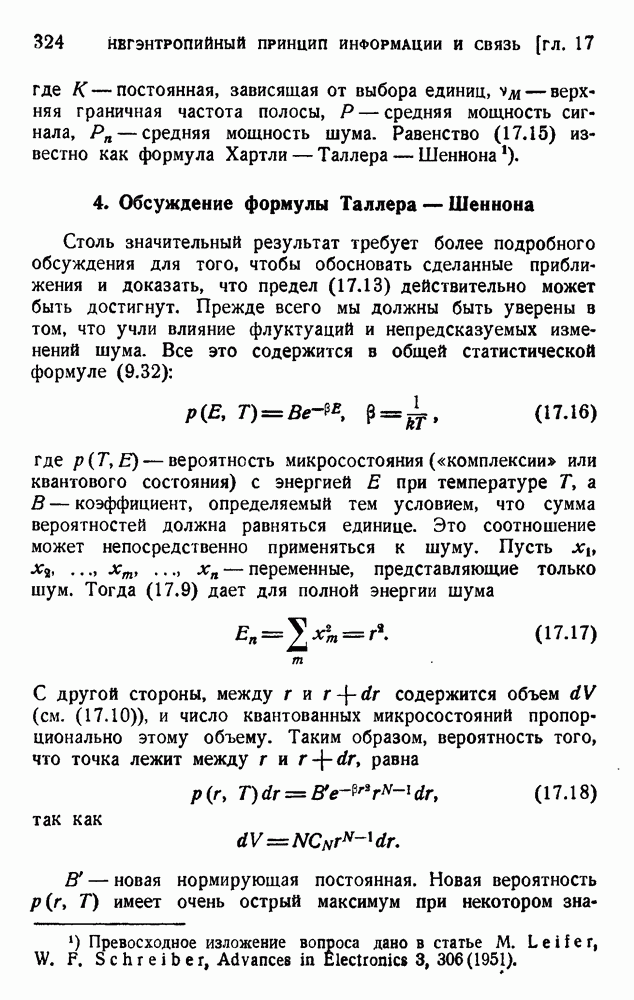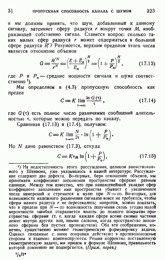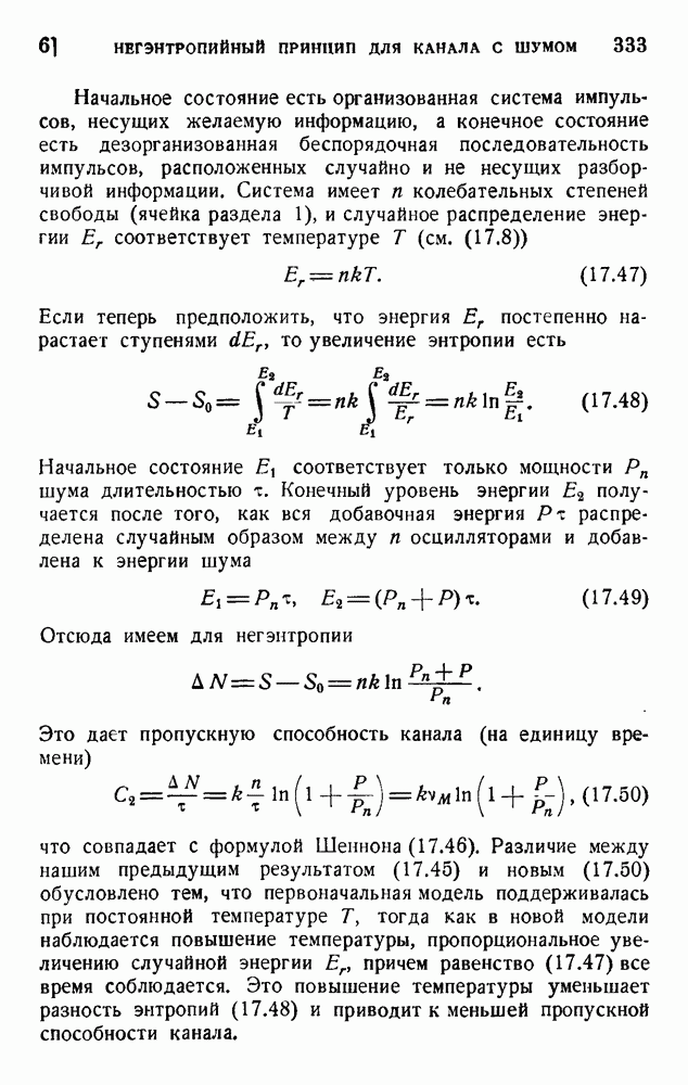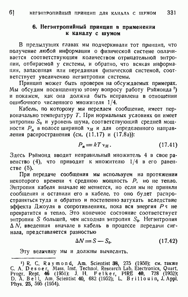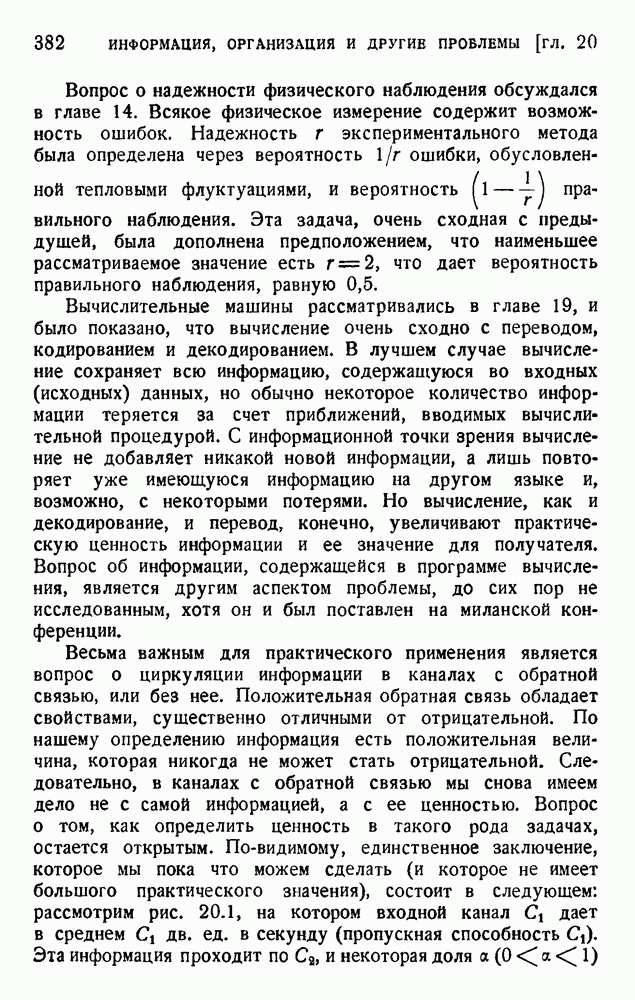 В предыдущих главах мы определили информационное содержание некоторого сообщения и обсудили роль избыточности, уменьшающей действительное количество информации, приходящейся на одну букву письменного сообщения. Если I есть средняя информация на букву, и если источник выдает буквы со скоростью m букв в секунду, то поток (скорость создания) информации равен