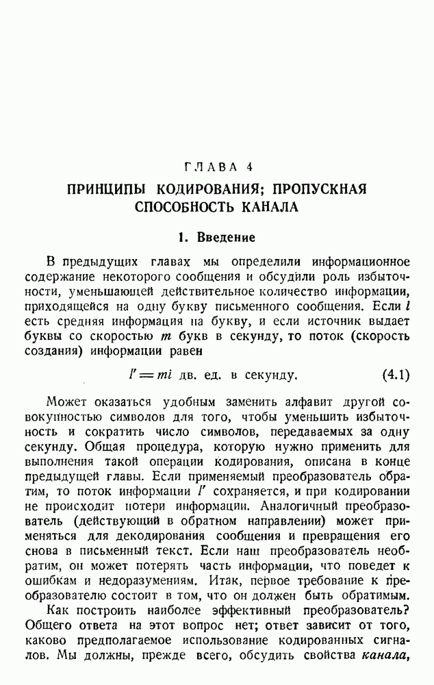 ГЛАВА 4. ПРИНЦИПЫ КОДИРОВАНИЯ; ПРОПУСКНАЯ СПОСОБНОСТЬ КАНАЛА