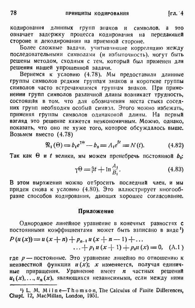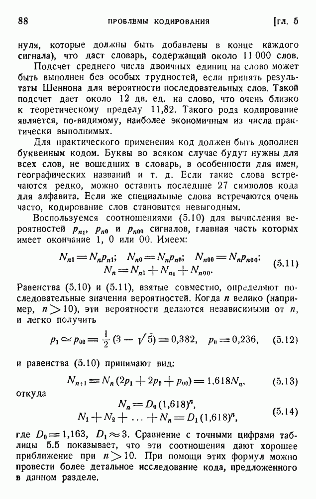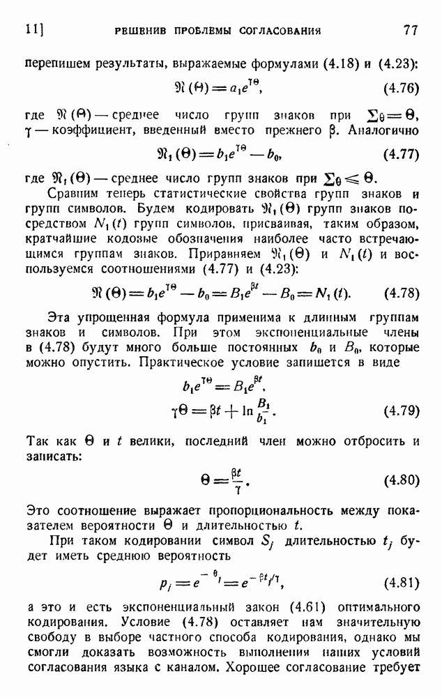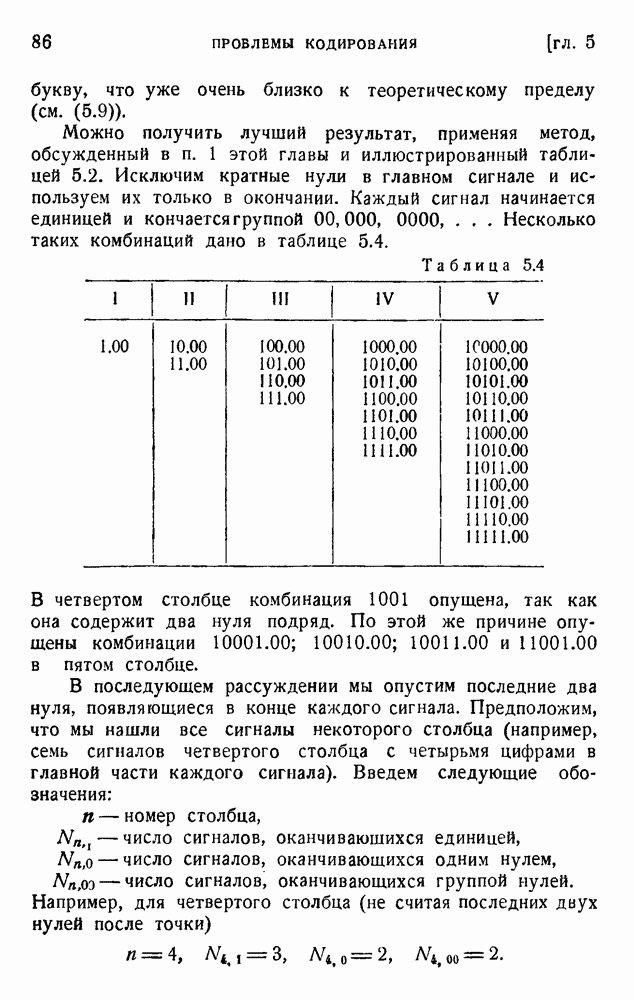 Может оказаться удобным заменить алфавит другой совокупностью символов для того, чтобы уменьшить избыточность и сократить число символов, передаваемых за одну секунду. Общая процедура, которую нужно применить для выполнения такой операции кодирования, описана в конце предыдущей главы. Если применяемый преобразователь обратим, то поток информации