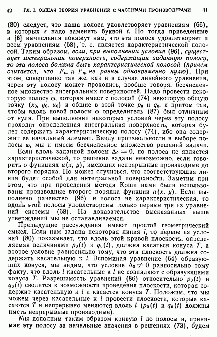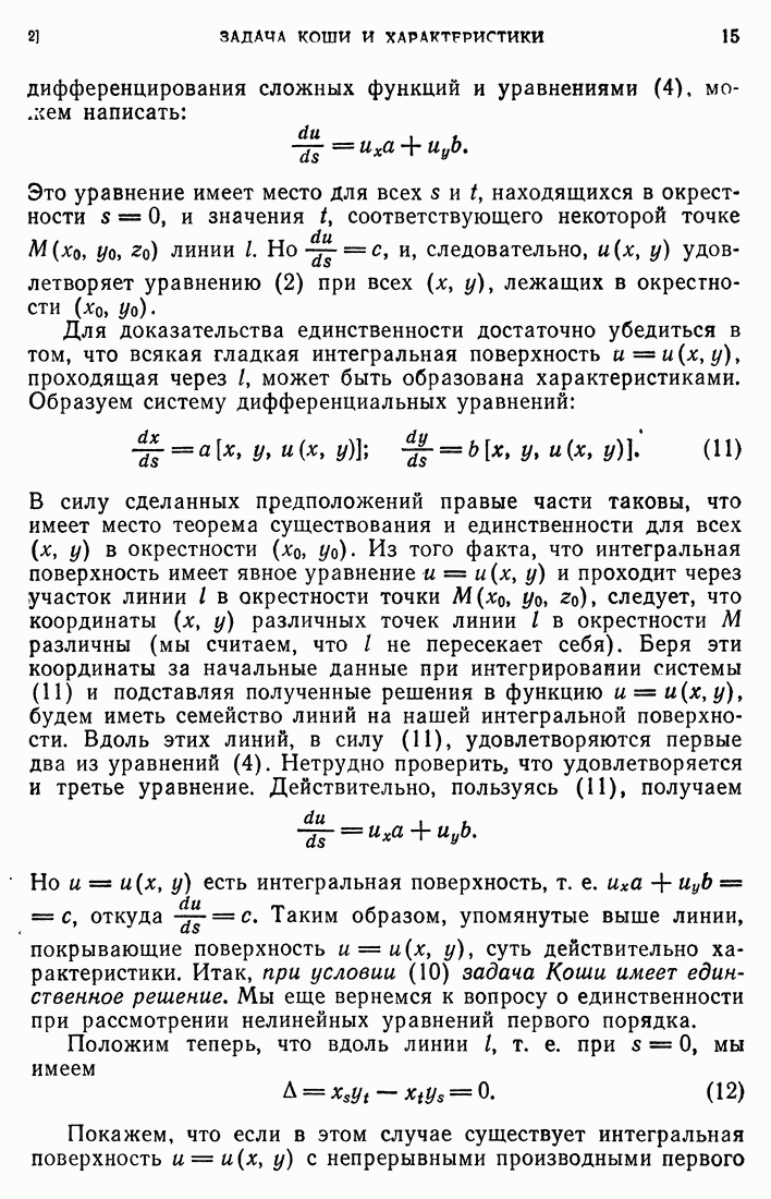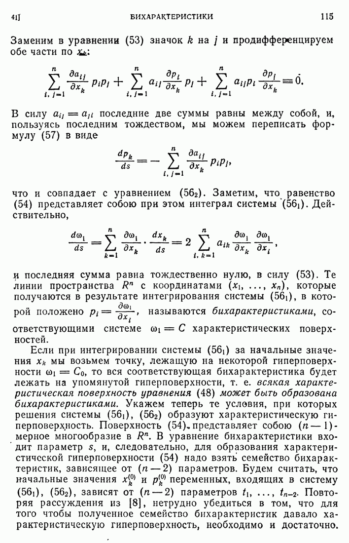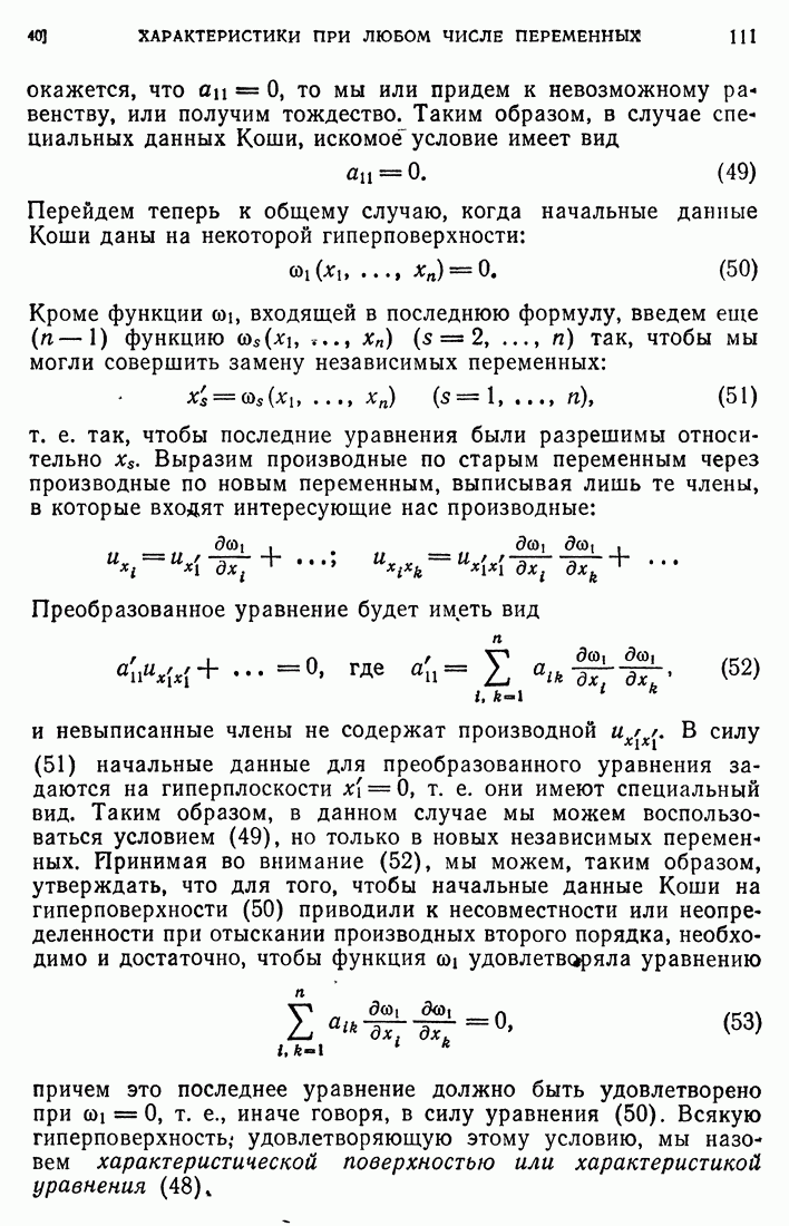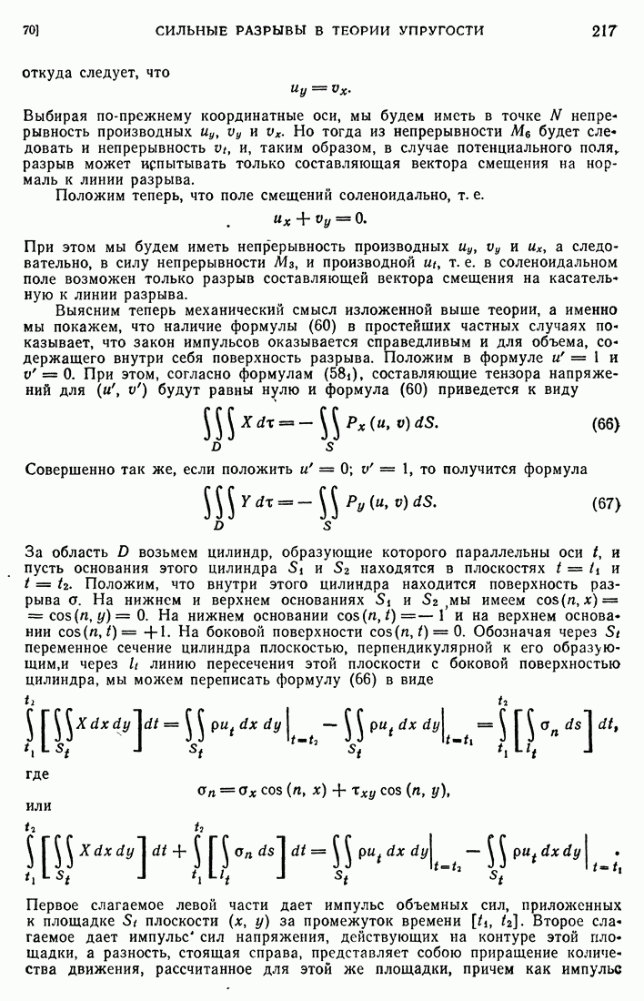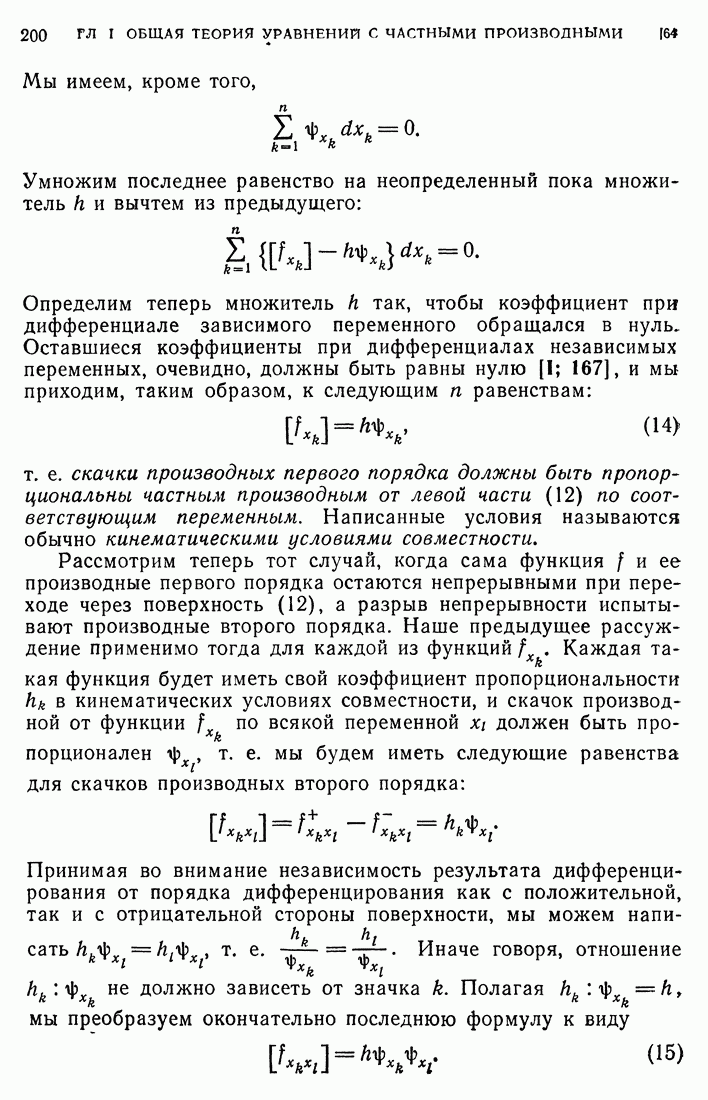 Мы видим, таким образом, что если выполнены кинематические условия совместности, что дает непрерывность Итак, мы доказали следующее: если функция и имеет сильный разрыв на поверхности а и удовлетворяет на ней кинематическим и динамическим условиям совместности, то а является характеристической поверхностью, и функция и удовлетворяет тождеству (79) при любой Верно и обратное утверждение, а именно: если функция Действительно, нам дано, что и непрерывна в D (так что
