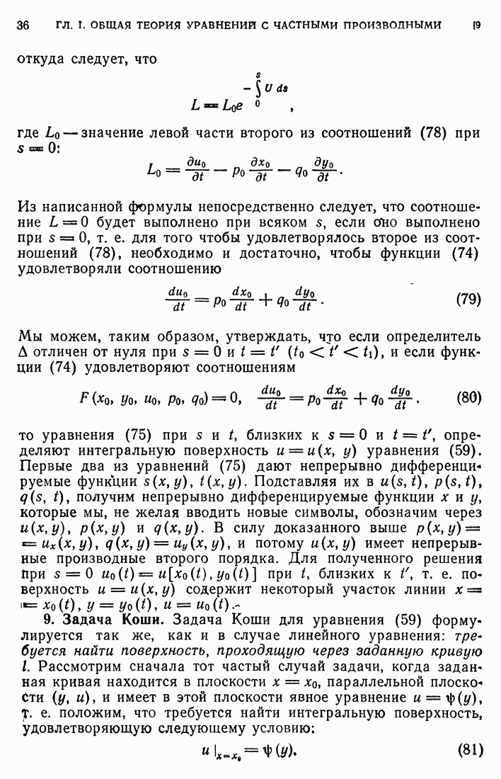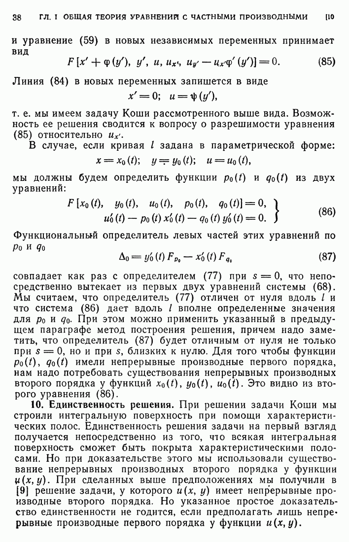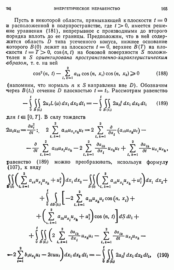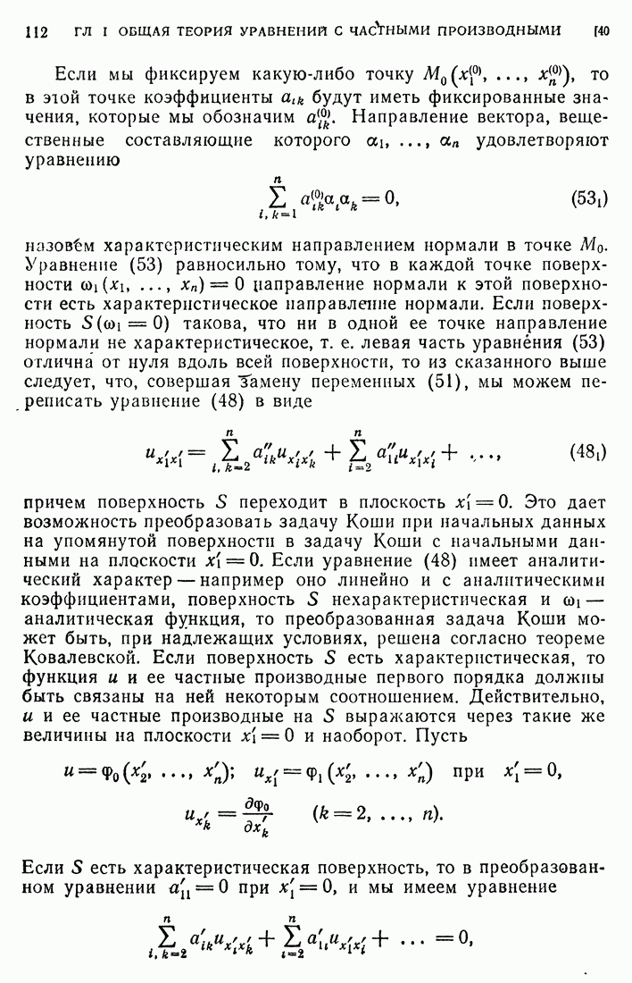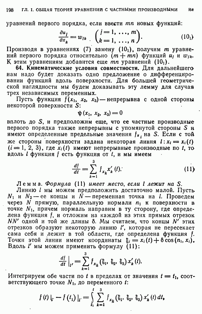 Мы видим, таким образом, что если выполнены кинематические условия совместности, что дает непрерывность Итак, мы доказали следующее: если функция и имеет сильный разрыв на поверхности а и удовлетворяет на ней кинематическим и динамическим условиям совместности, то а является характеристической поверхностью, и функция и удовлетворяет тождеству (79) при любой Верно и обратное утверждение, а именно: если функция Действительно, нам дано, что и непрерывна в D (так что