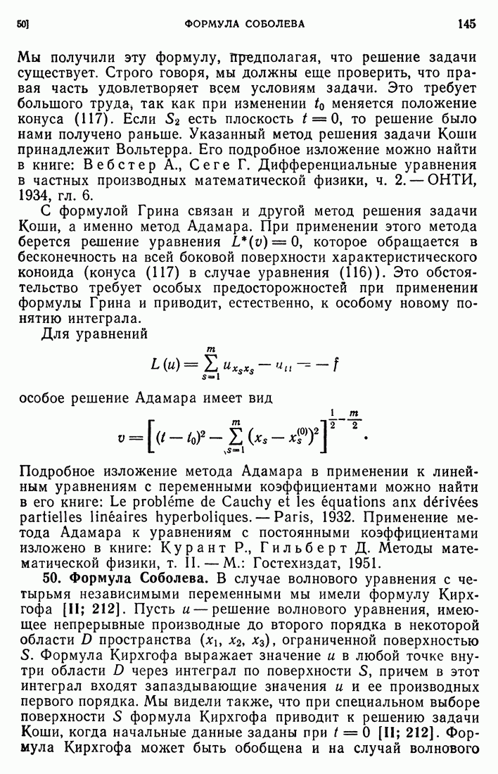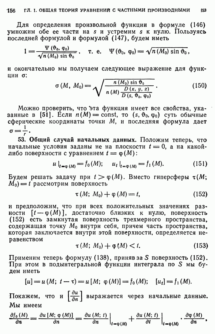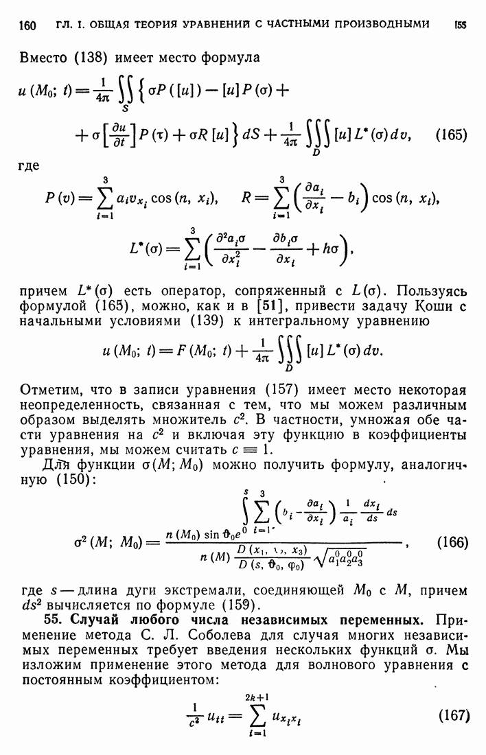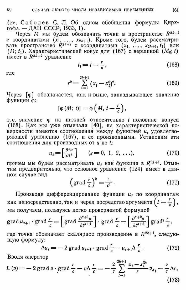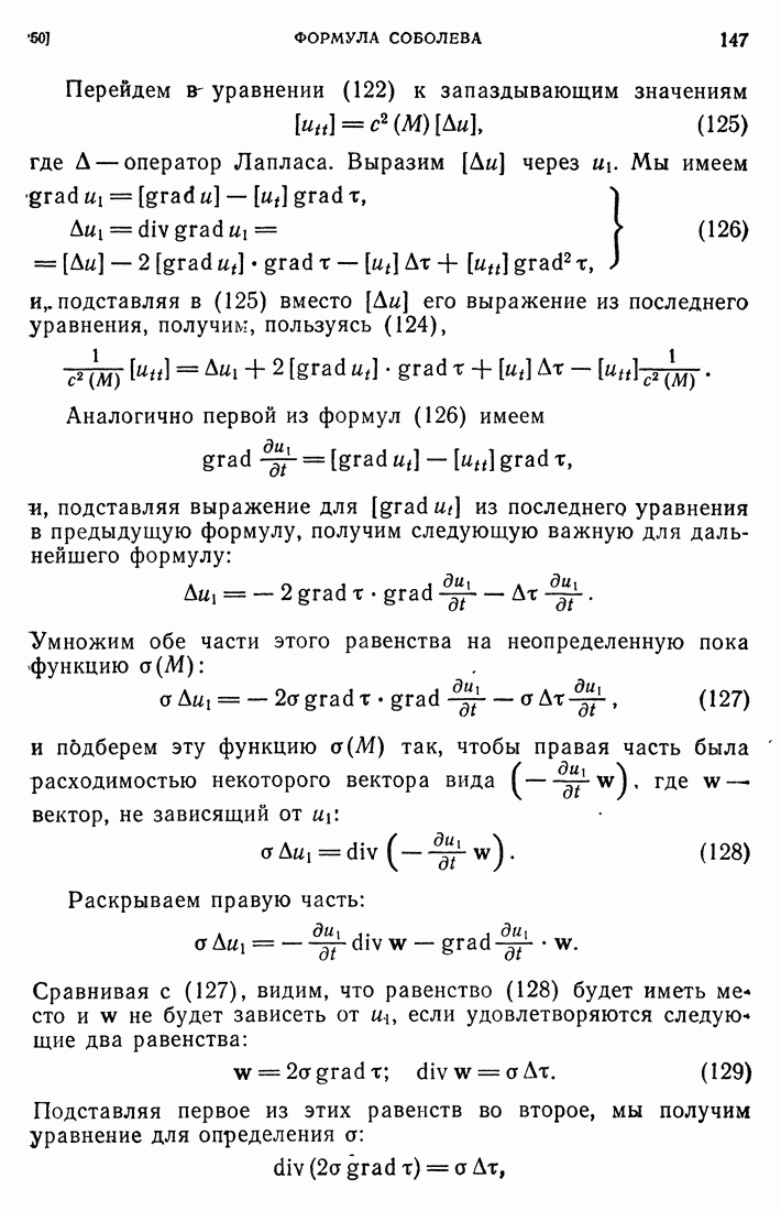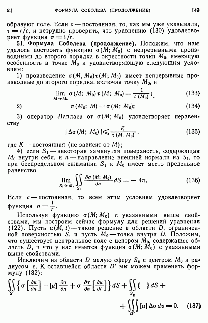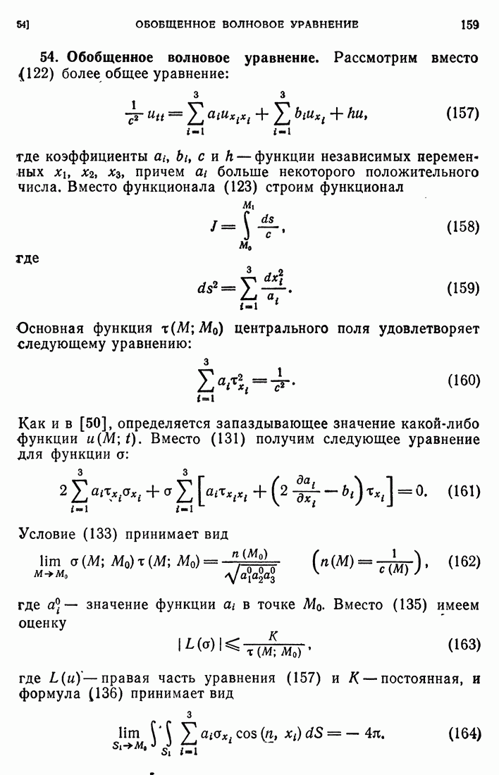 44. Сильные разрывы.При исследовании разрывных решений для уравнений второго порядка мы предполагали, что сама функция и ее производные первого порядка остаются непрерывными при переходе через поверхность разрыва и что разрыв испытывают производные не ниже второго порядка (слабый разрыв). Только при таком предположении мы могли утверждать, то поверхность разрыва должна быть характеристической поверхностью. Мы переходим теперь к исследованию сильных разрывов. Это значит, что в случае уравнения второго порядка, разрыв имеют уже производные первого порядка. Нашей целью является выяснение тех обстоятельств, при которых поверхностью разрыва по-прежнему является обязательно характеристическая поверхность. Мы рассмотрим волновое уравнение с тремя независимыми переменными. Введем в рассмотрение оператор, стоящий в левсй части упомянутого уравнения: