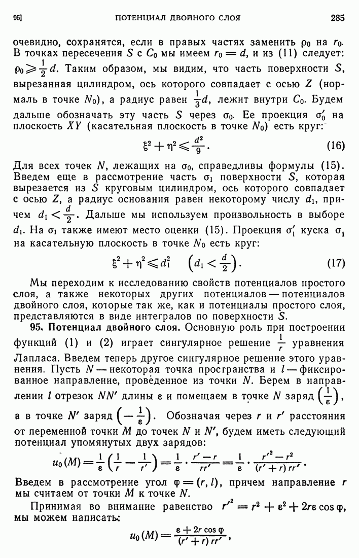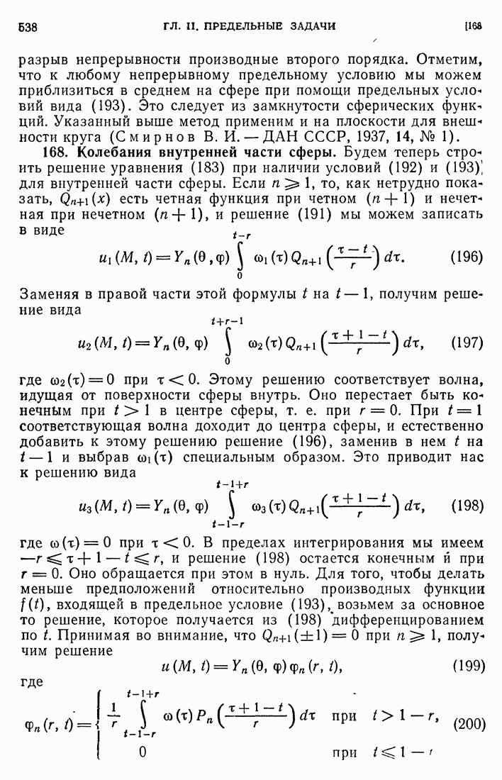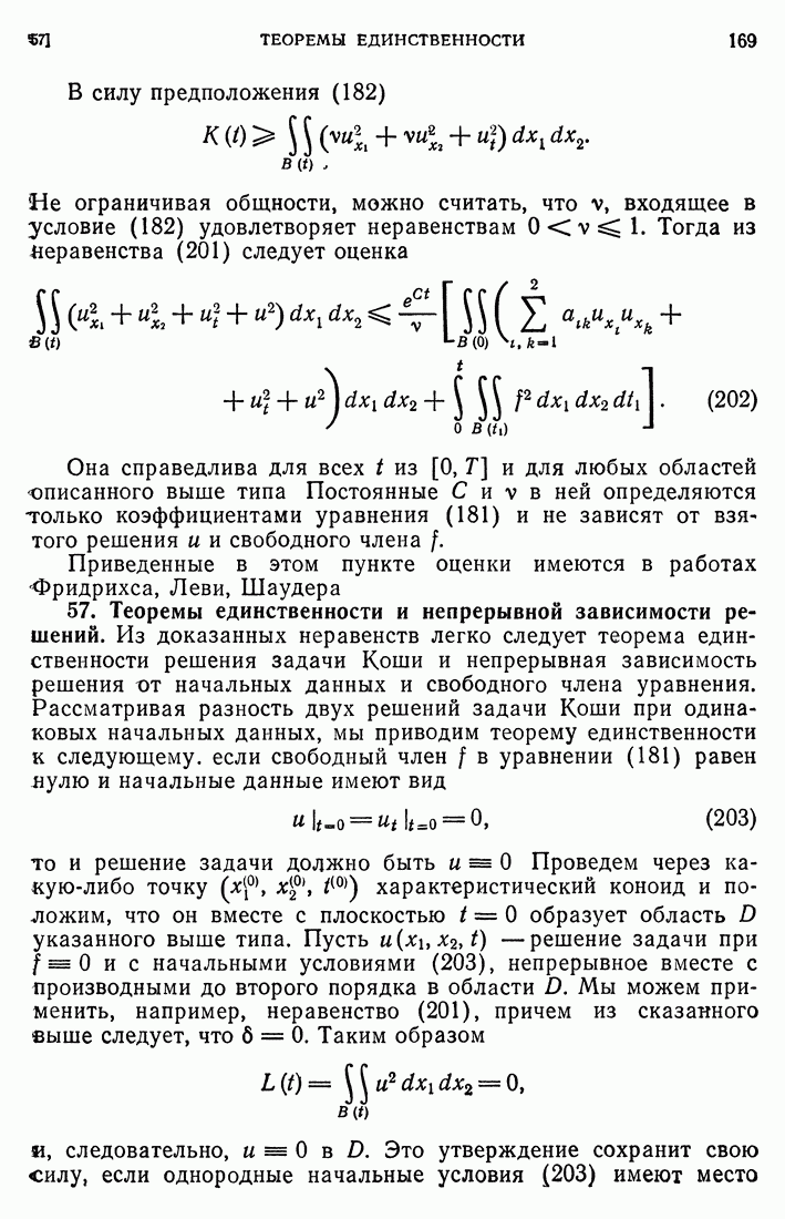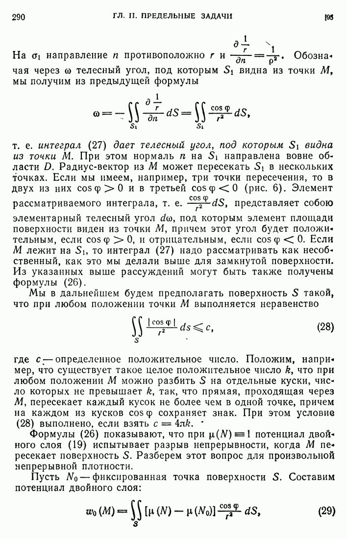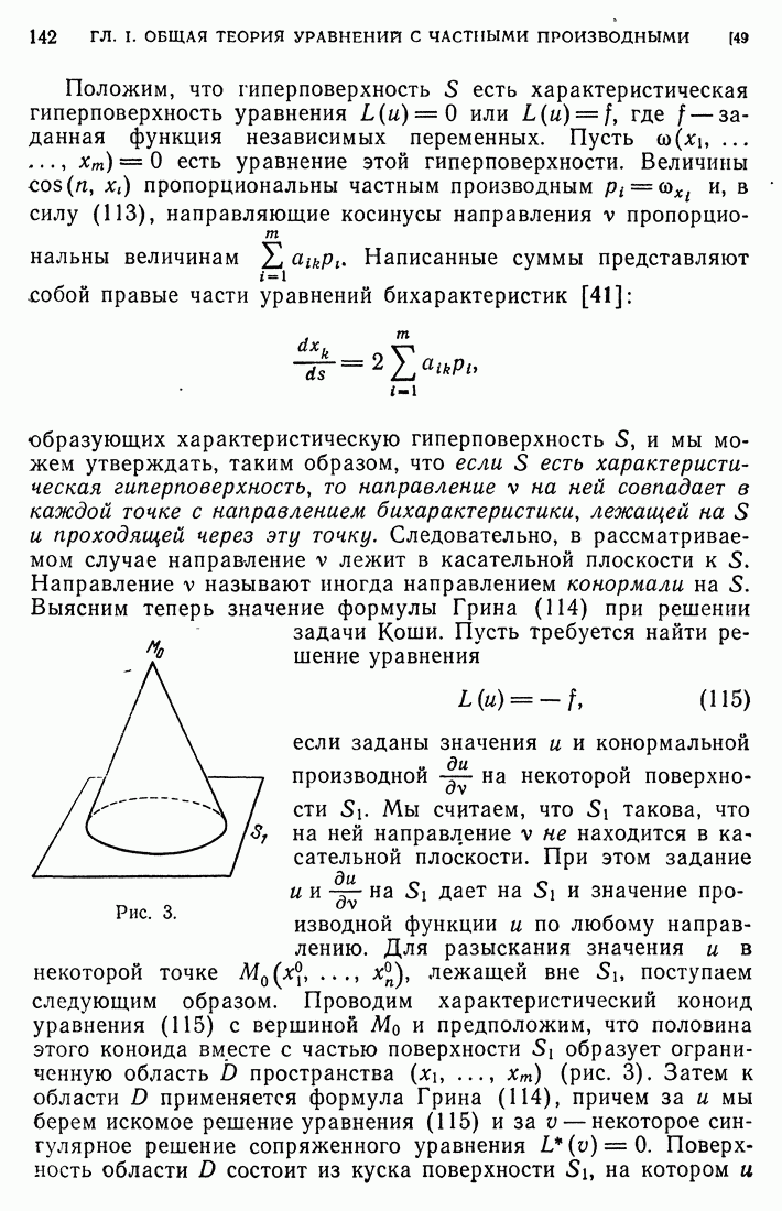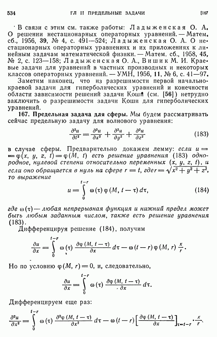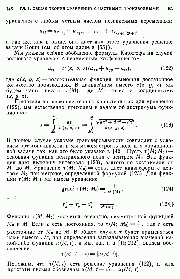 44. Сильные разрывы.При исследовании разрывных решений для уравнений второго порядка мы предполагали, что сама функция и ее производные первого порядка остаются непрерывными при переходе через поверхность разрыва и что разрыв испытывают производные не ниже второго порядка (слабый разрыв). Только при таком предположении мы могли утверждать, то поверхность разрыва должна быть характеристической поверхностью. Мы переходим теперь к исследованию сильных разрывов. Это значит, что в случае уравнения второго порядка, разрыв имеют уже производные первого порядка. Нашей целью является выяснение тех обстоятельств, при которых поверхностью разрыва по-прежнему является обязательно характеристическая поверхность. Мы рассмотрим волновое уравнение с тремя независимыми переменными. Введем в рассмотрение оператор, стоящий в левсй части упомянутого уравнения: