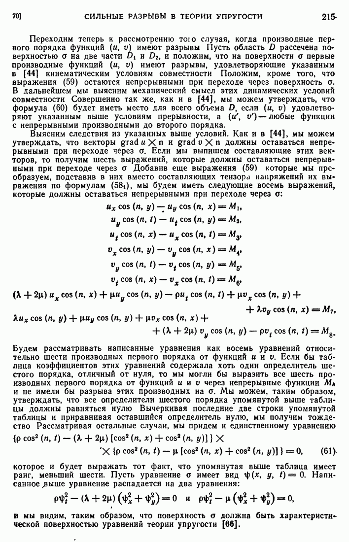 и мы видим, таким образом, что и в рассматриваемом случае сильного разрыва поверхность а должна быть характеристической поверхностью уравнения