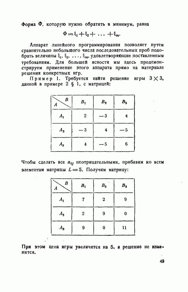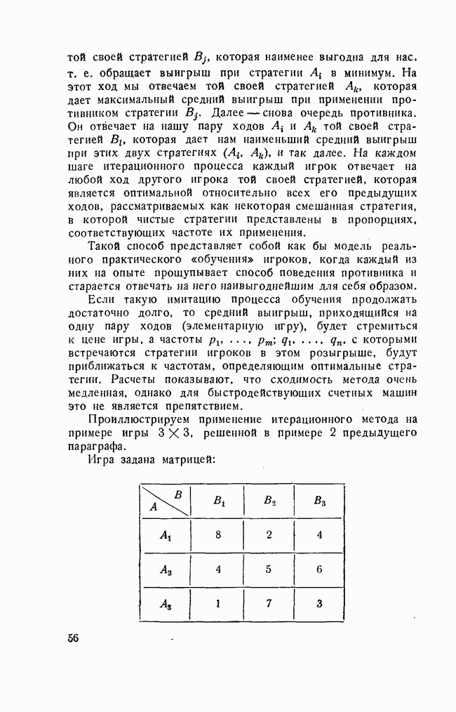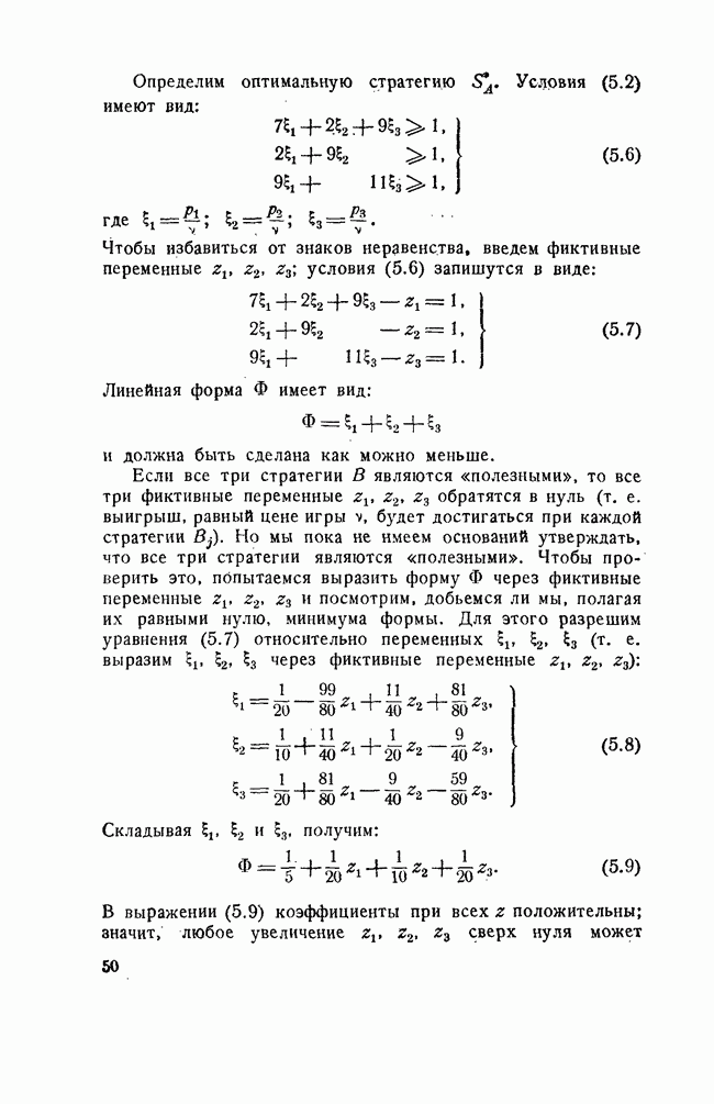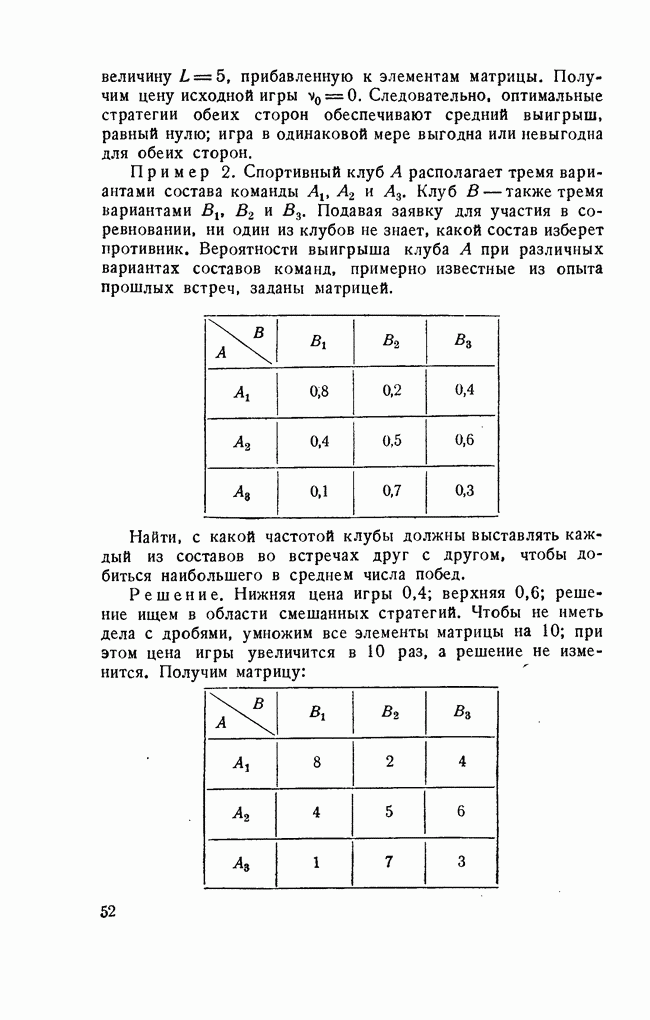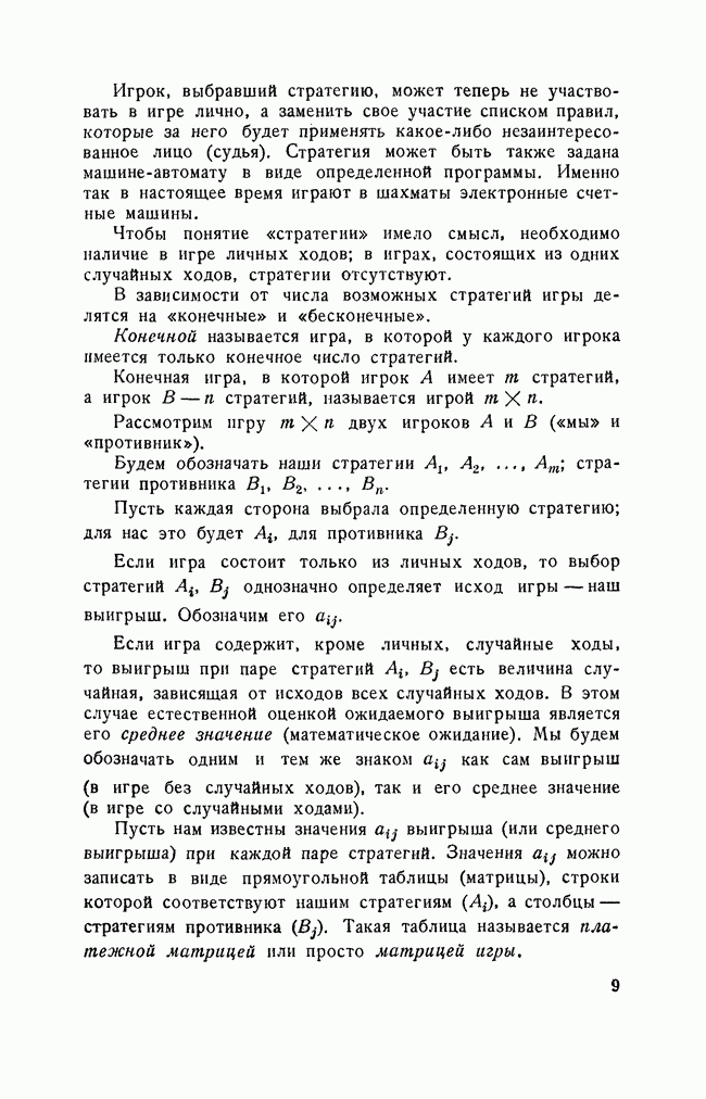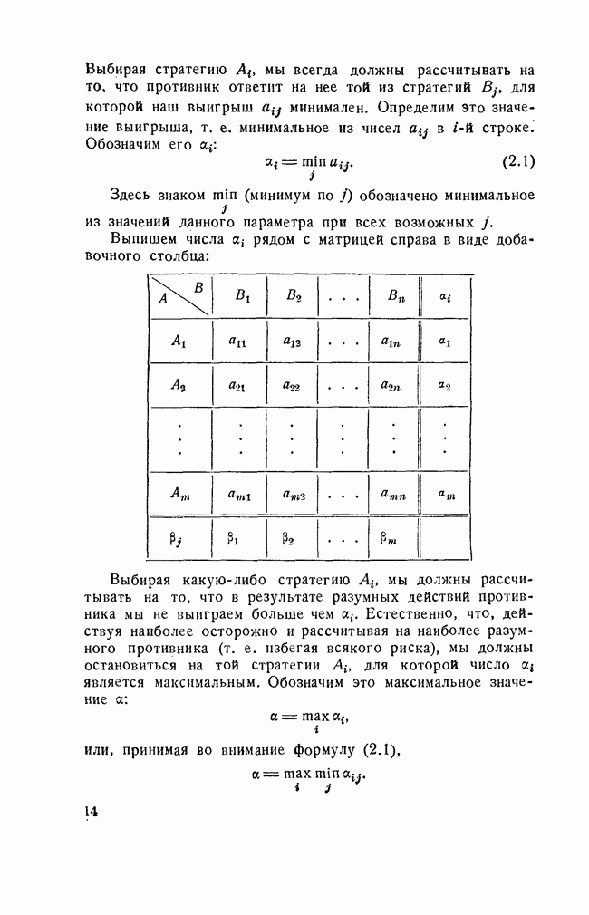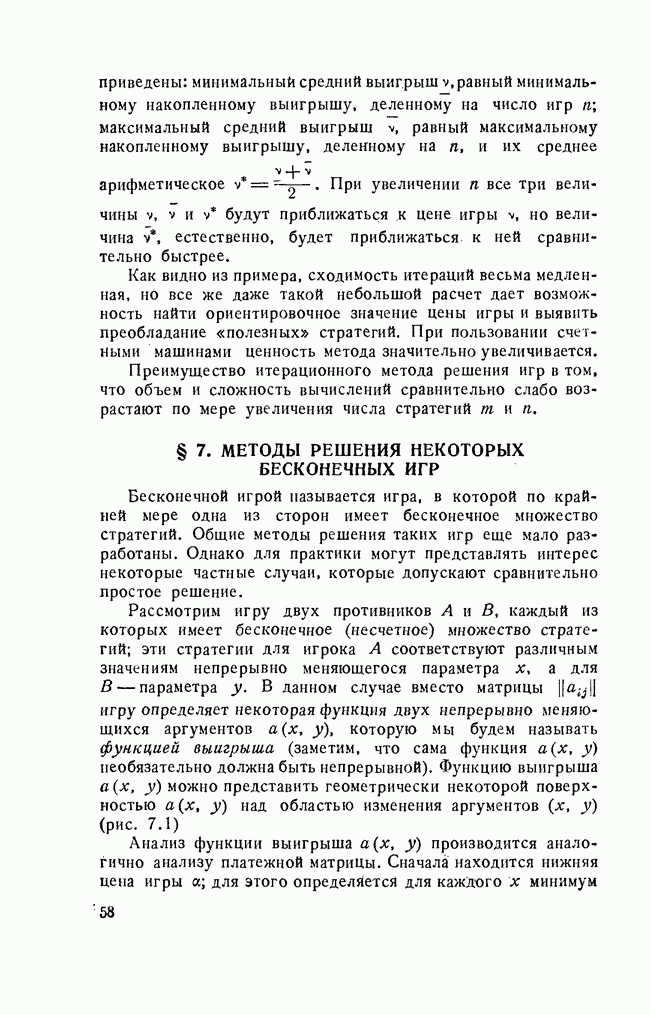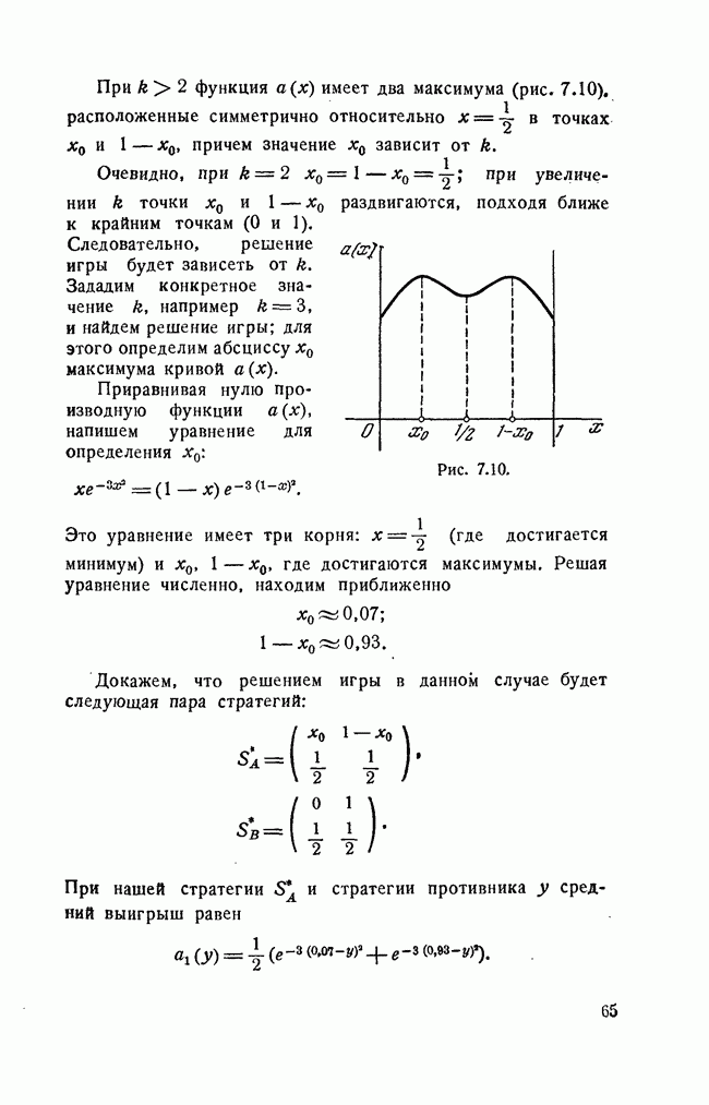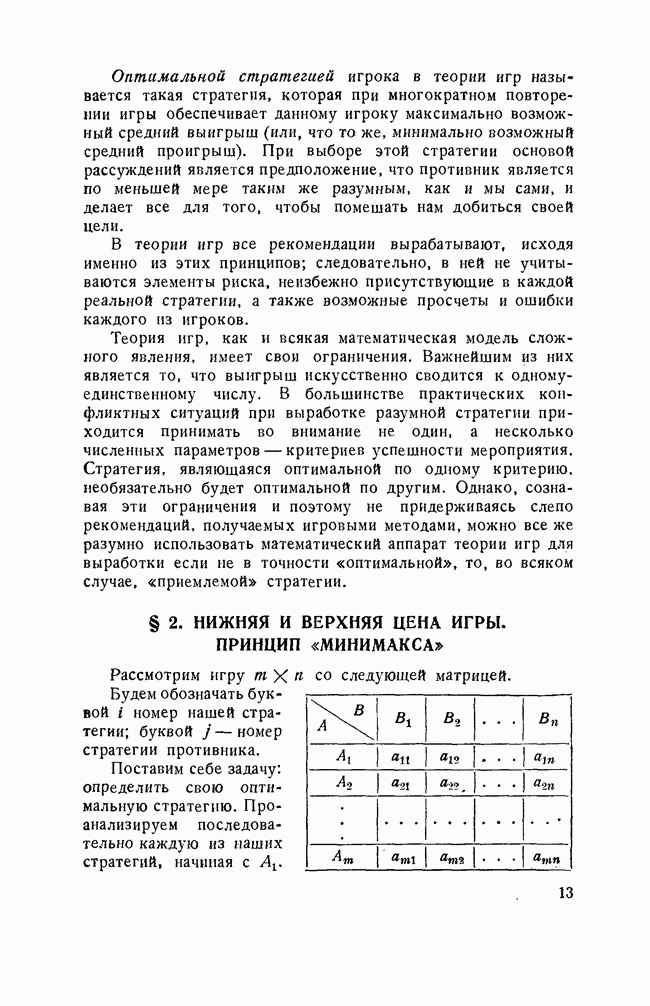 Она отличается тем свойством, что, каковы бы ни были действия противника (если только он не выходит за пределы своих «полезных» стратегий), выигрыш будет равен цене игры v. В игре 2X2 обе стратегии противника являются «полезными», — иначе игра имела бы решение в области чистых стратегий (седловую точку). Значит, если мы придерживаемся своей оптимальной стратегии