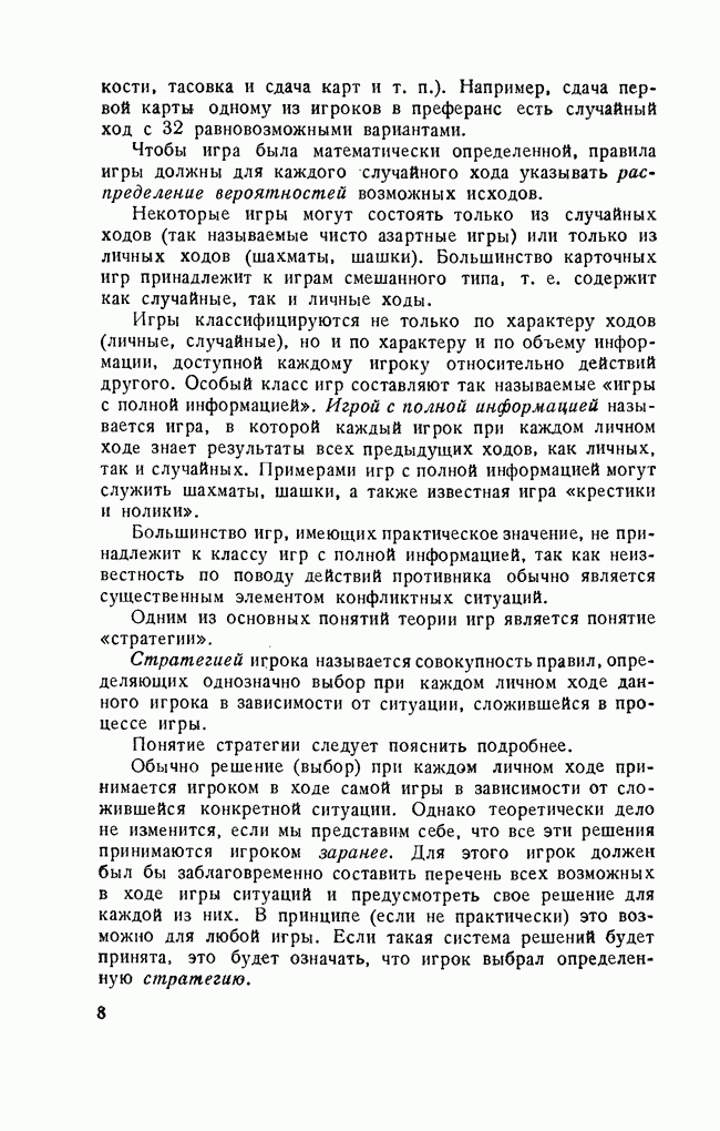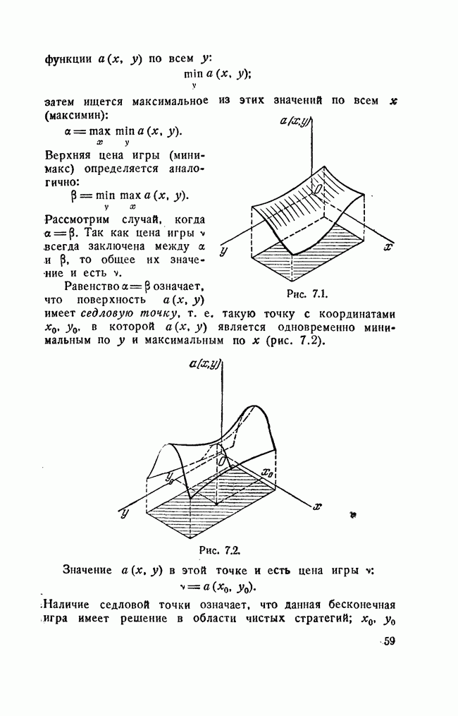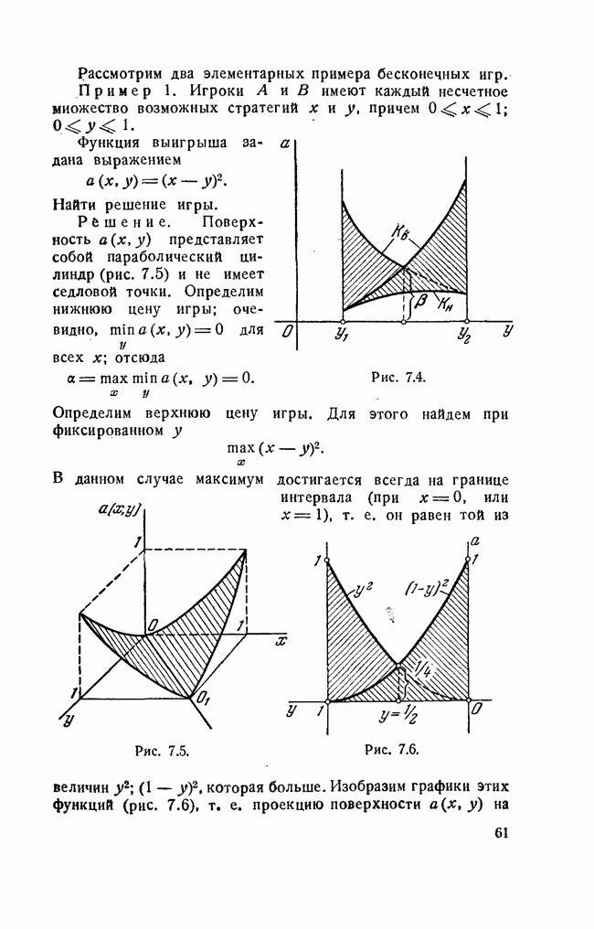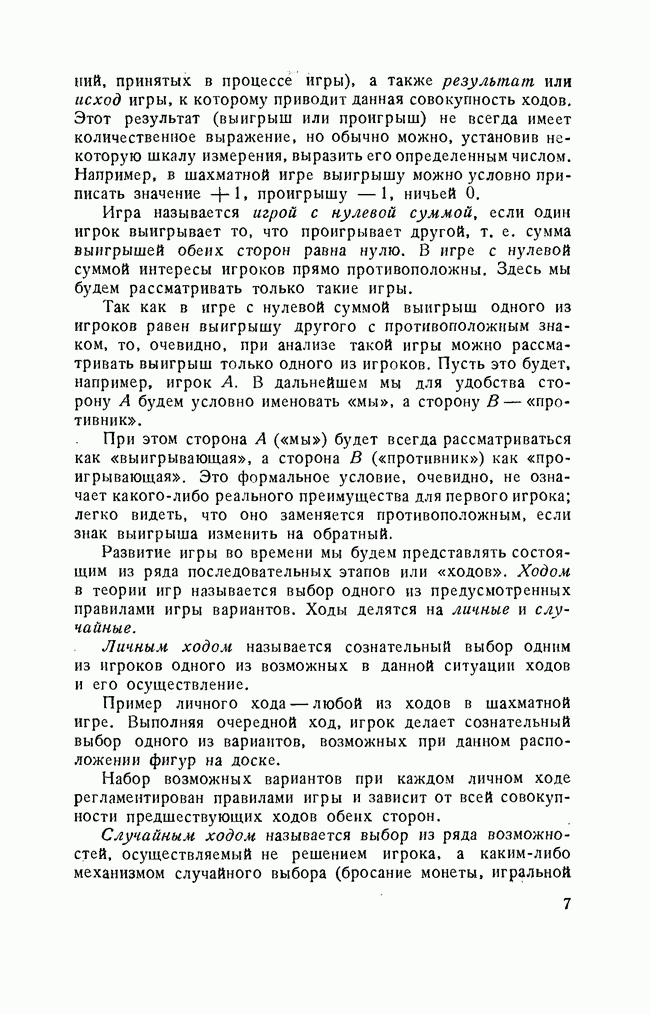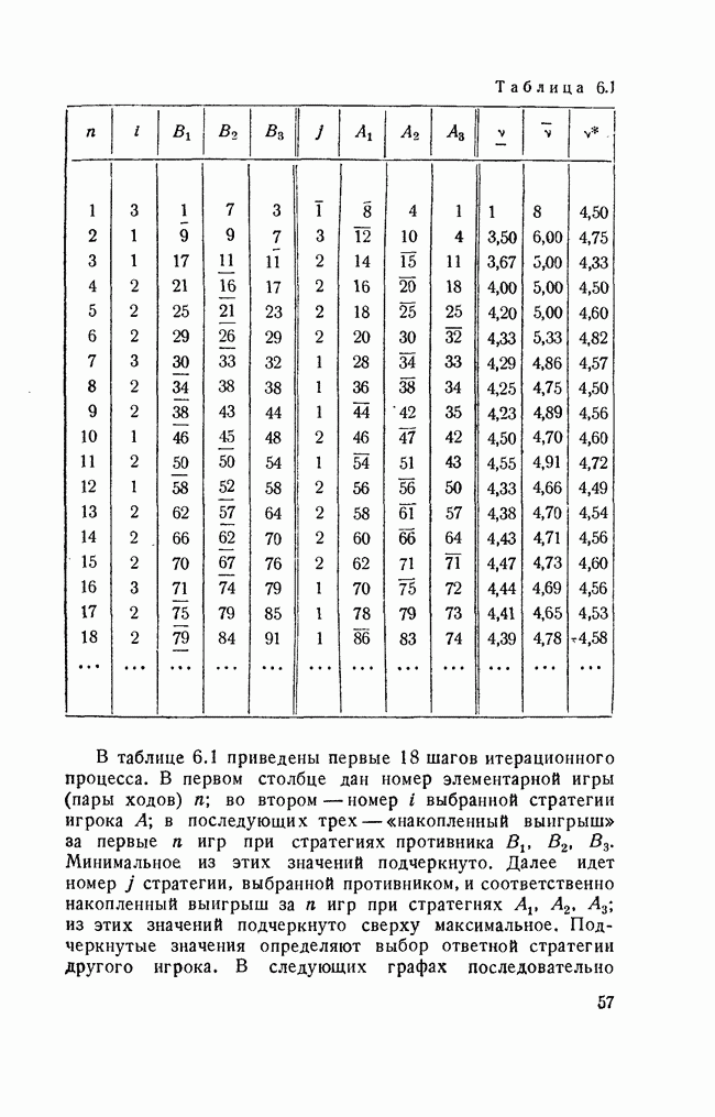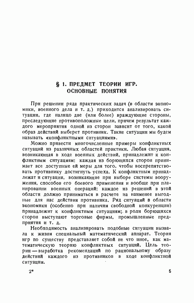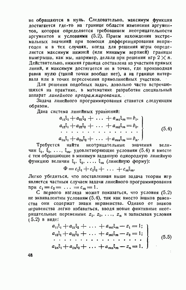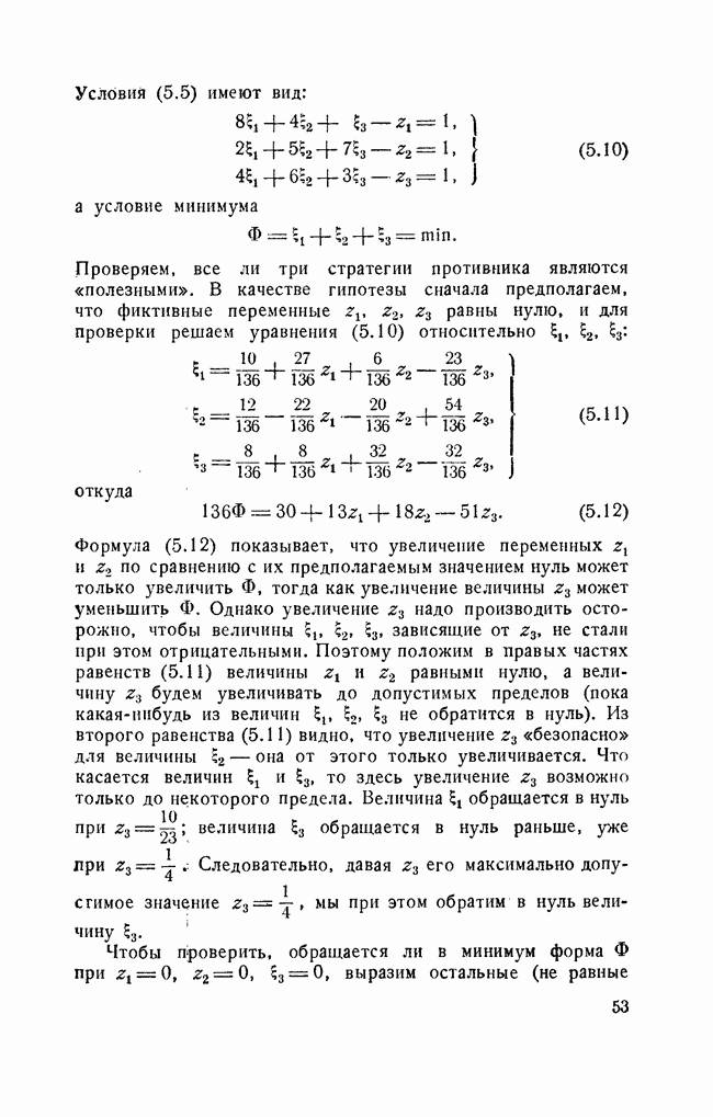 Она отличается тем свойством, что, каковы бы ни были действия противника (если только он не выходит за пределы своих «полезных» стратегий), выигрыш будет равен цене игры v. В игре 2X2 обе стратегии противника являются «полезными», — иначе игра имела бы решение в области чистых стратегий (седловую точку). Значит, если мы придерживаемся своей оптимальной стратегии