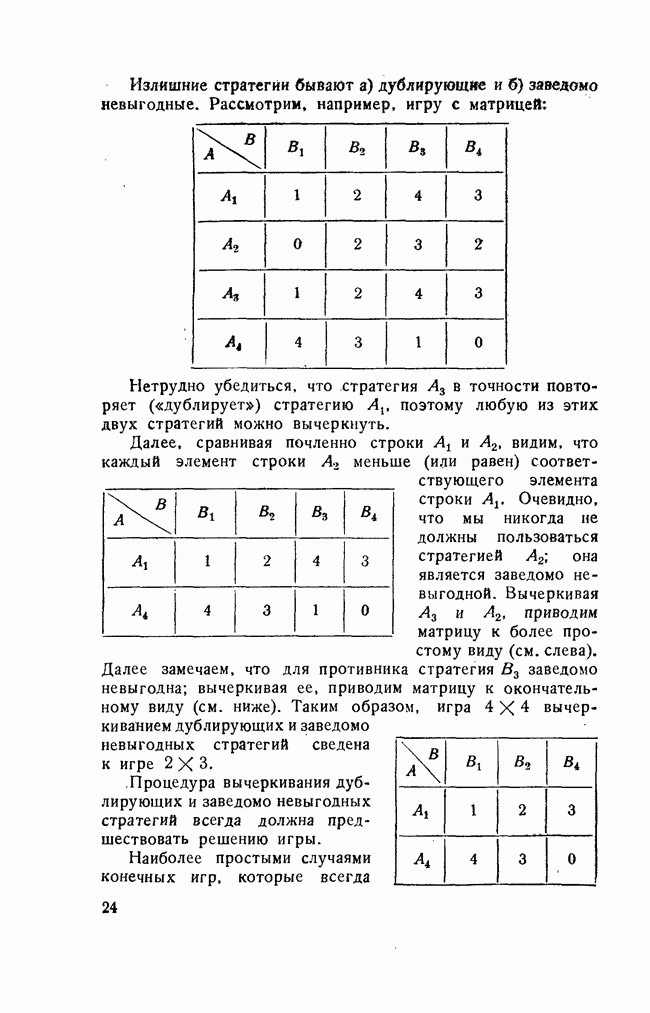 Из матрицы видно, что стратегия и заранее). Вычеркиванием стратегии