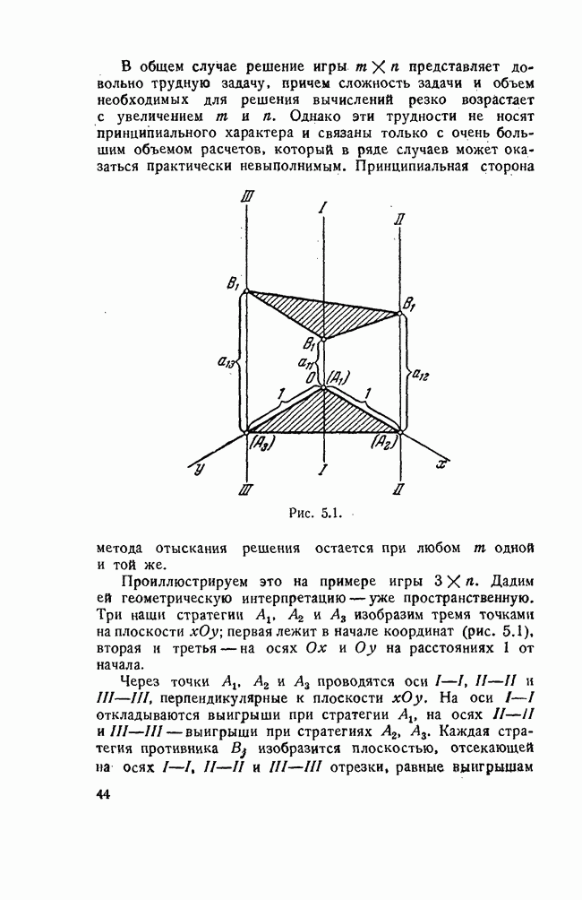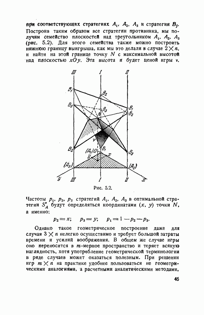 Рис. 4.3. В случае, когда заведомо невыгодная стратегия имеется у противника, геометрическая интерпретация имеет вид, представленный на рис. 4.4.