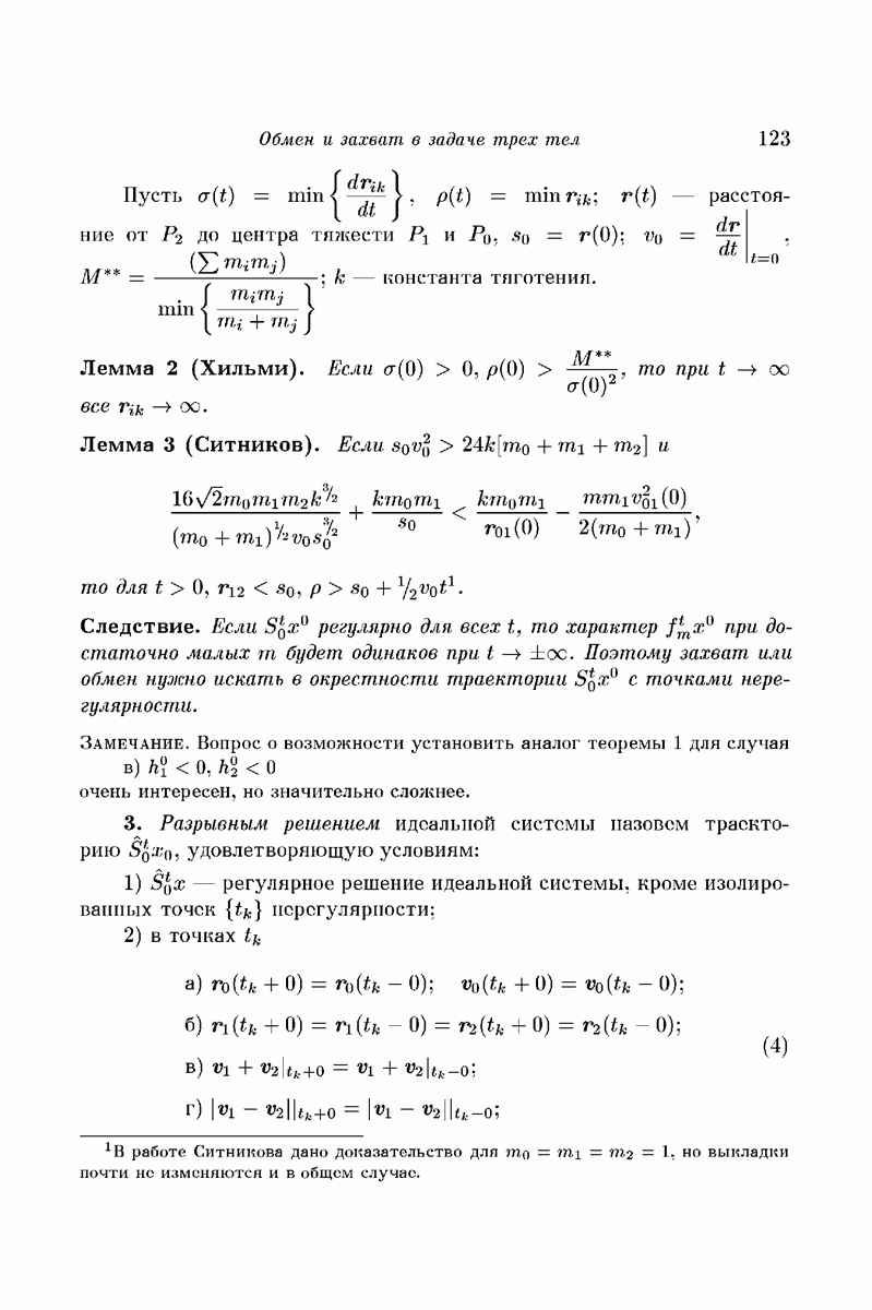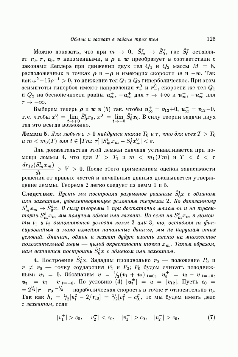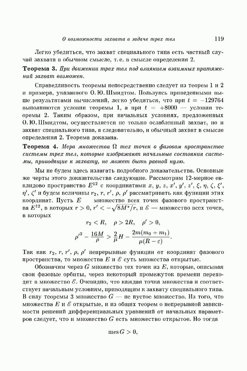 фиксированным и мало изменяя начальные данные, мы не нарушим этих условий. Значит, обмен и захват будут иметь место на множестве положительной меры — целой окрестности точки