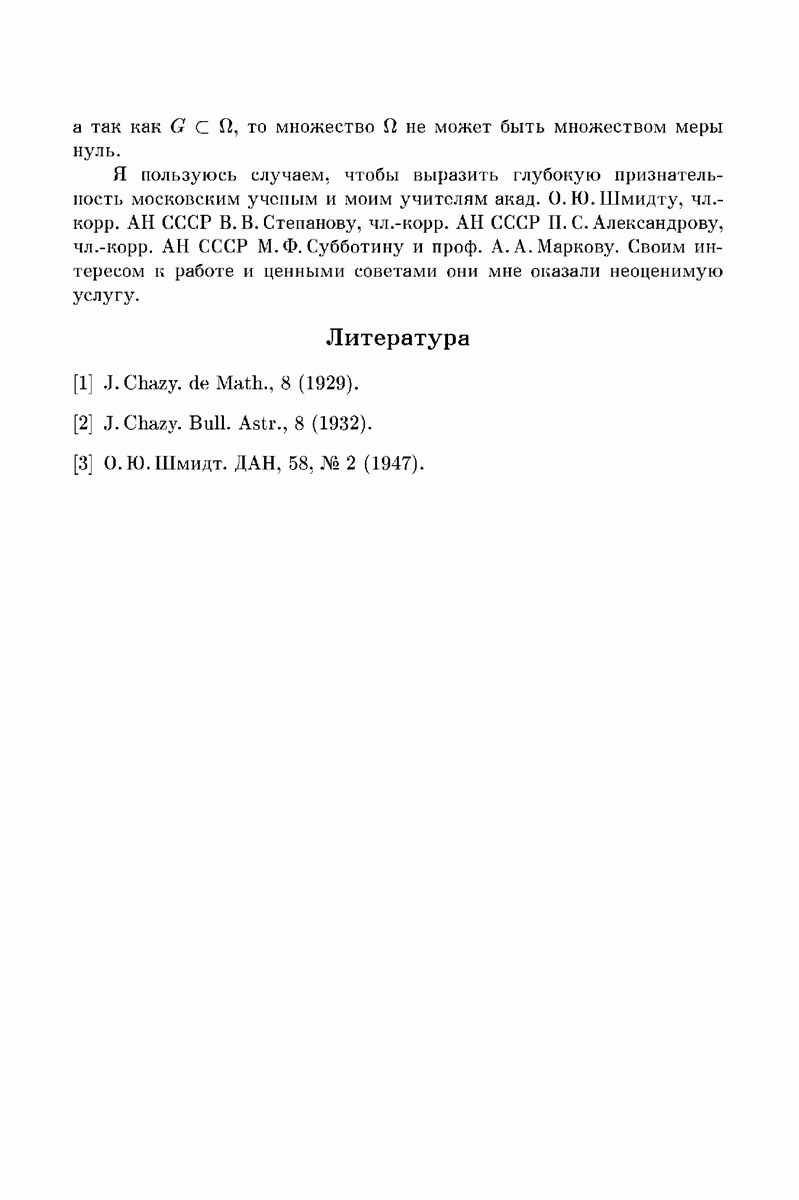 [4] М. J. Chazy. J. Math, pure et appl, 8 (1929); Bull. Astr., 8, 403 (1932).