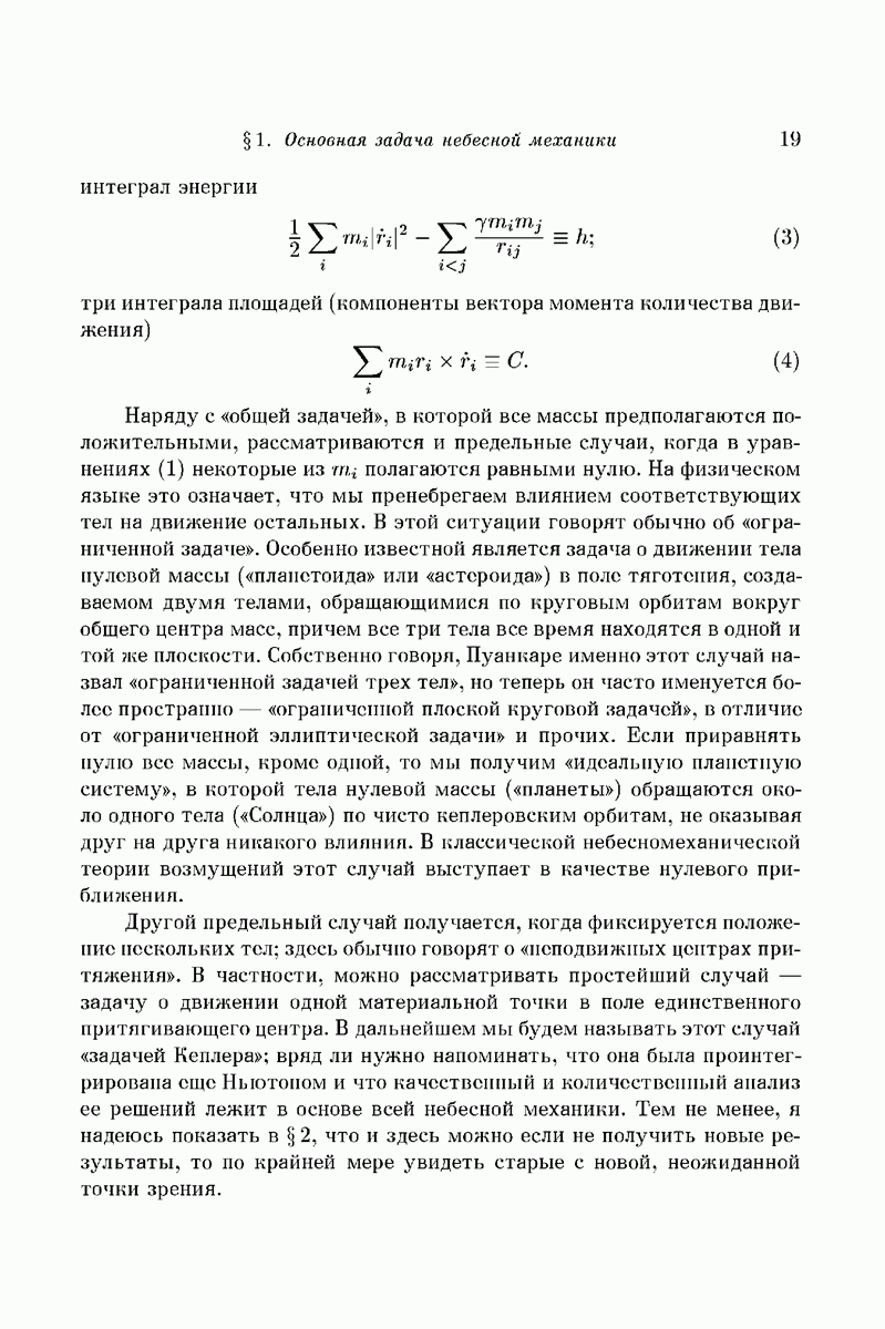совпадающее с ним, неподвижно. Интеграл энергии системы имеет вид (гравитационная постоянная равна 1)