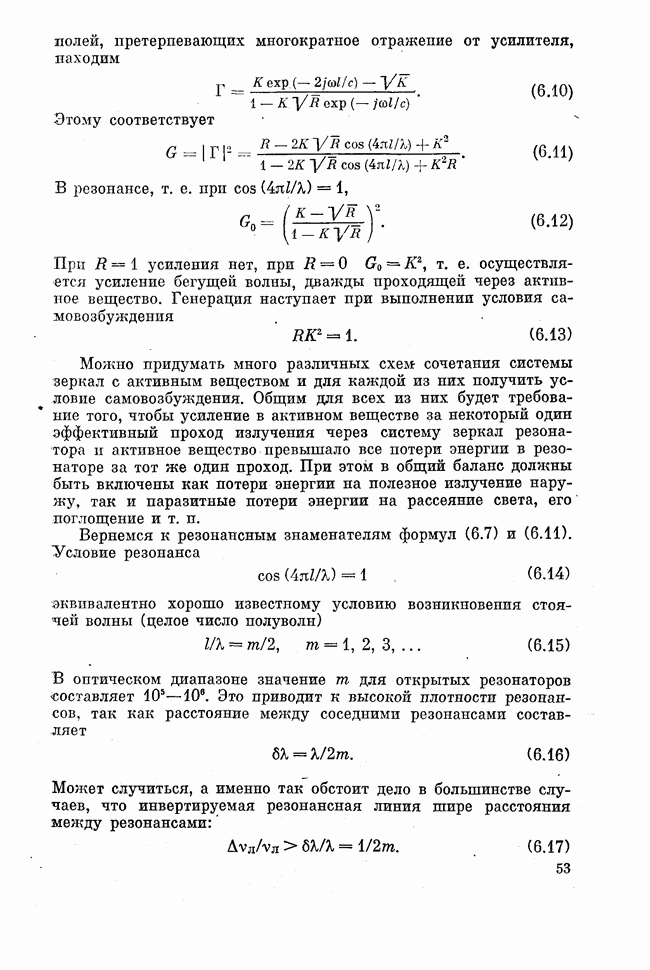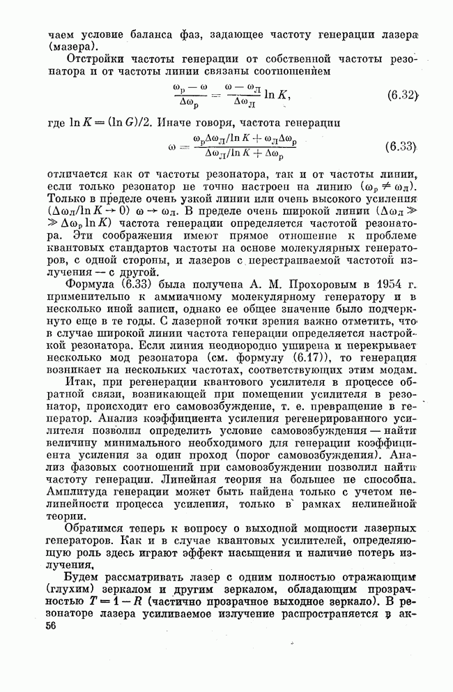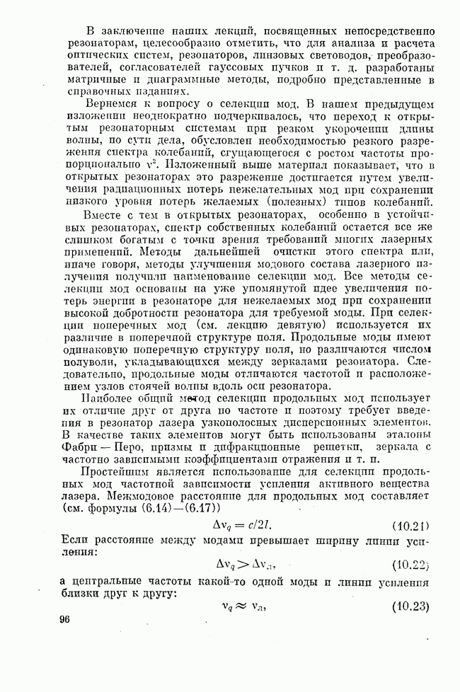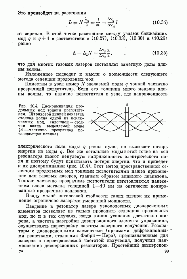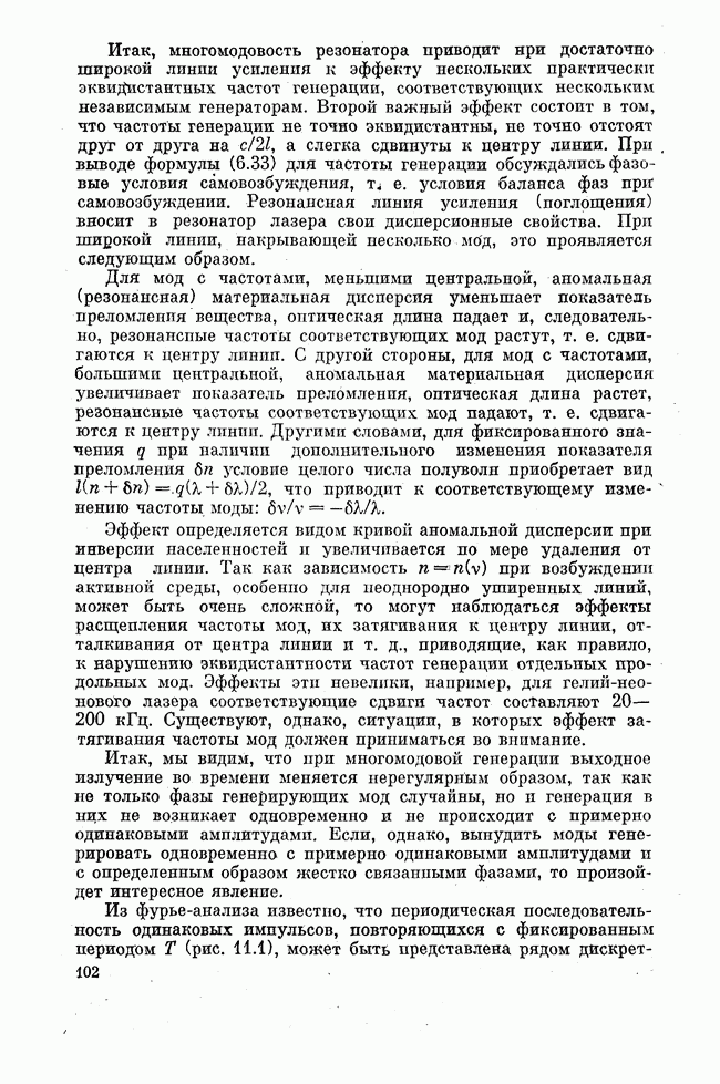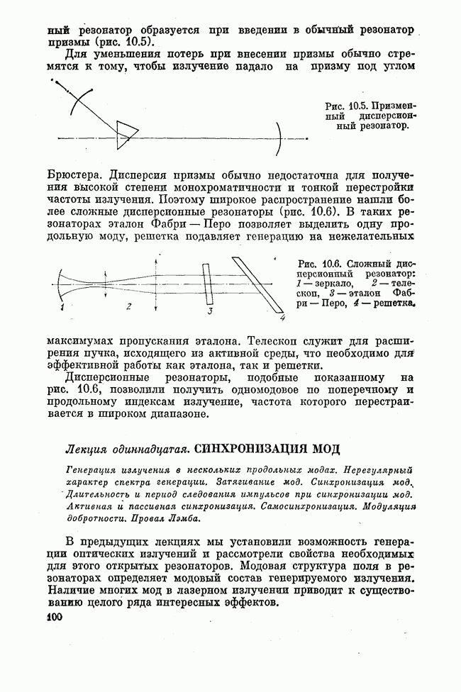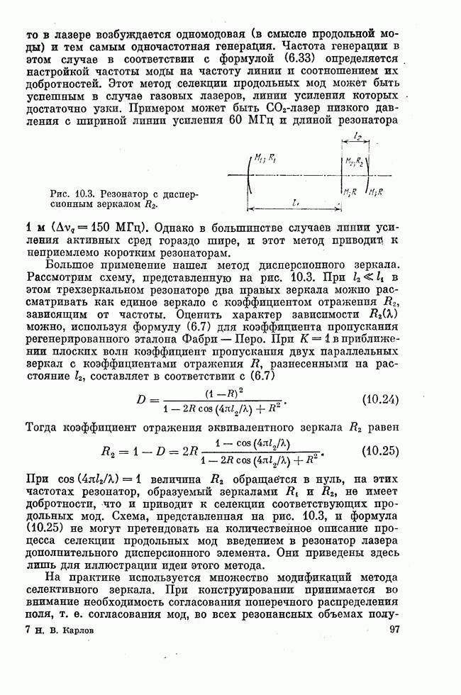 селективный (или, как чаще говорят, дисперсионный резонатор. Пусть для простоты рассуждений резонатор является одномодовым и одночастотным. При настройке такого резонатора на одну определенную частоту в пределах линии флуоресценции в силу хорошо известного нам эффекта положительной обратной связи именно на этой частоте происходит излучательное опустошение соответствующего верхнего уровня терма