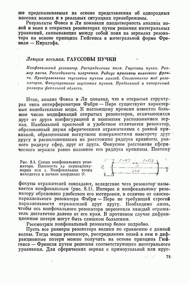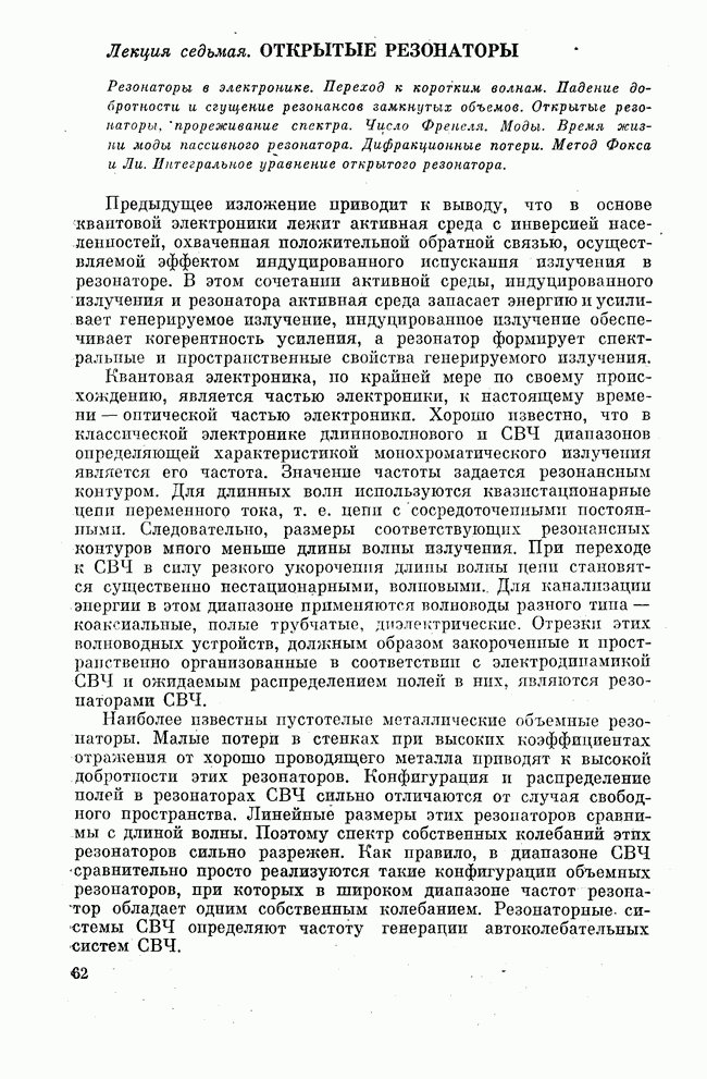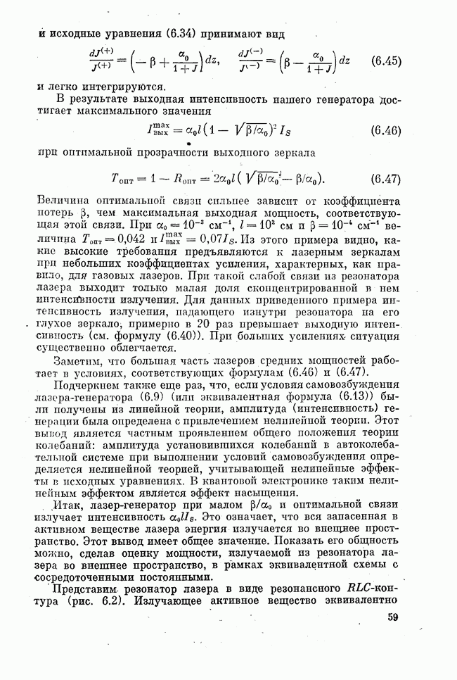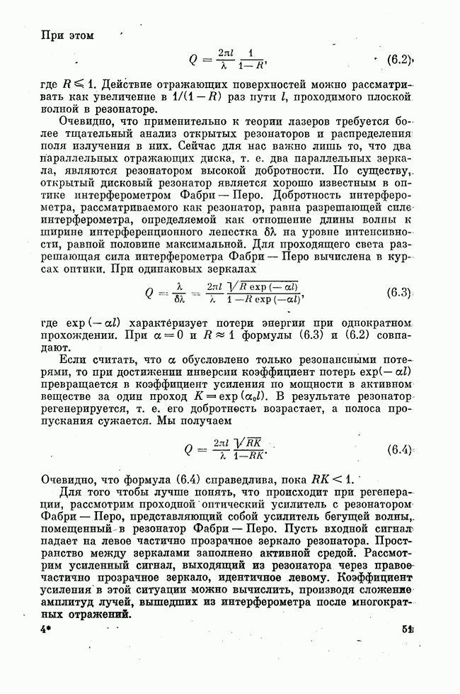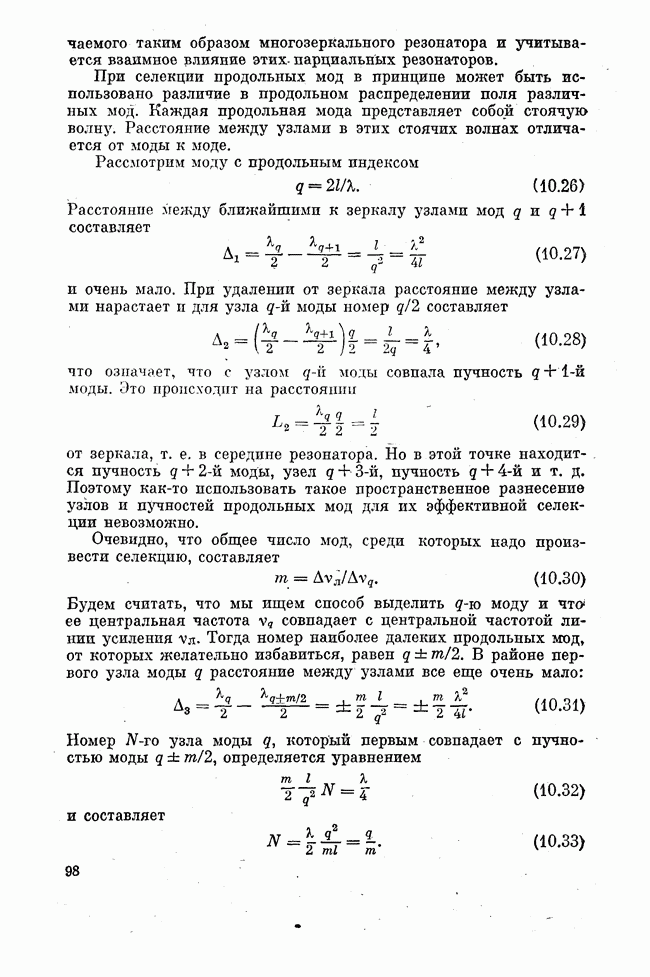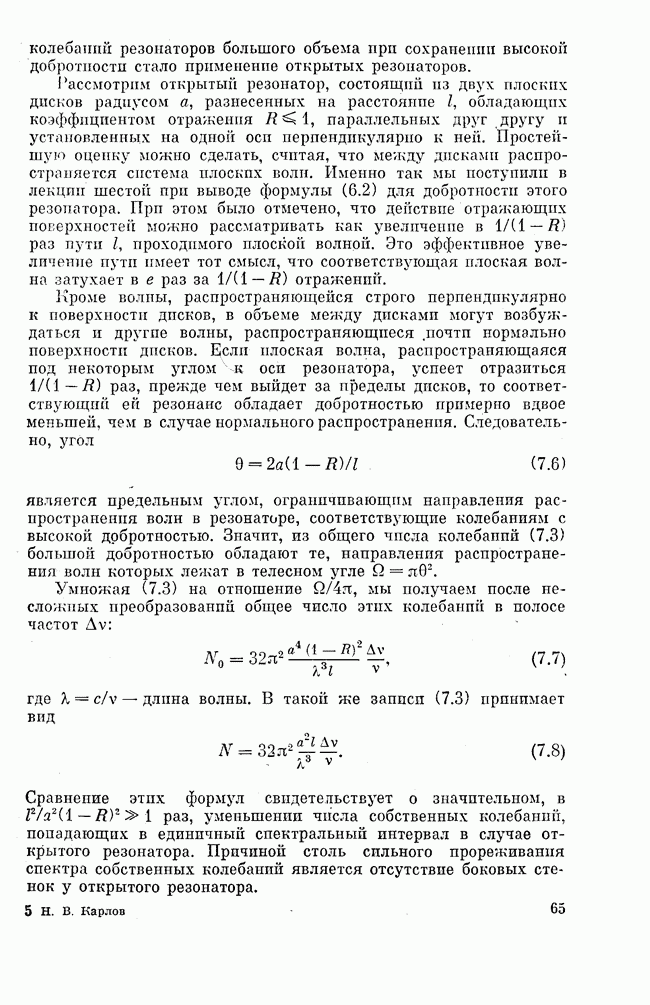 селективный (или, как чаще говорят, дисперсионный резонатор. Пусть для простоты рассуждений резонатор является одномодовым и одночастотным. При настройке такого резонатора на одну определенную частоту в пределах линии флуоресценции в силу хорошо известного нам эффекта положительной обратной связи именно на этой частоте происходит излучательное опустошение соответствующего верхнего уровня терма