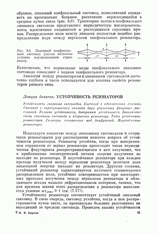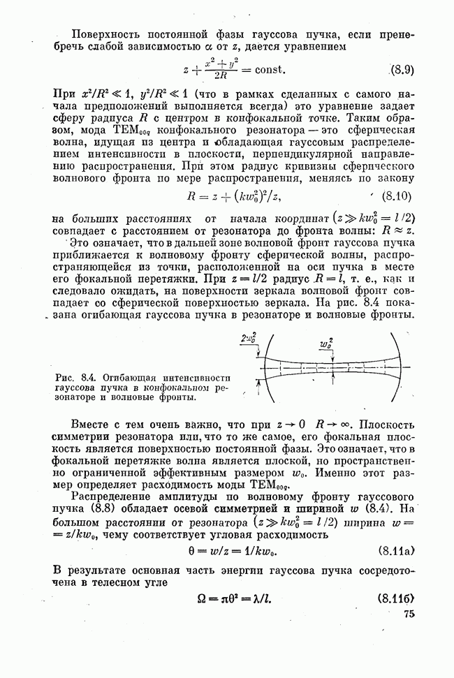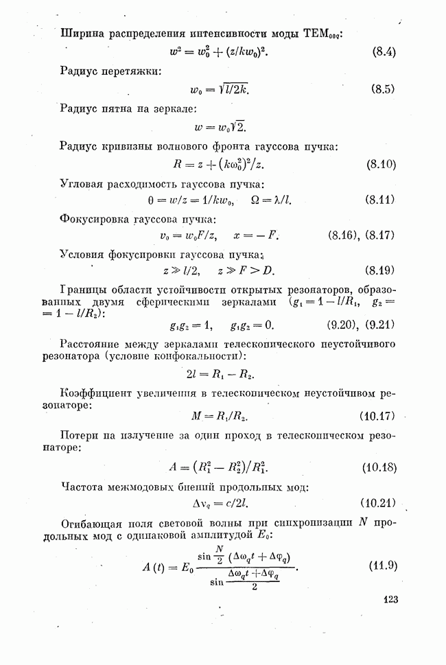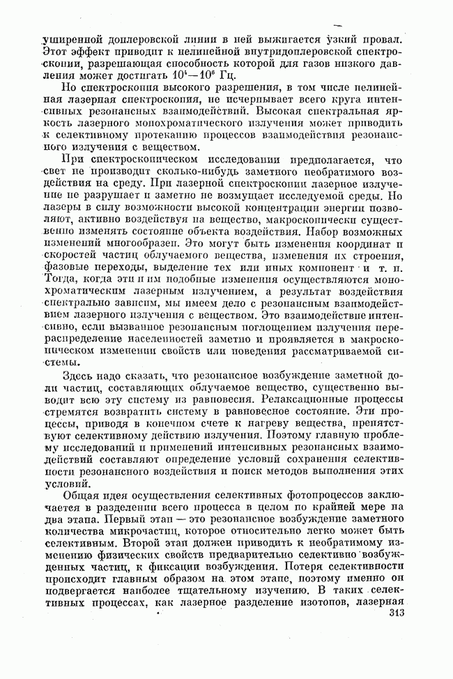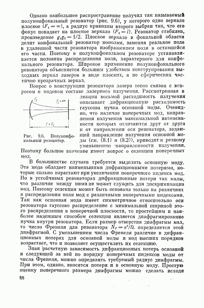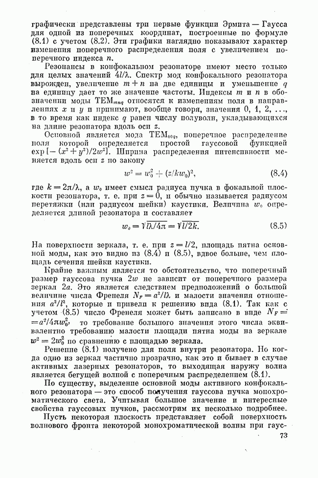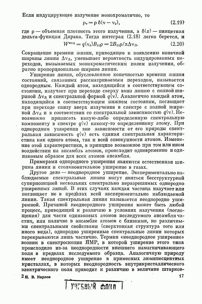 селективный (или, как чаще говорят, дисперсионный резонатор. Пусть для простоты рассуждений резонатор является одномодовым и одночастотным. При настройке такого резонатора на одну определенную частоту в пределах линии флуоресценции в силу хорошо известного нам эффекта положительной обратной связи именно на этой частоте происходит излучательное опустошение соответствующего верхнего уровня терма