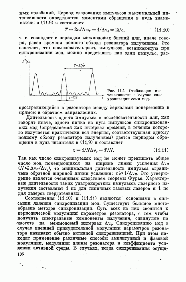 (синхронизация мод), в одночастотное излучение перестраиваемой частоты перекачивается энергия, накопленная всеми колебательными уровнями терма