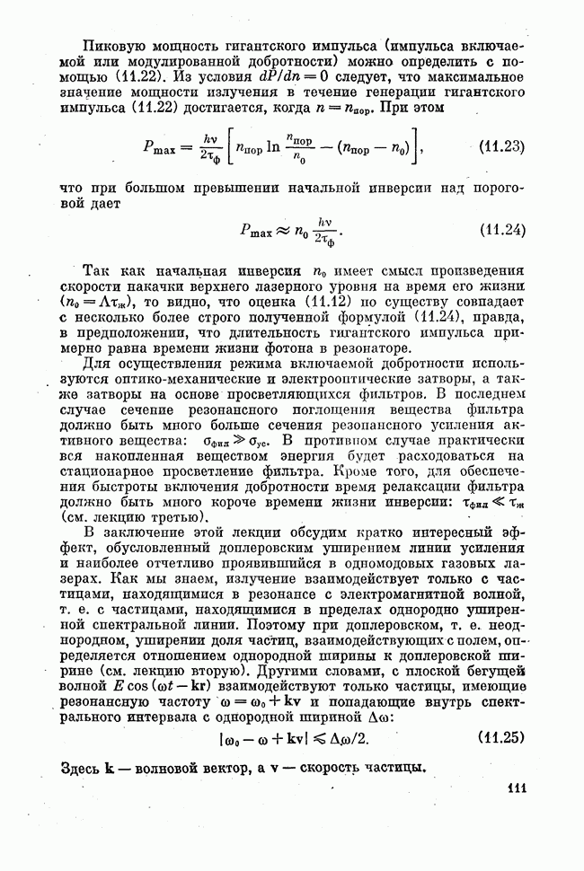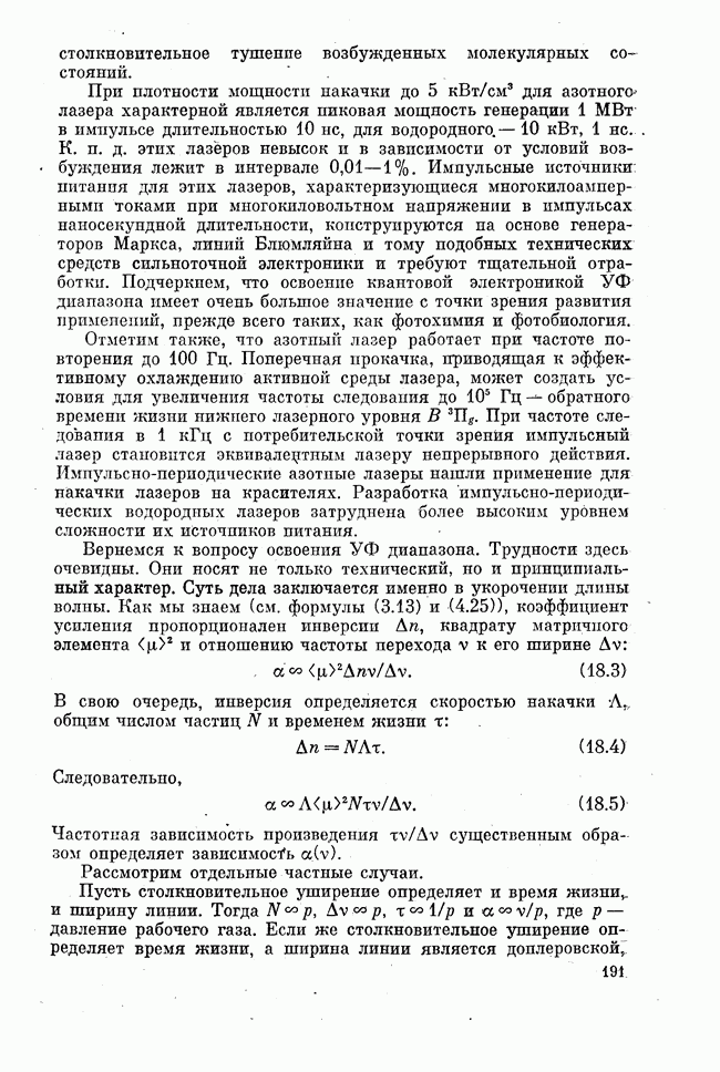 -поглощепия. Несмотря на свою приблизительность, оценка (22.8) оказывается хорошо описывающей реальную ситуацию. При характерном времени интеркомбинационной конверсии 10—100 нс эта оценка приводит к наносекундному диапазону длительности генерации тех красителей, которые не могут работать в непрерывном режиме: