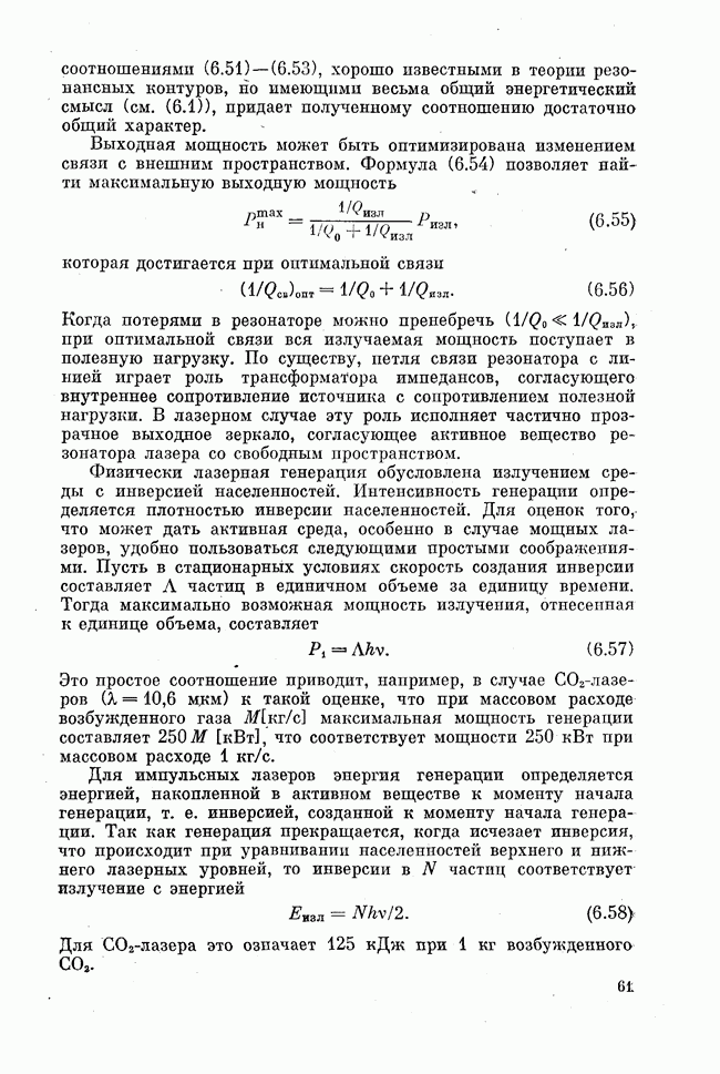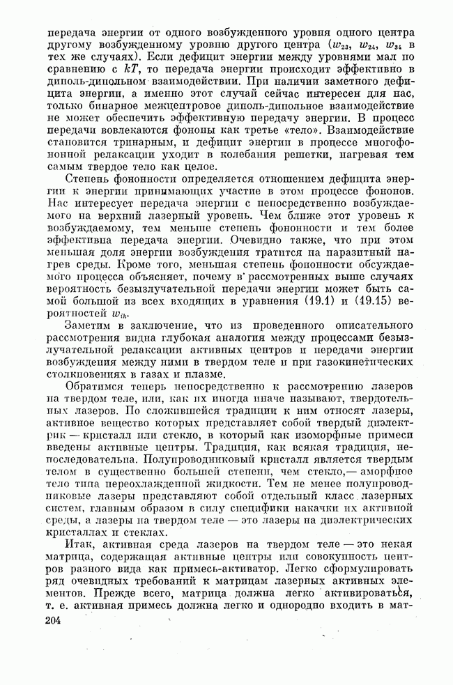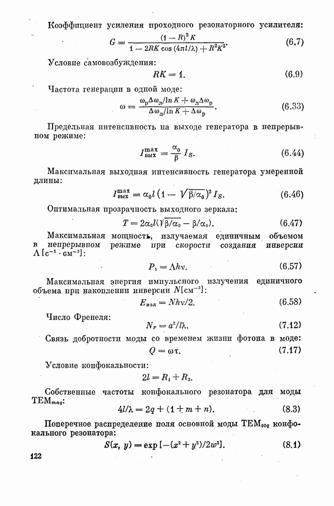 Подчеркнем, что все проведенное выше рассмотрение пороговых значений интенсивности (энергии) накачки выполнепо без учета паразитных потерь энергии в резонаторе лазера и потерь энергии на полезное излучение из резонатора лазера и имело в виду так называемое «электронное» усиление, характерное, в принципе, для рассматриваемого активного вещества и способа накачки.