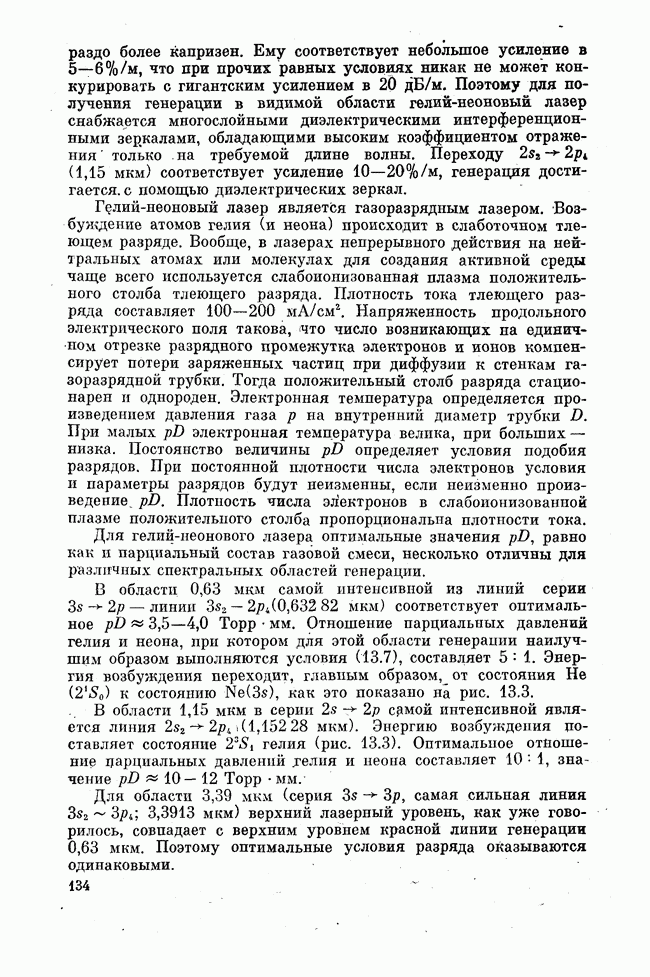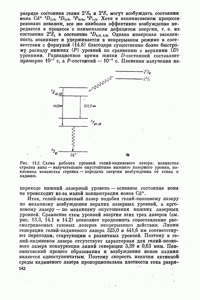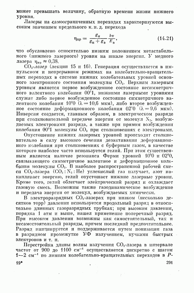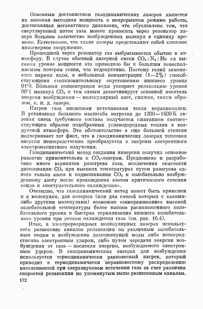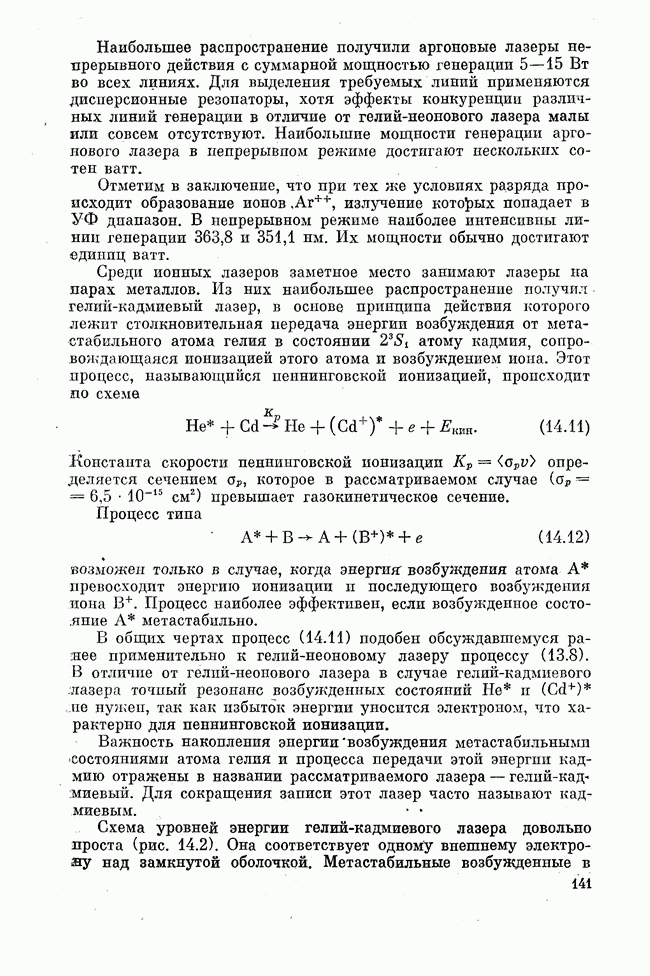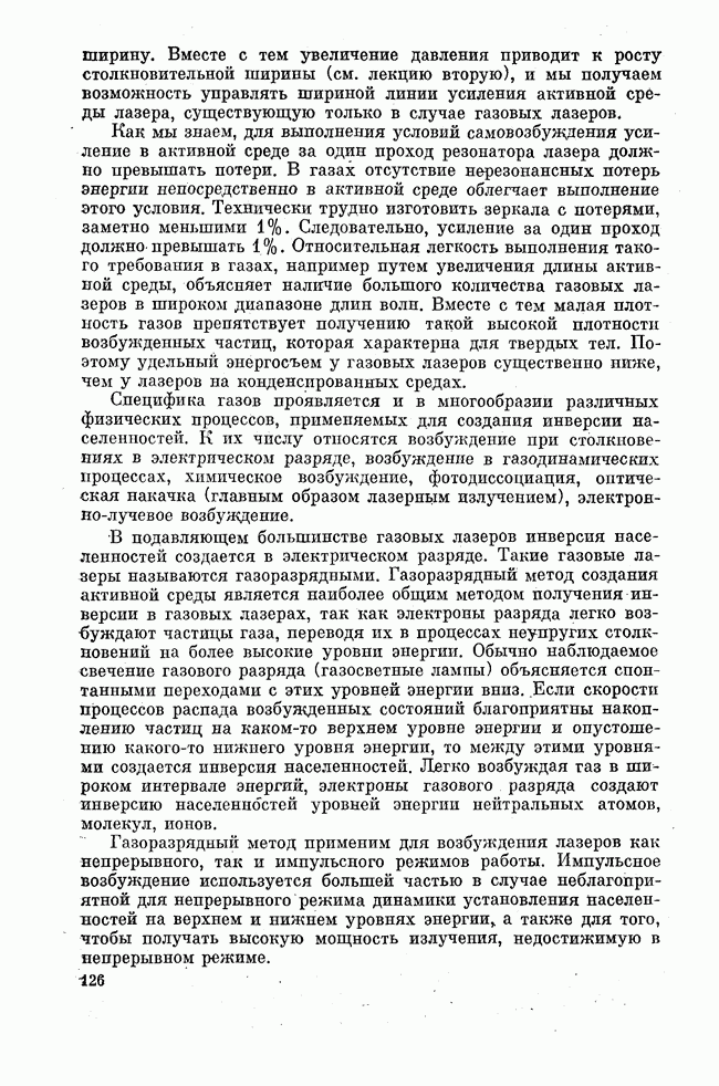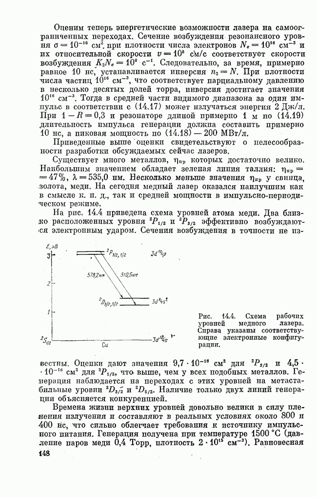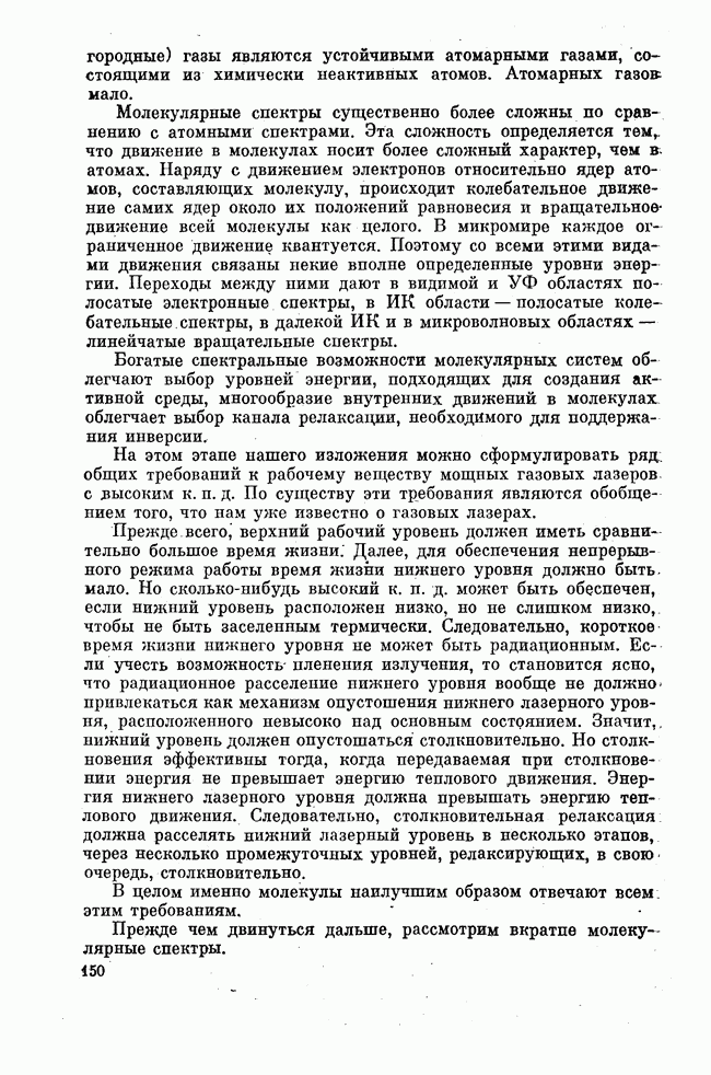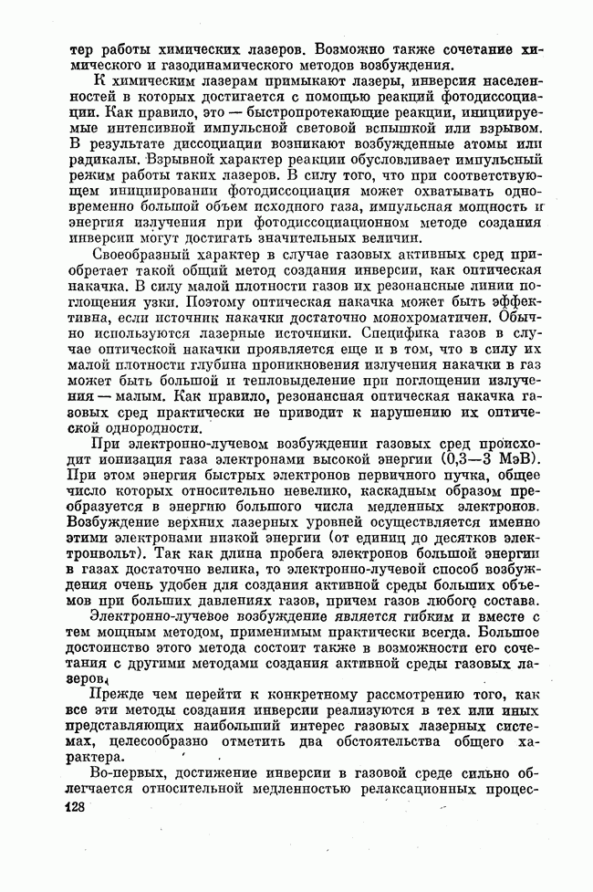 -состояниях, происходит по четырехуровневой схеме, подробно обсуждавшейся ранее применительно к твердотельным лазерам. Это, как мы хорошо знаем, существенно облегчает условия достижения инверсии.