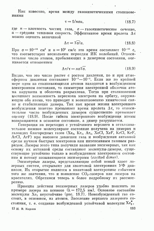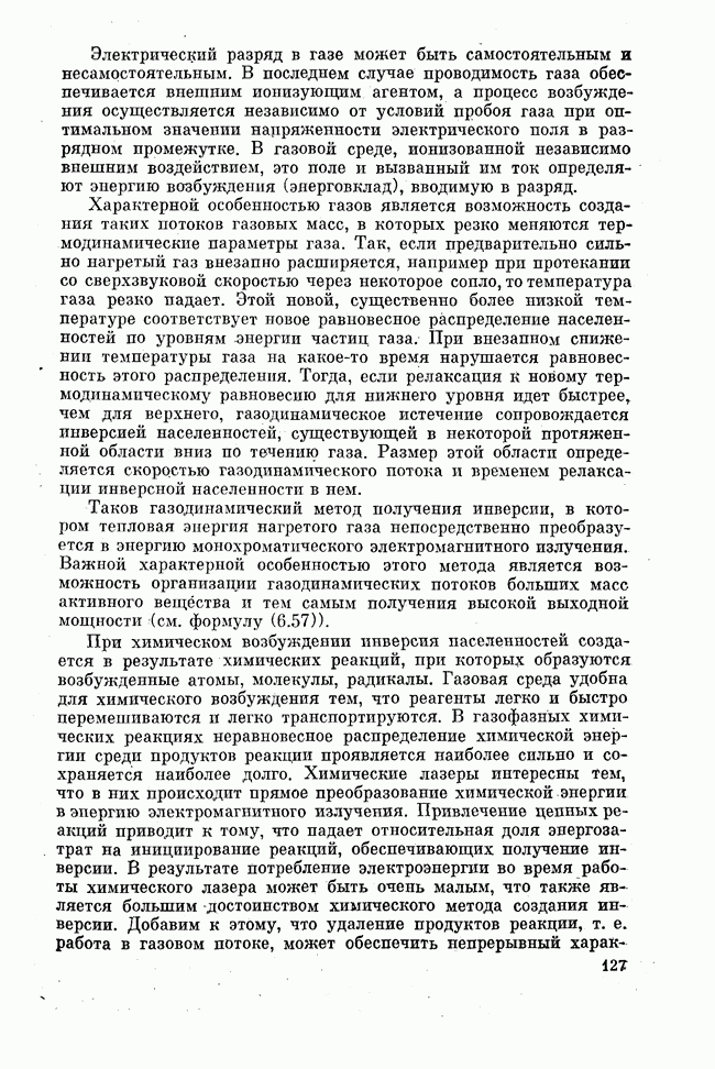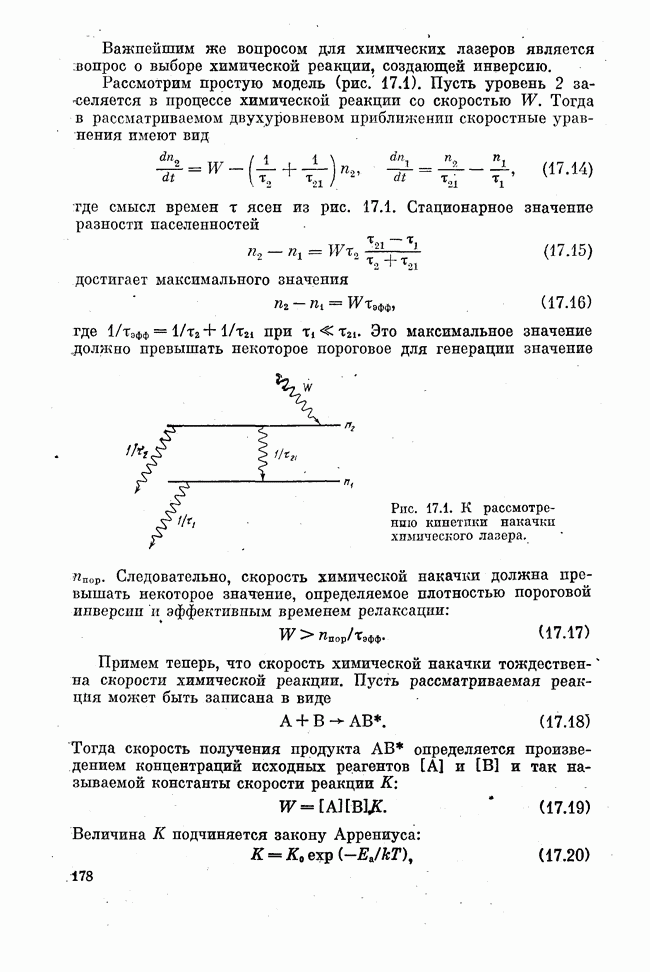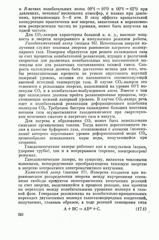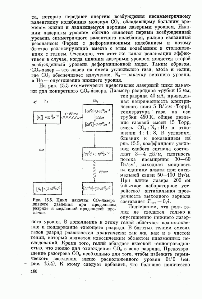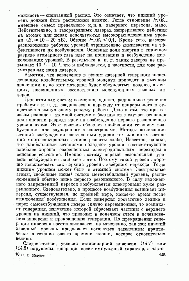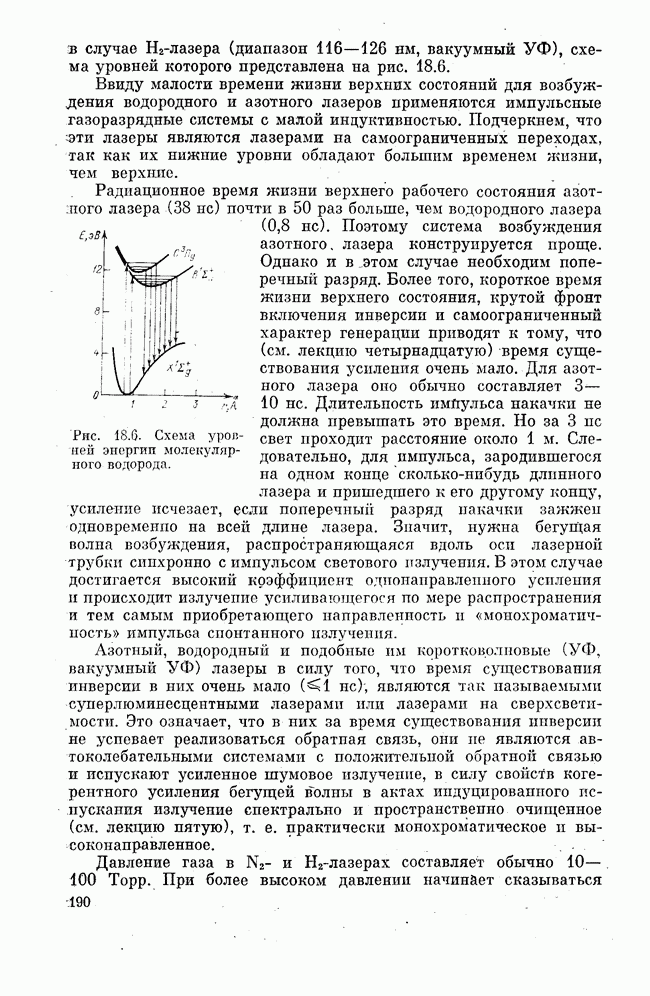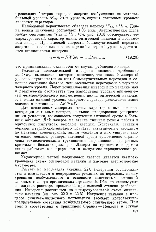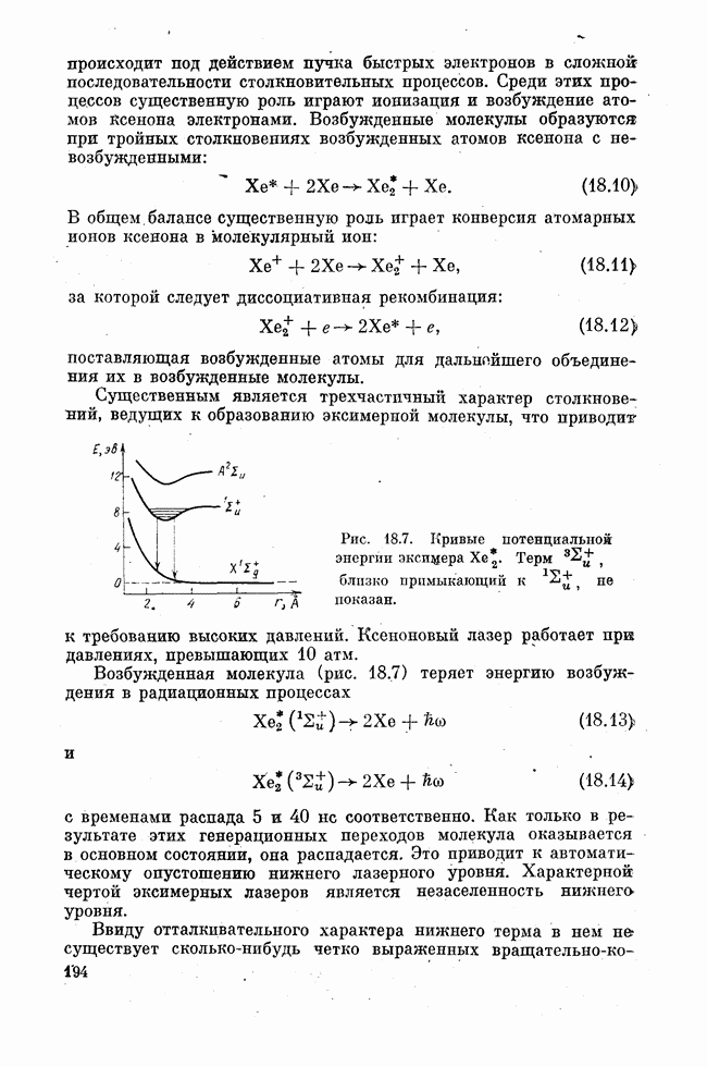 -состояниях, происходит по четырехуровневой схеме, подробно обсуждавшейся ранее применительно к твердотельным лазерам. Это, как мы хорошо знаем, существенно облегчает условия достижения инверсии.