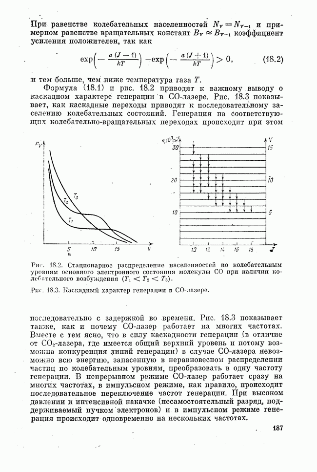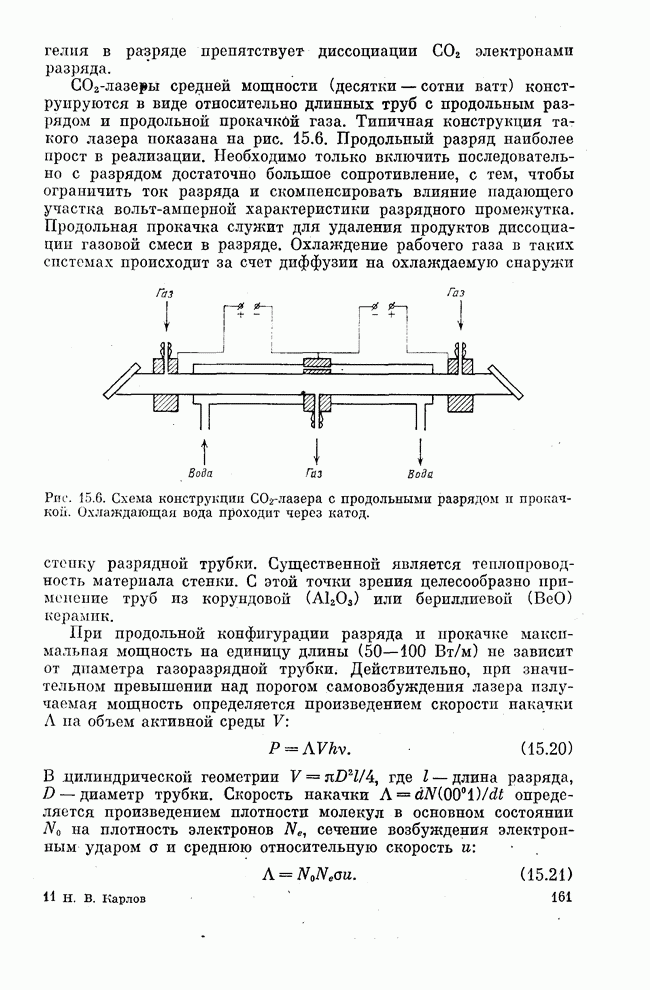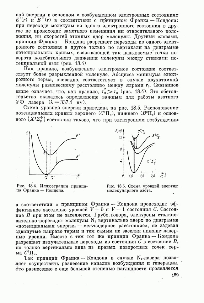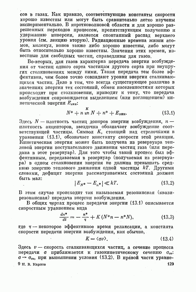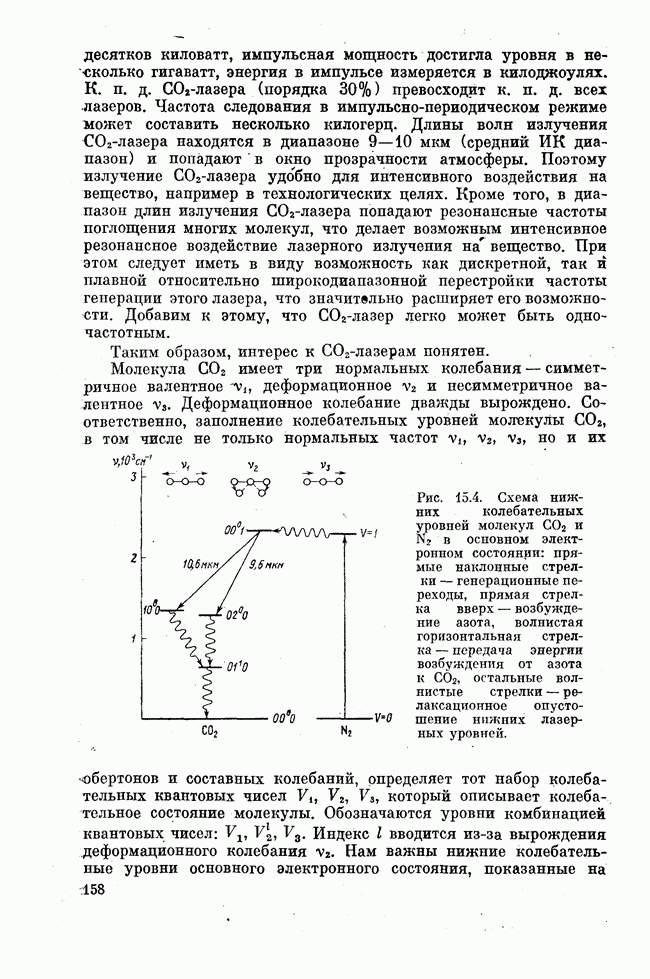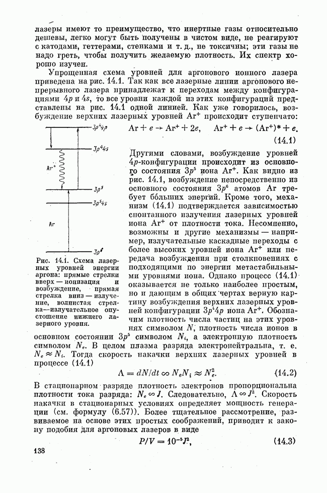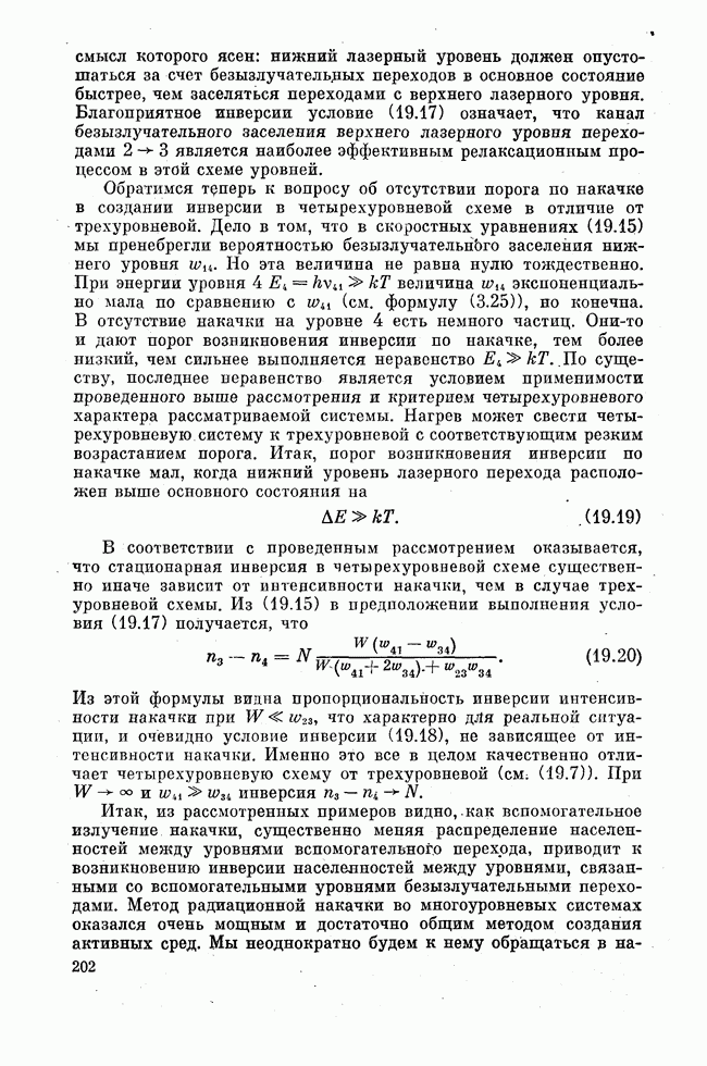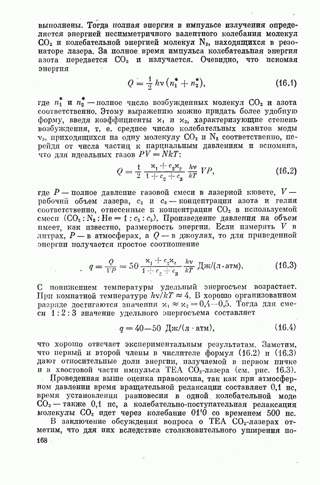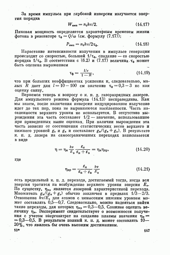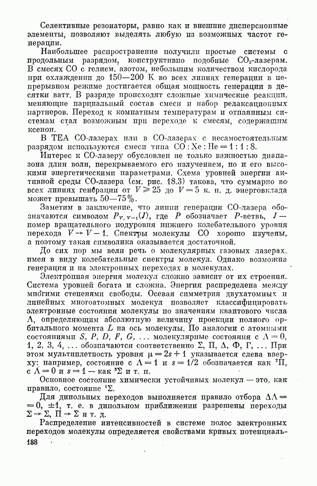 -состояниях, происходит по четырехуровневой схеме, подробно обсуждавшейся ранее применительно к твердотельным лазерам. Это, как мы хорошо знаем, существенно облегчает условия достижения инверсии.