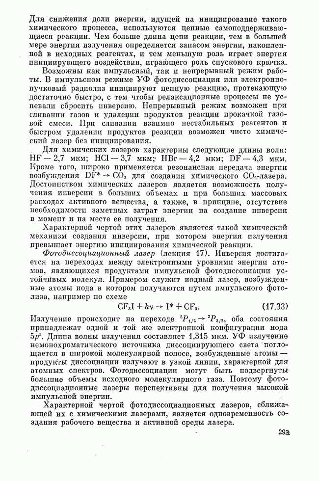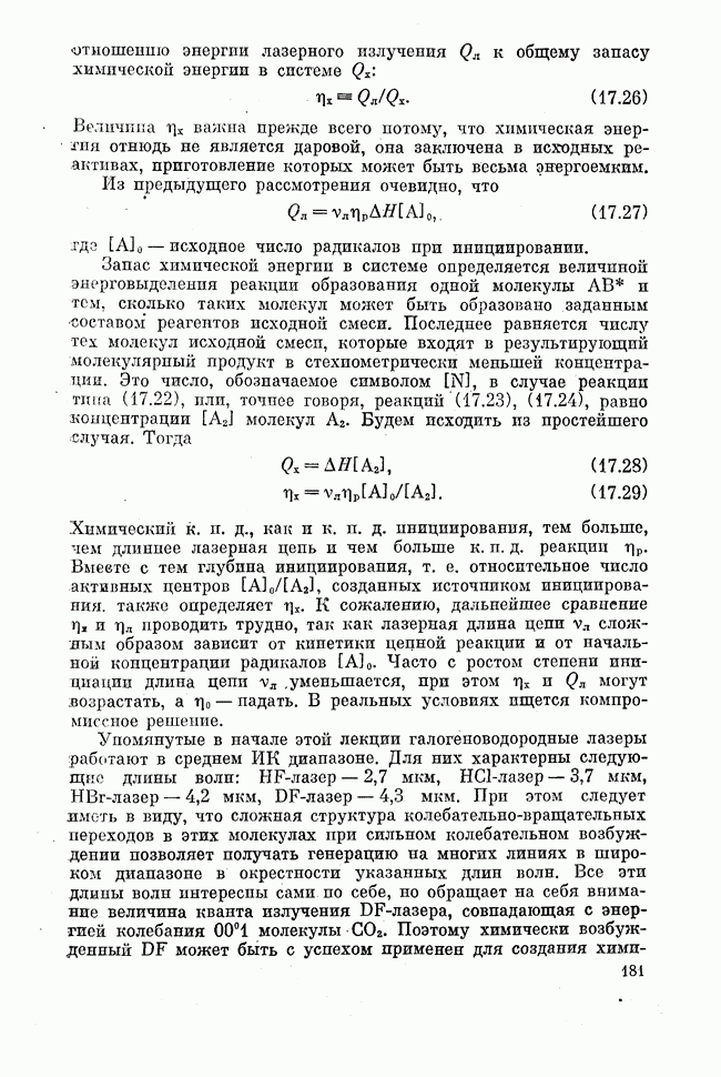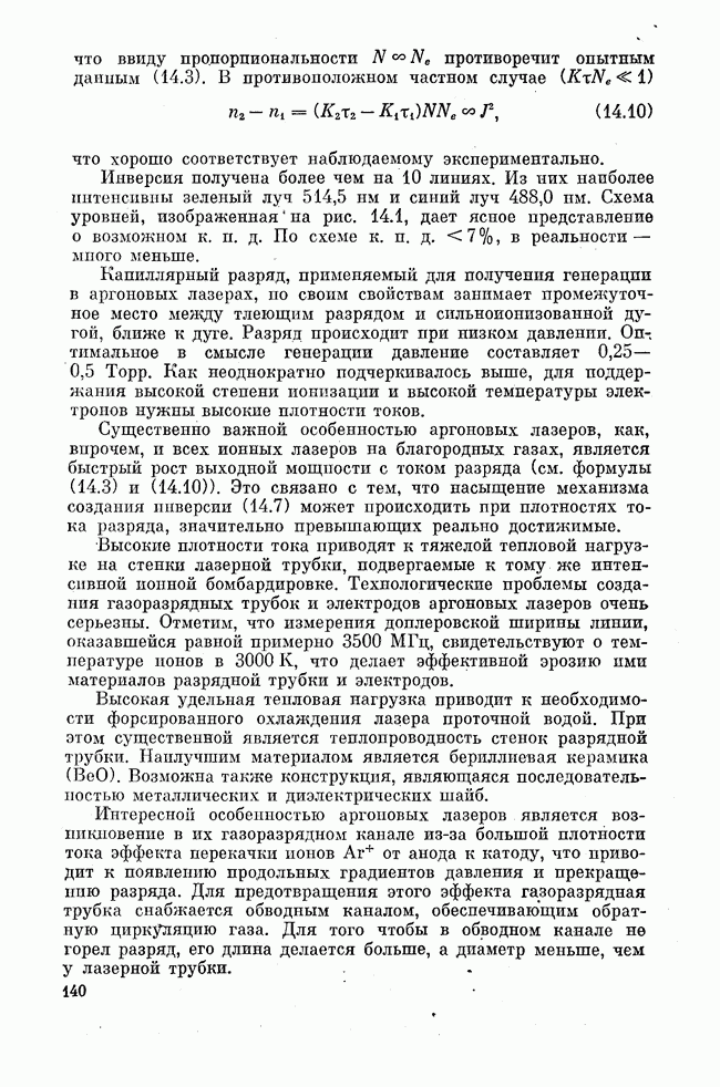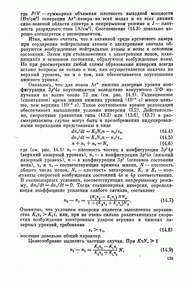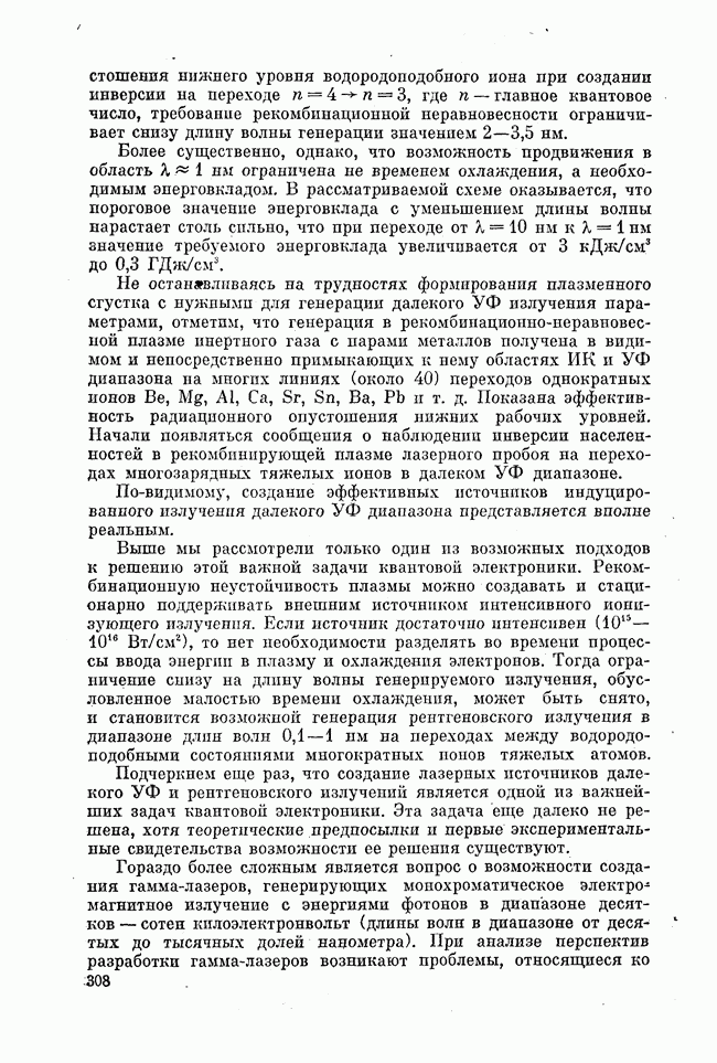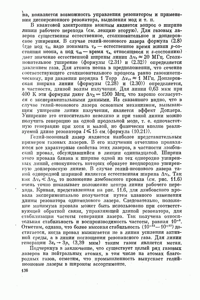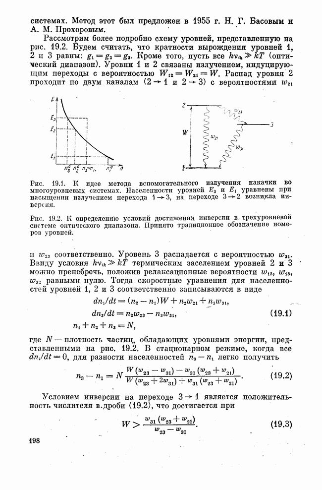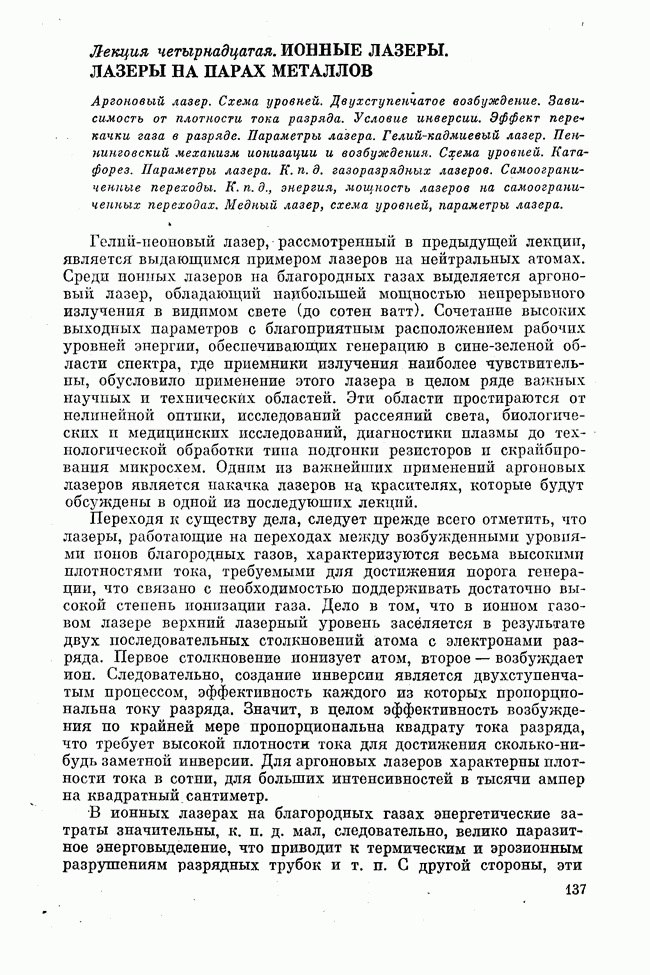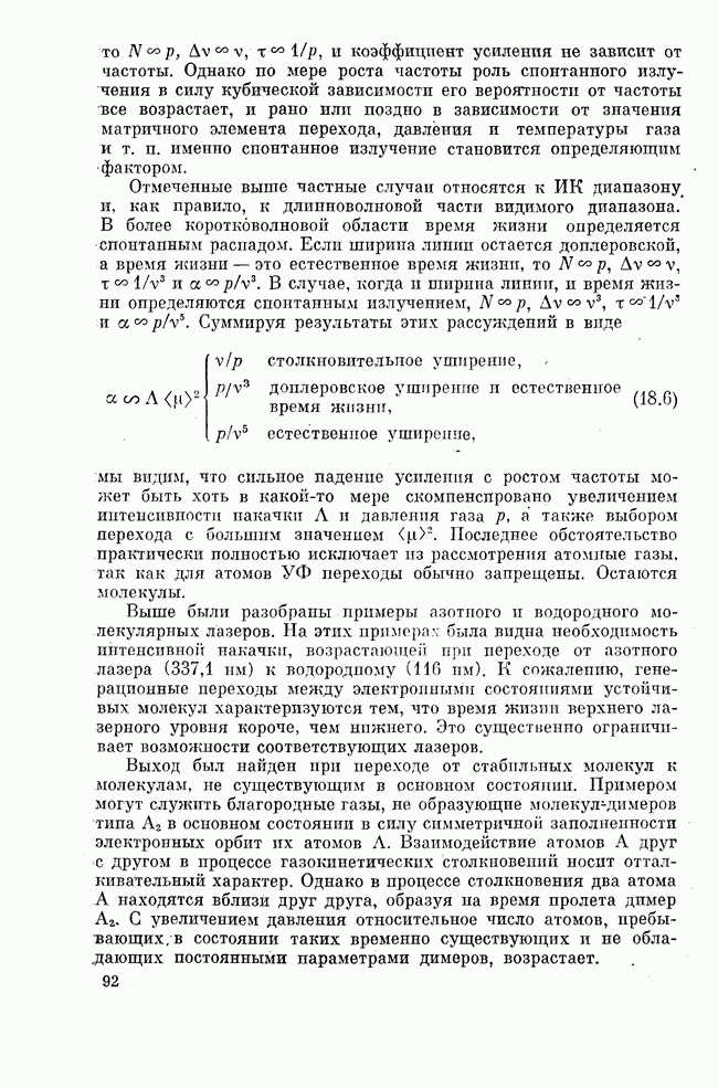 -состояниях, происходит по четырехуровневой схеме, подробно обсуждавшейся ранее применительно к твердотельным лазерам. Это, как мы хорошо знаем, существенно облегчает условия достижения инверсии.