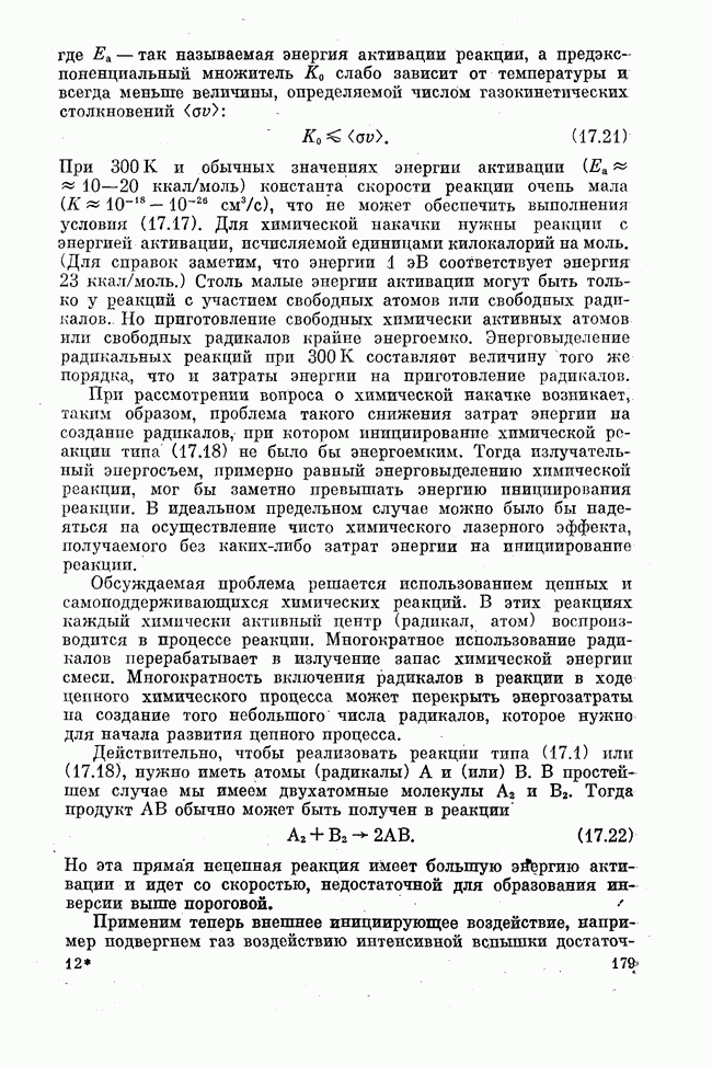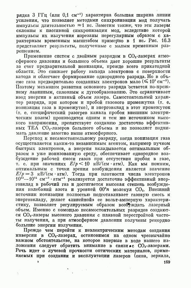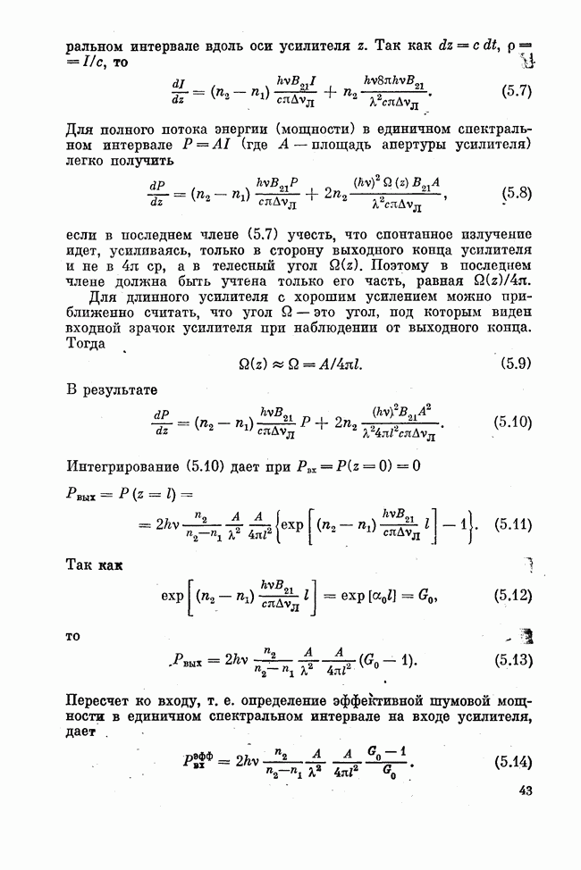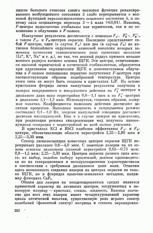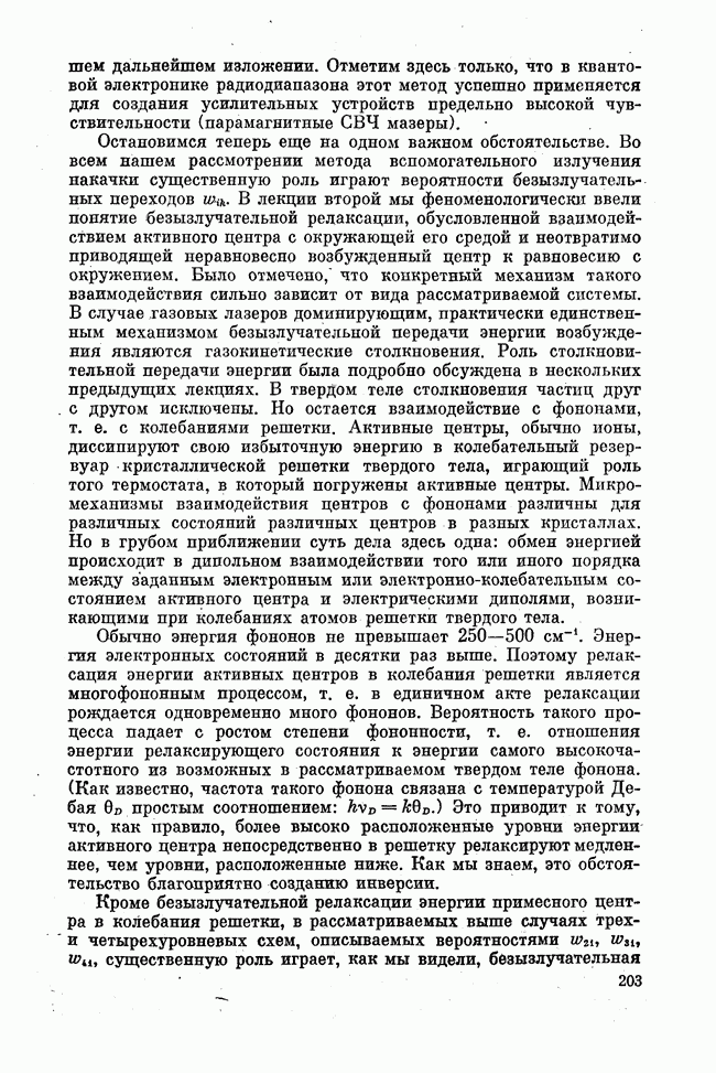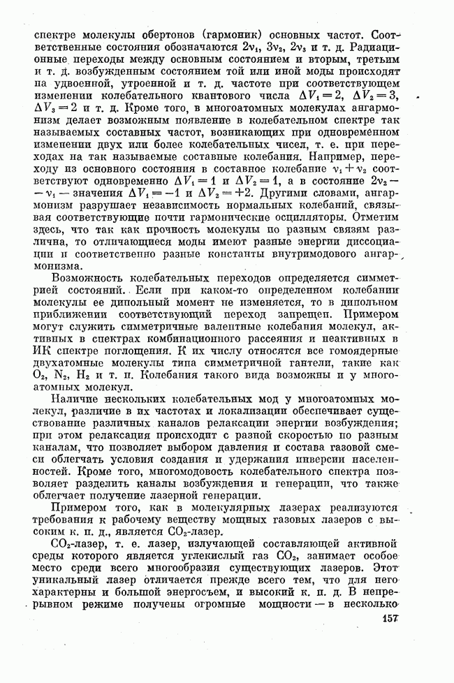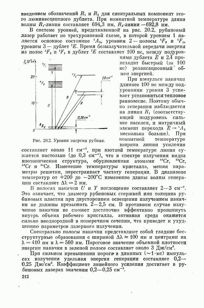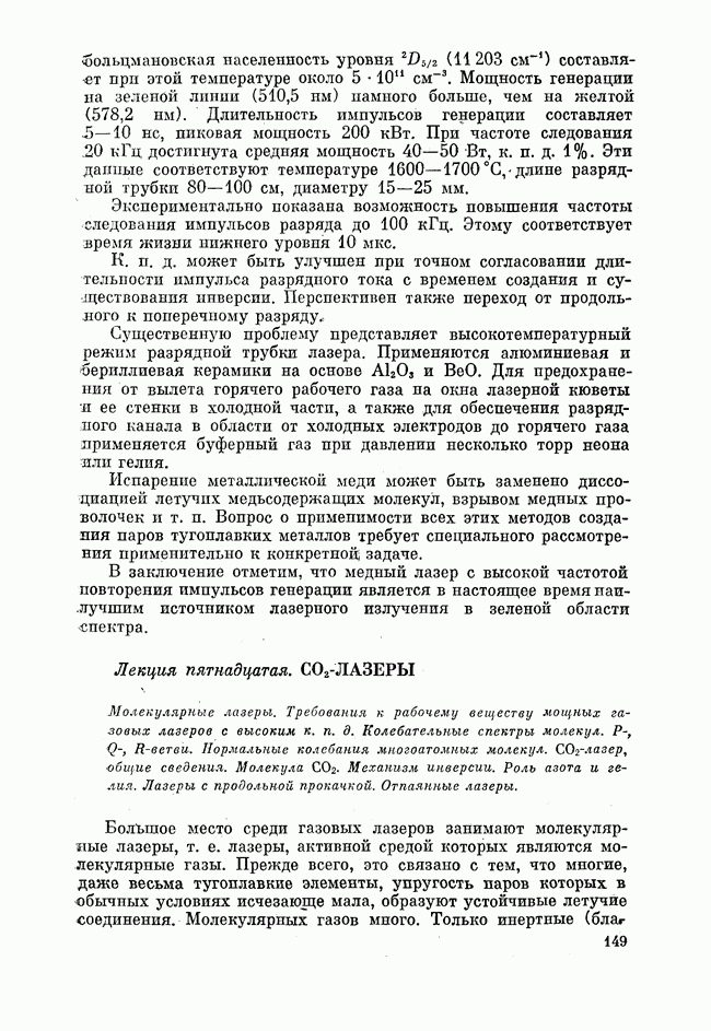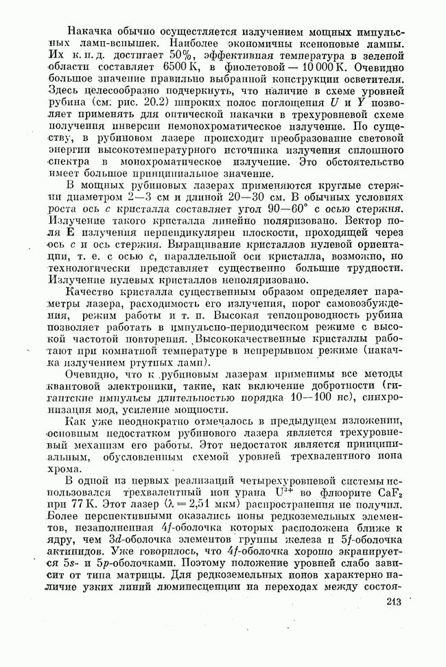 -состояниях, происходит по четырехуровневой схеме, подробно обсуждавшейся ранее применительно к твердотельным лазерам. Это, как мы хорошо знаем, существенно облегчает условия достижения инверсии.