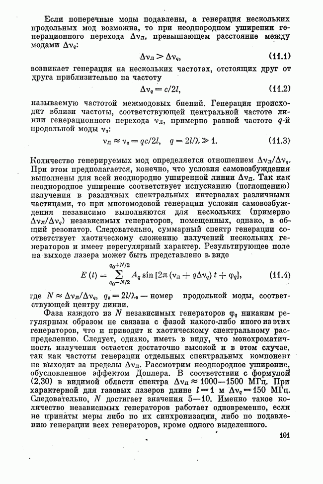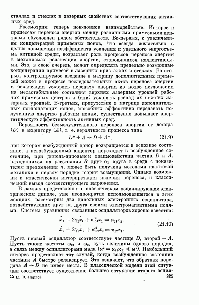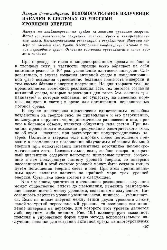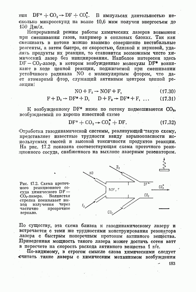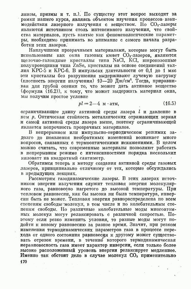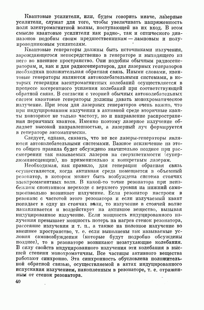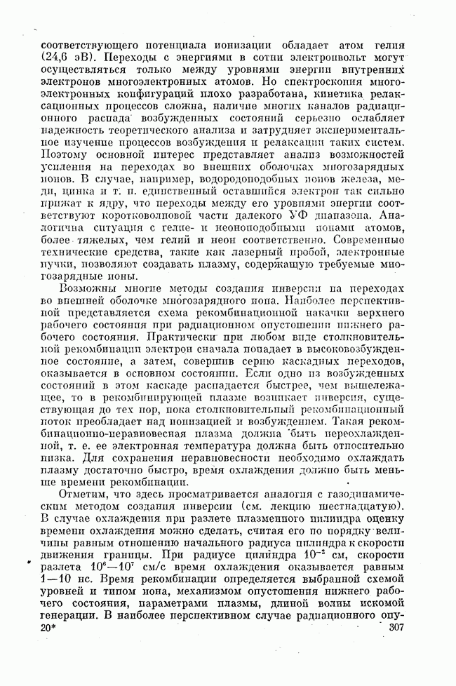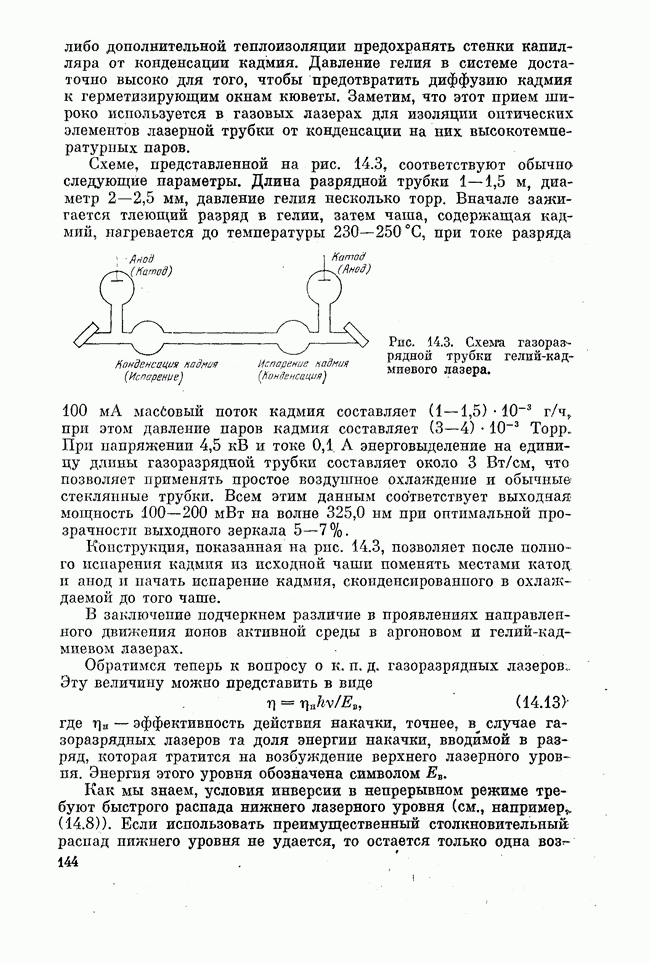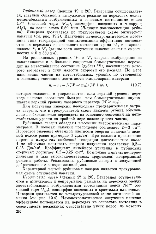 -состояниях, происходит по четырехуровневой схеме, подробно обсуждавшейся ранее применительно к твердотельным лазерам. Это, как мы хорошо знаем, существенно облегчает условия достижения инверсии.