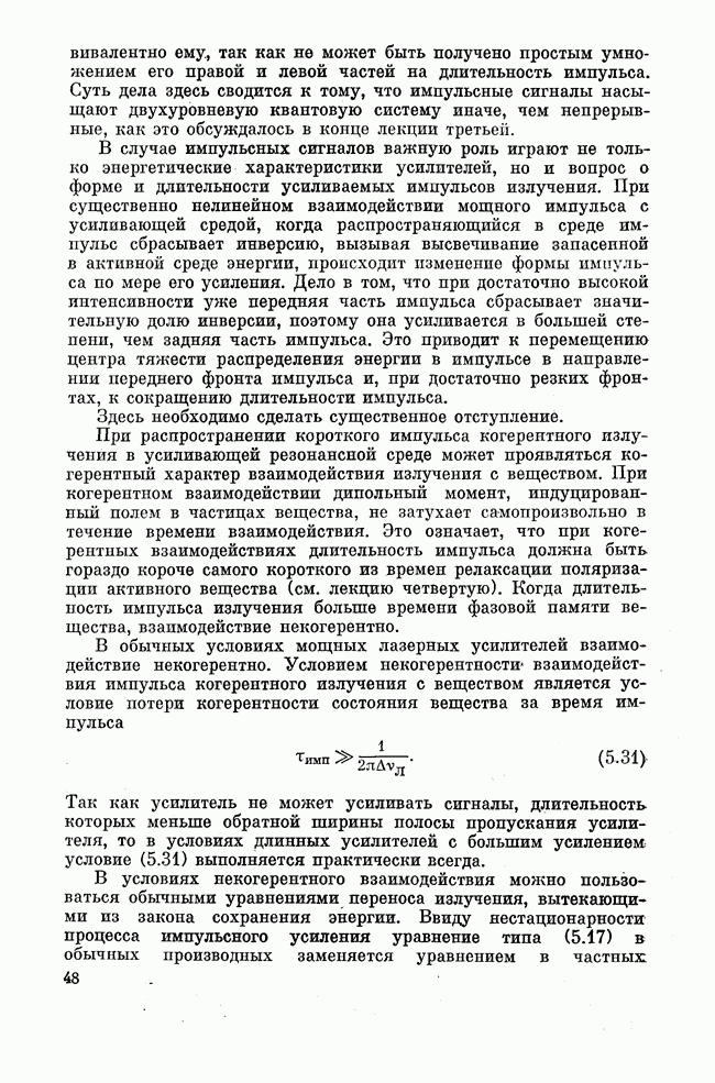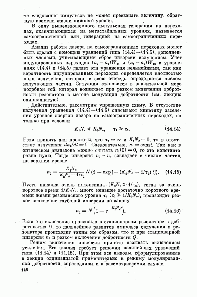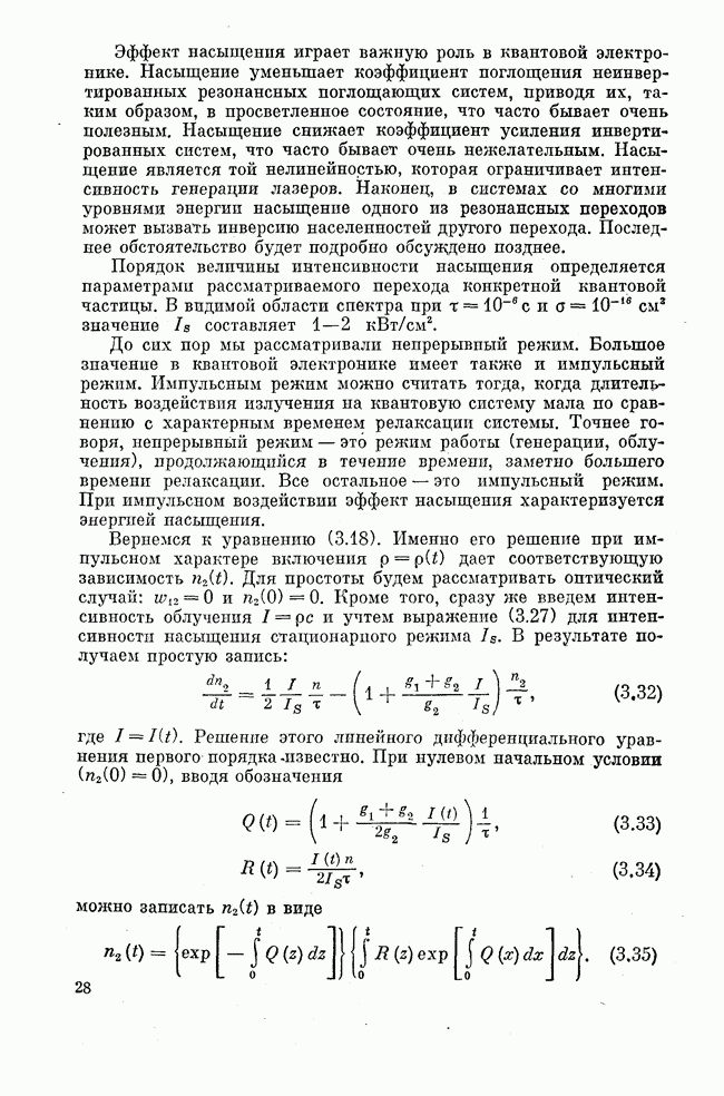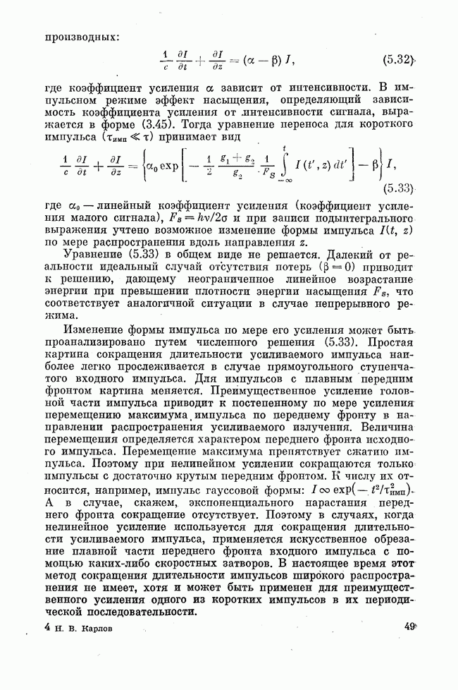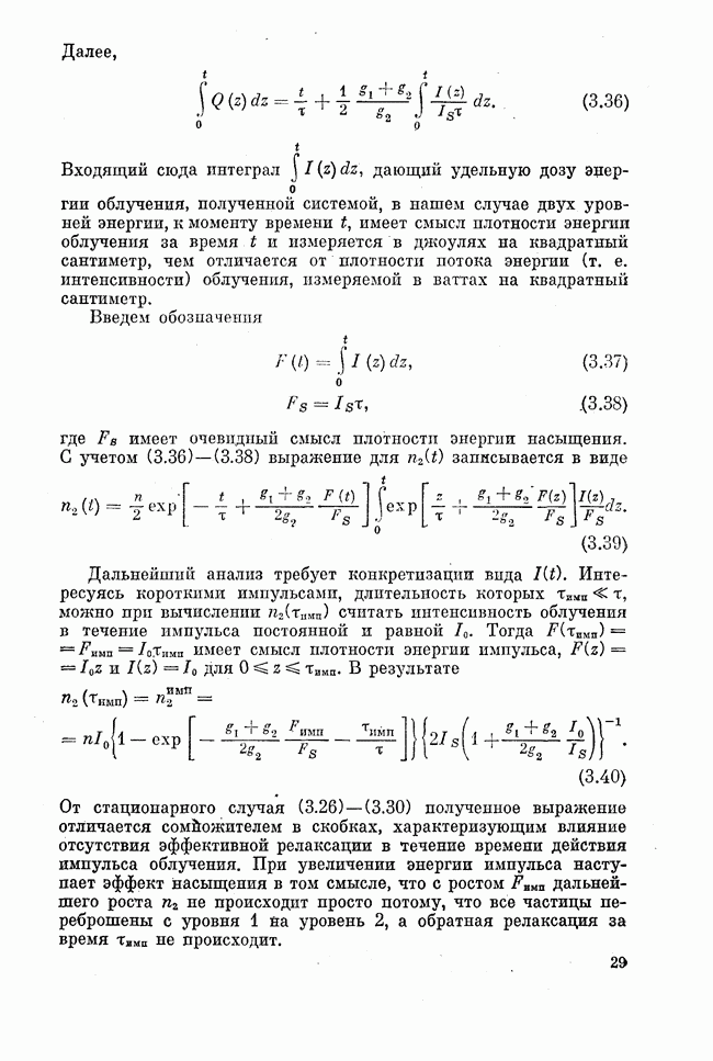 Точное решение этих уравнений может быть получено на ЭВМ для произвольно заданного импульса накачки. Если считать, что