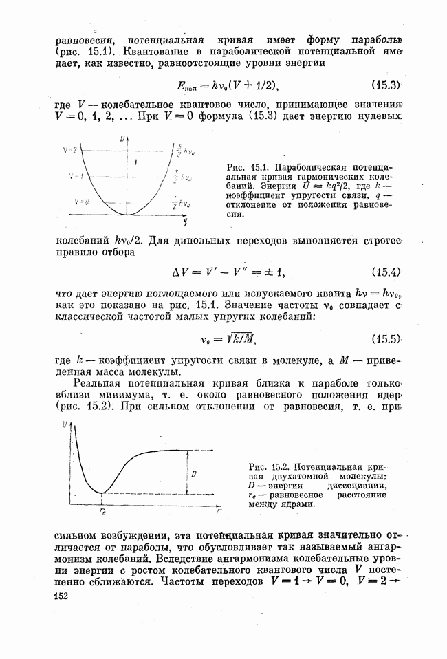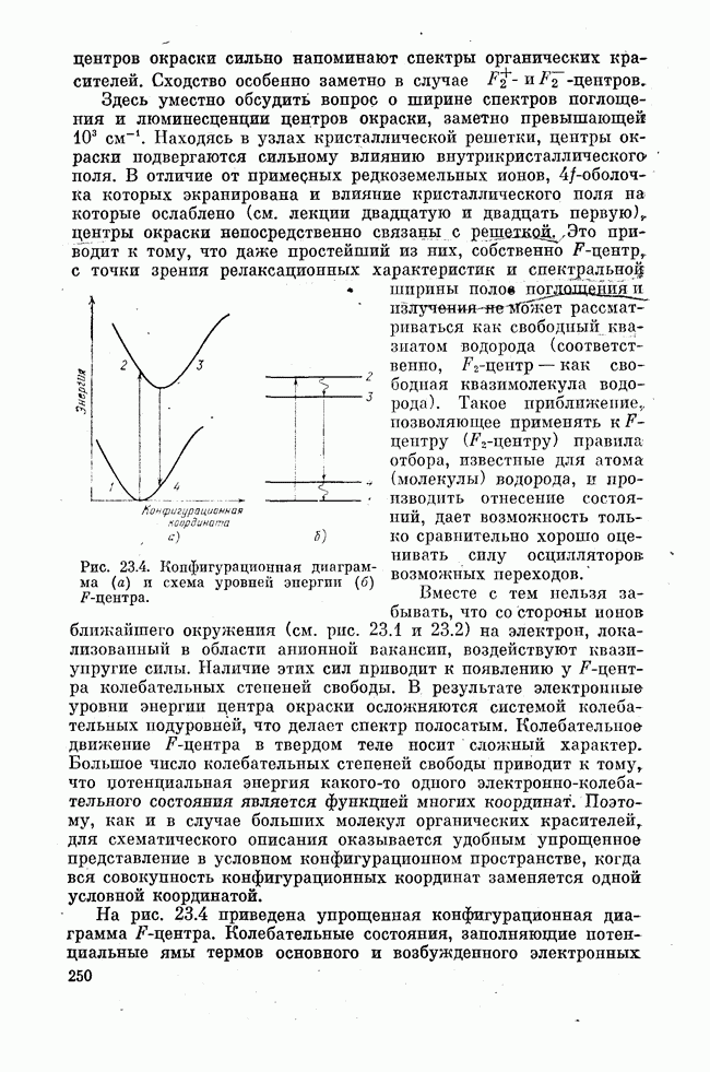 При сдвинутых равновесных конфигурациях (см. лекцию восемнадцатую) в соответствии с принципом Франка — Кондона возбуждаются высшие колебательные уровни состояния