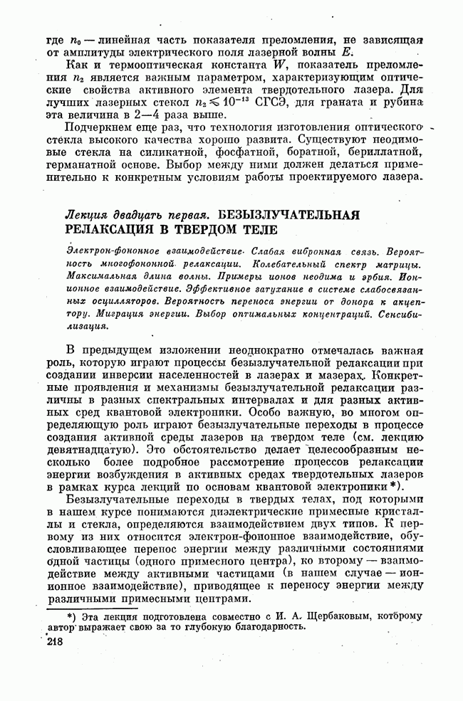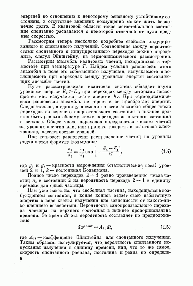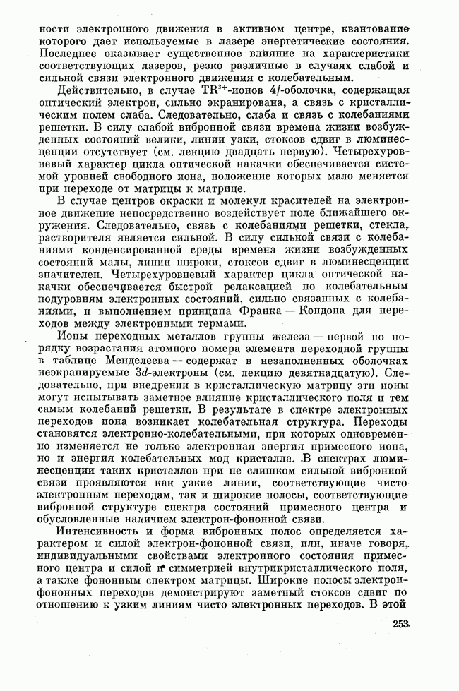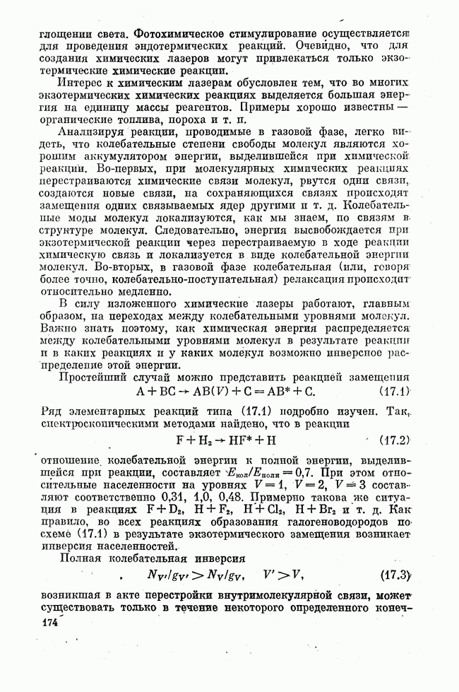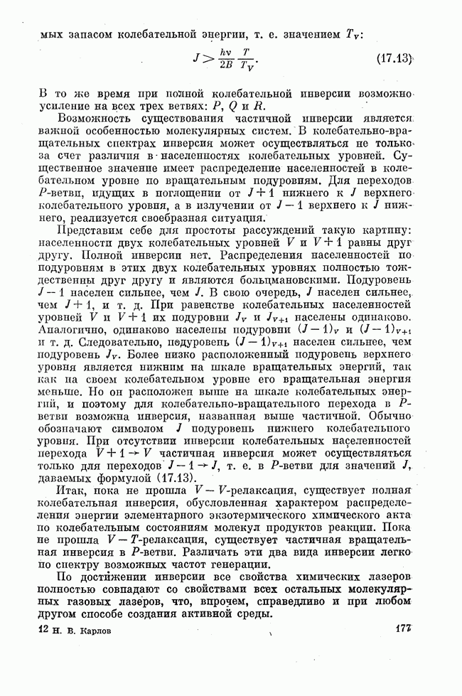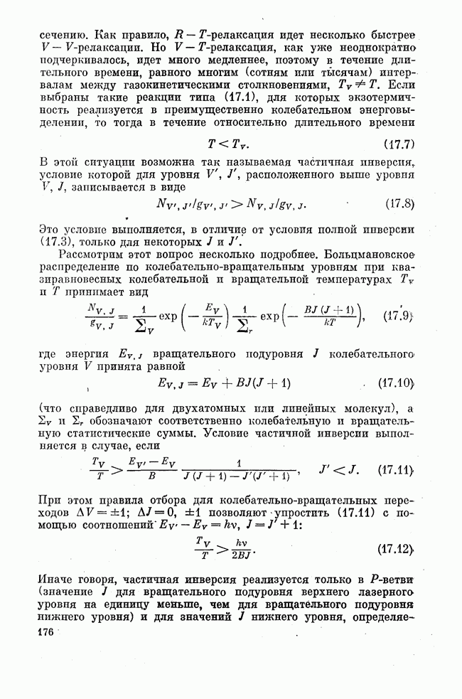 . Как мы видим, в красителях реализуется частичная инверсия в электронно-колебательно-вращательных переходах подобно тому, как это имеет место для колебательно-вращательных переходов в СО-лазерах. Заметим, что при полной термализации внутри возбужденного синглетного терма t близко к нулю и