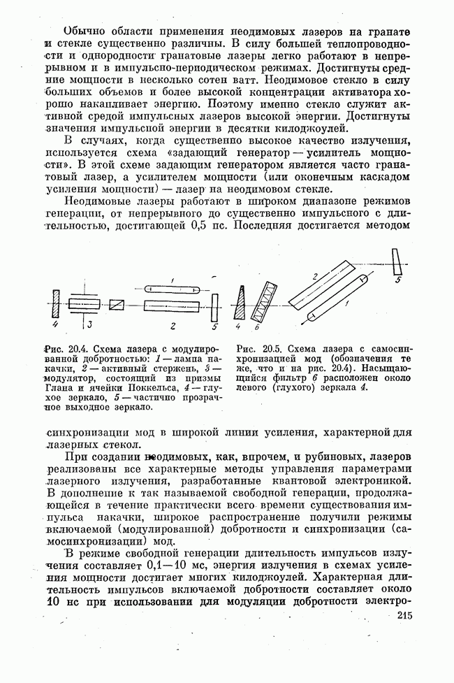 Интересной является возможность накачки красителей излучением лазеров с синхронизацией мод. Если оптические длины