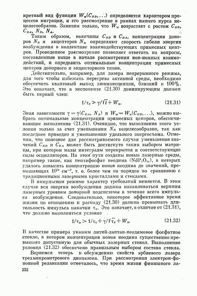 . Концентрация тушителей не должна быть слишком большой, чтобы не вызвать сокращения времени жизни верхнего лазерного уровня.
