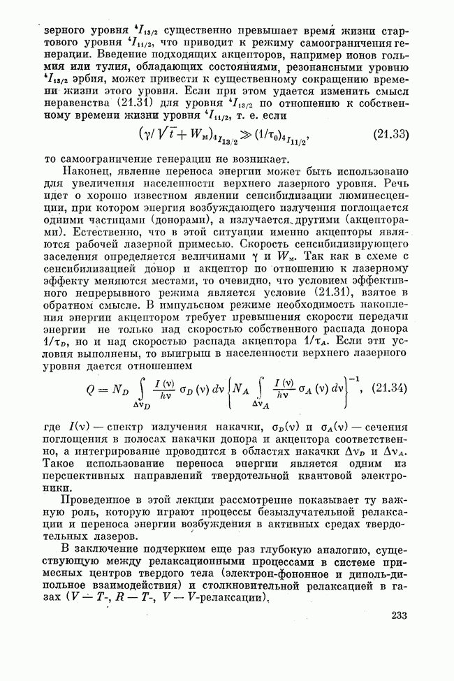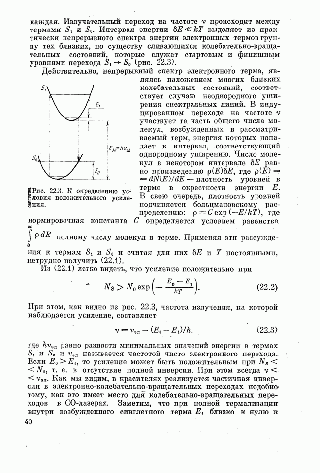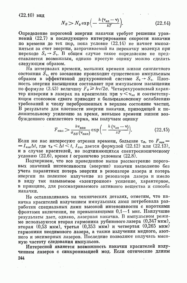 Определение пороговой энергии накачки требует решения уравнений (22.7) и последующего интегрирования скорости накачки по времени до тех пор, пока условие (22.14) не начнет выполняться за счет энергии, затрачиваемой на перекачку молекул при переходе