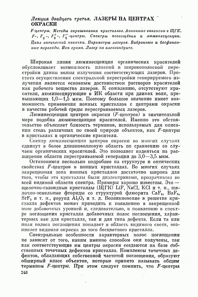 Лекция двадцать вторая. ЛАЗЕРЫ НА КРАСИТЕЛЯХ