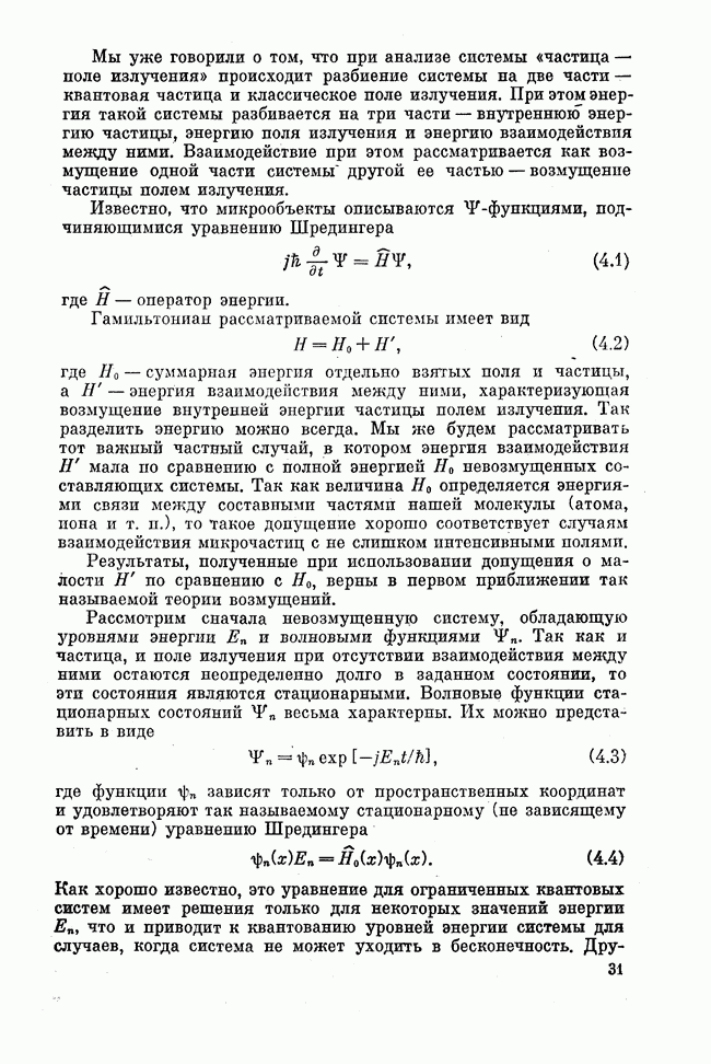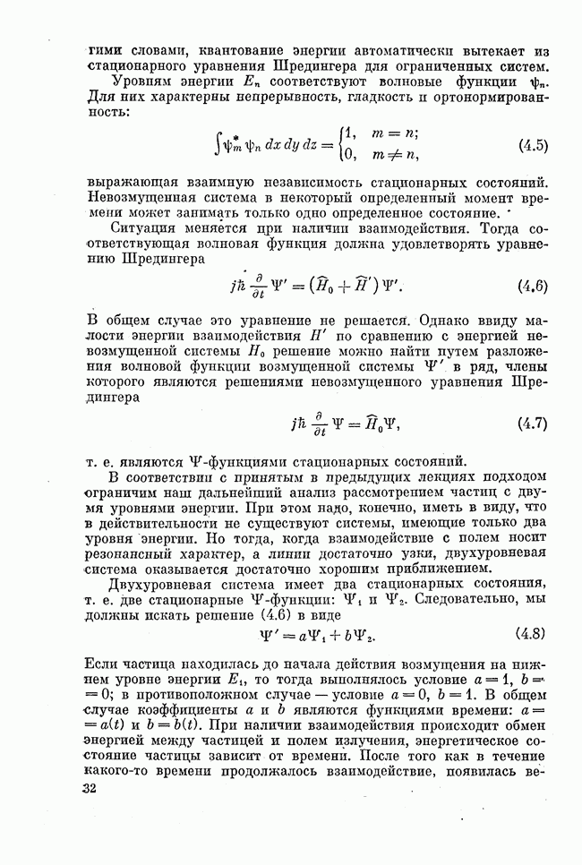 Базируясь на проведенном выше анализе, дальнейшее рассмотрение удобно проводить, приняв вначале простую двухуровневую модель, содержащую основное и первое возбужденное сипглетные состояния