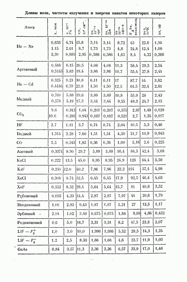 Приведенные данные относятся к различным лазерам, отличающимся друг от друга конструкцией резонатора, источником накачки, рабочим веществом и т. д. Но для всех характерна возможность плавной перестройки длины волны излучения, что в сочетании с любым другим набором лазерных параметров делает эти генераторы монохроматического излучения уникальными.