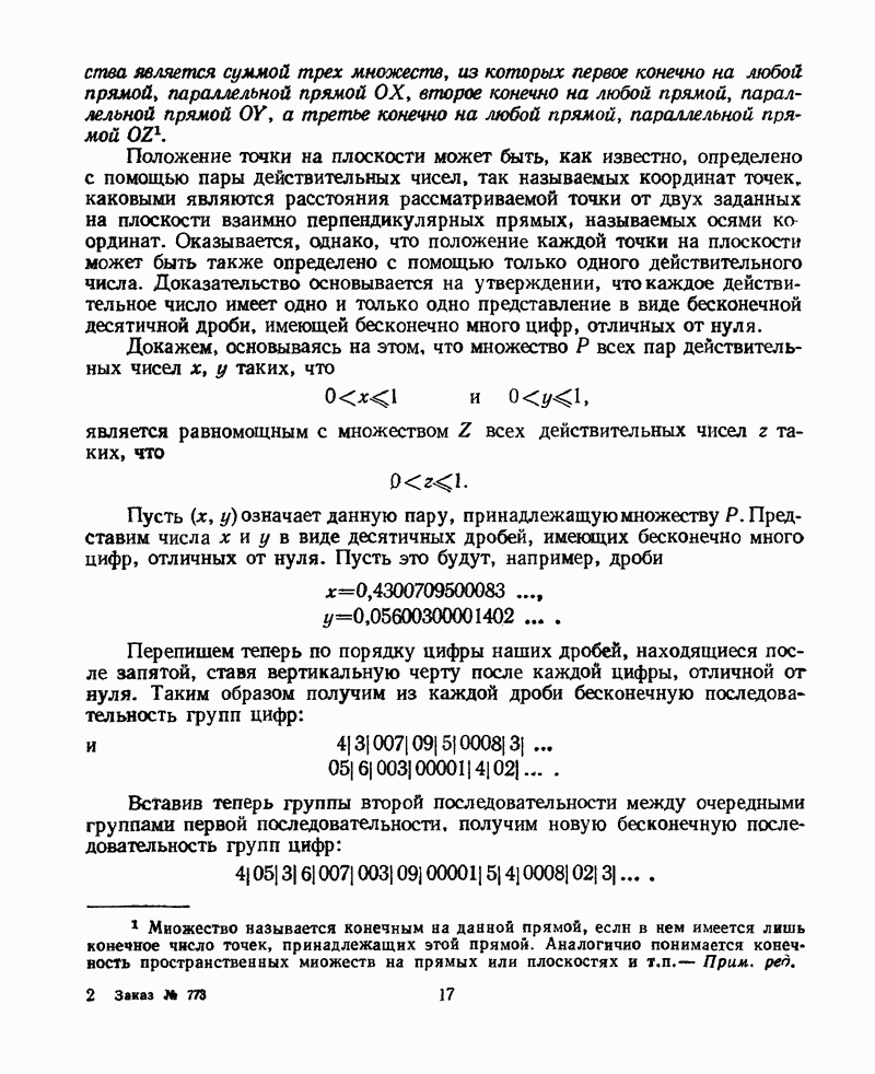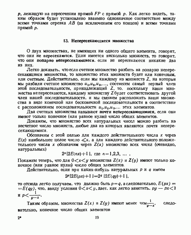 одной общей точки. Таким является, например, множество всех точек прямой с целыми абсциссами, а также множество всех точек прямой с рациональными абсциссами.