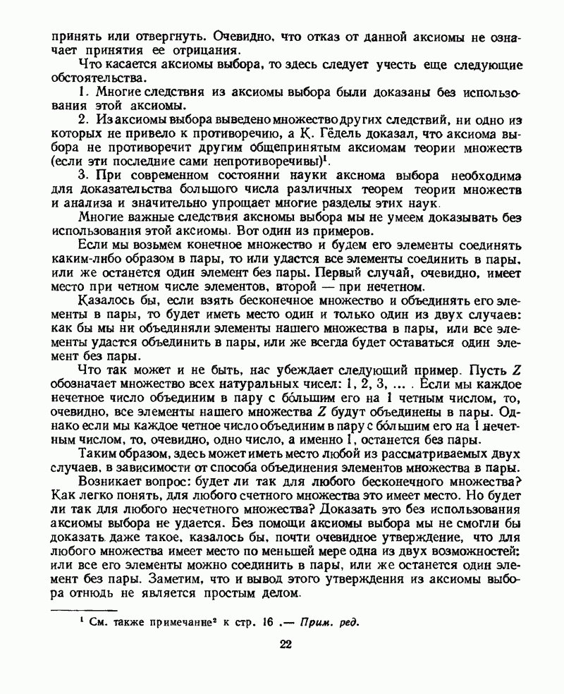 счетно, т. е. состоит из бесконечной последовательности различных множеств. Существование такого множества можно доказать с помощью аксиомы выбора, однако мы не знаем ни одного конкретного примера такого множества. С помощью аксиомы выбора можно даже доказать, что на прямой существуют множество